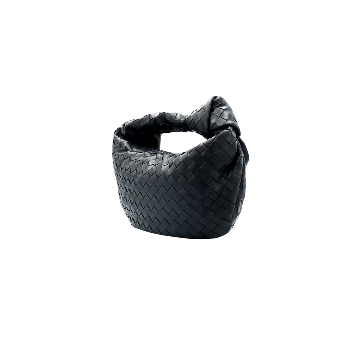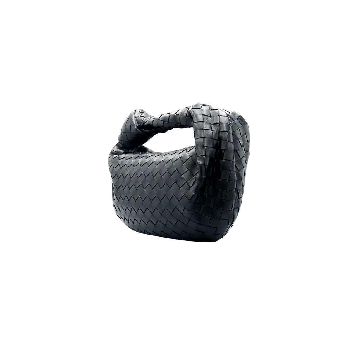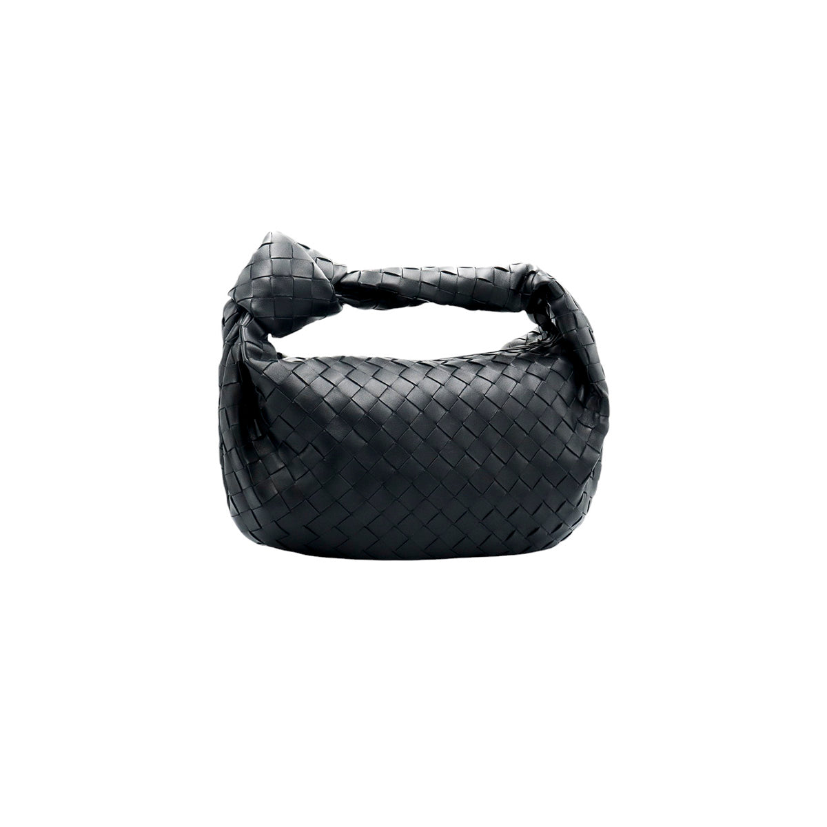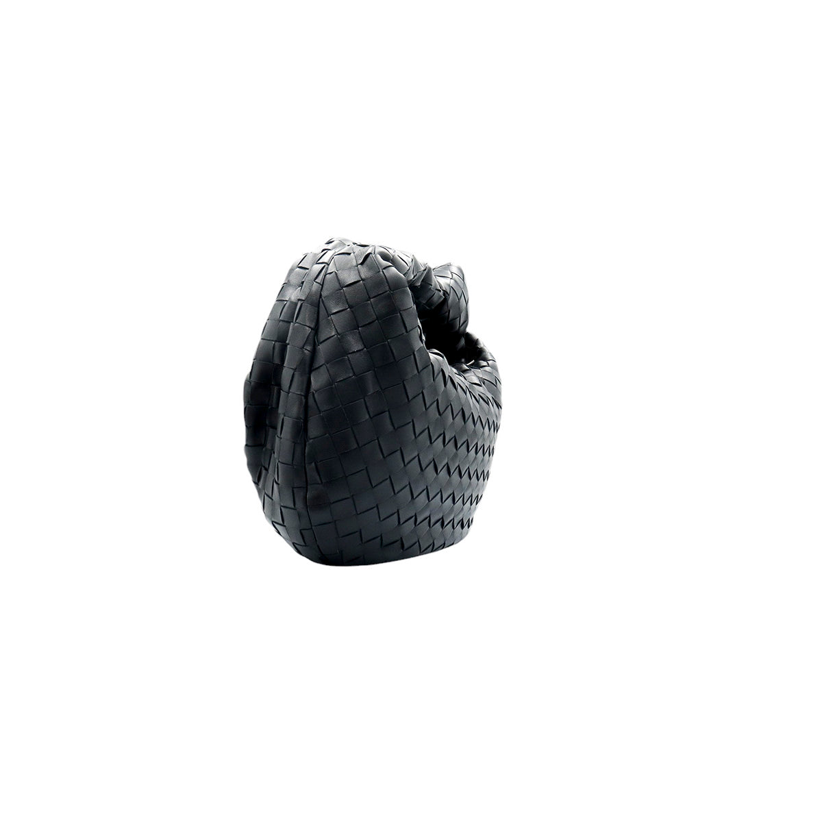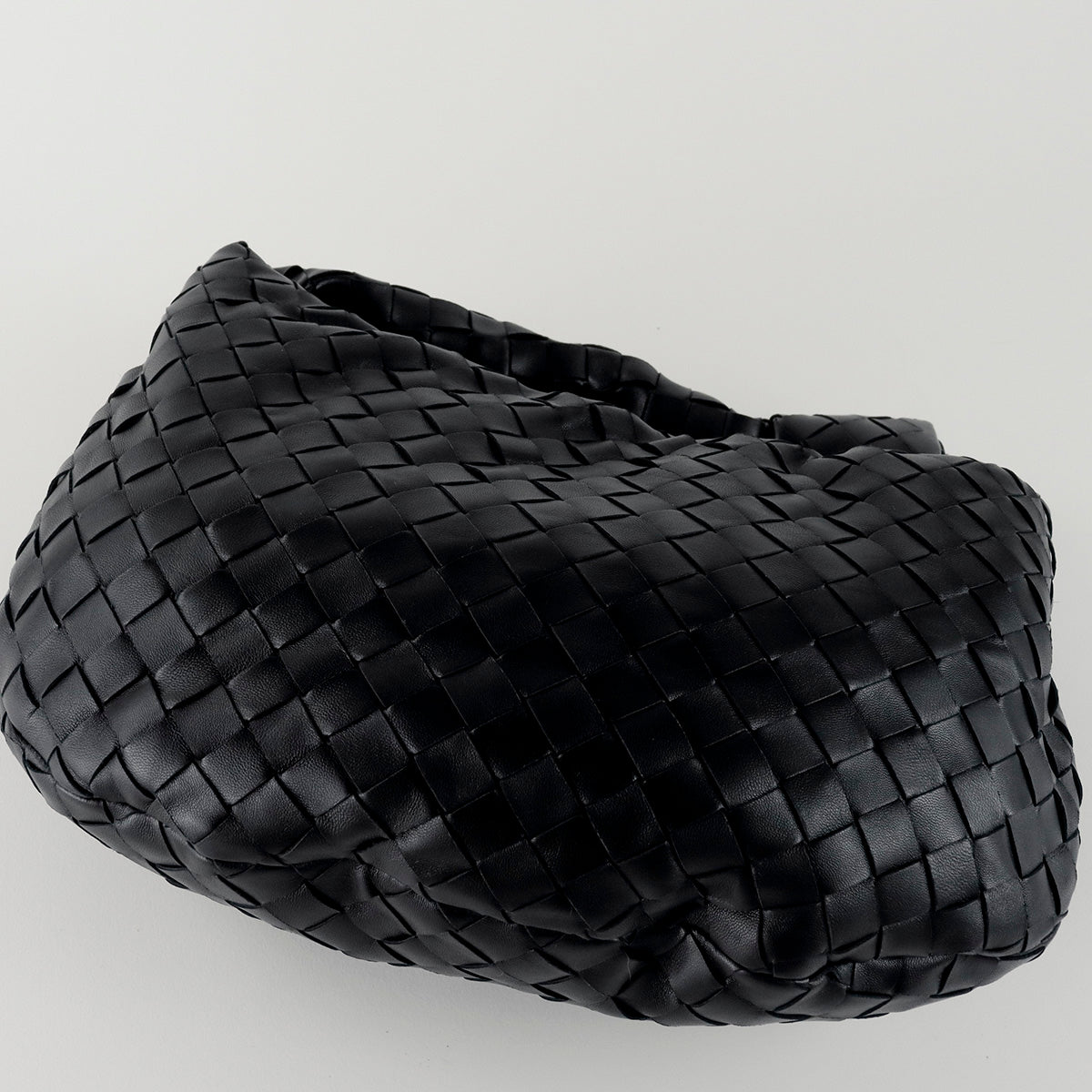 Bolso Bottega Veneta modelo Jodie confeccionado en suave cuero Intrecciato color negro, una sola asa de mismo material y color, forro interno en piel lisa, para lucir en la mano o al hombro, cierre de cremallera en color plata.
