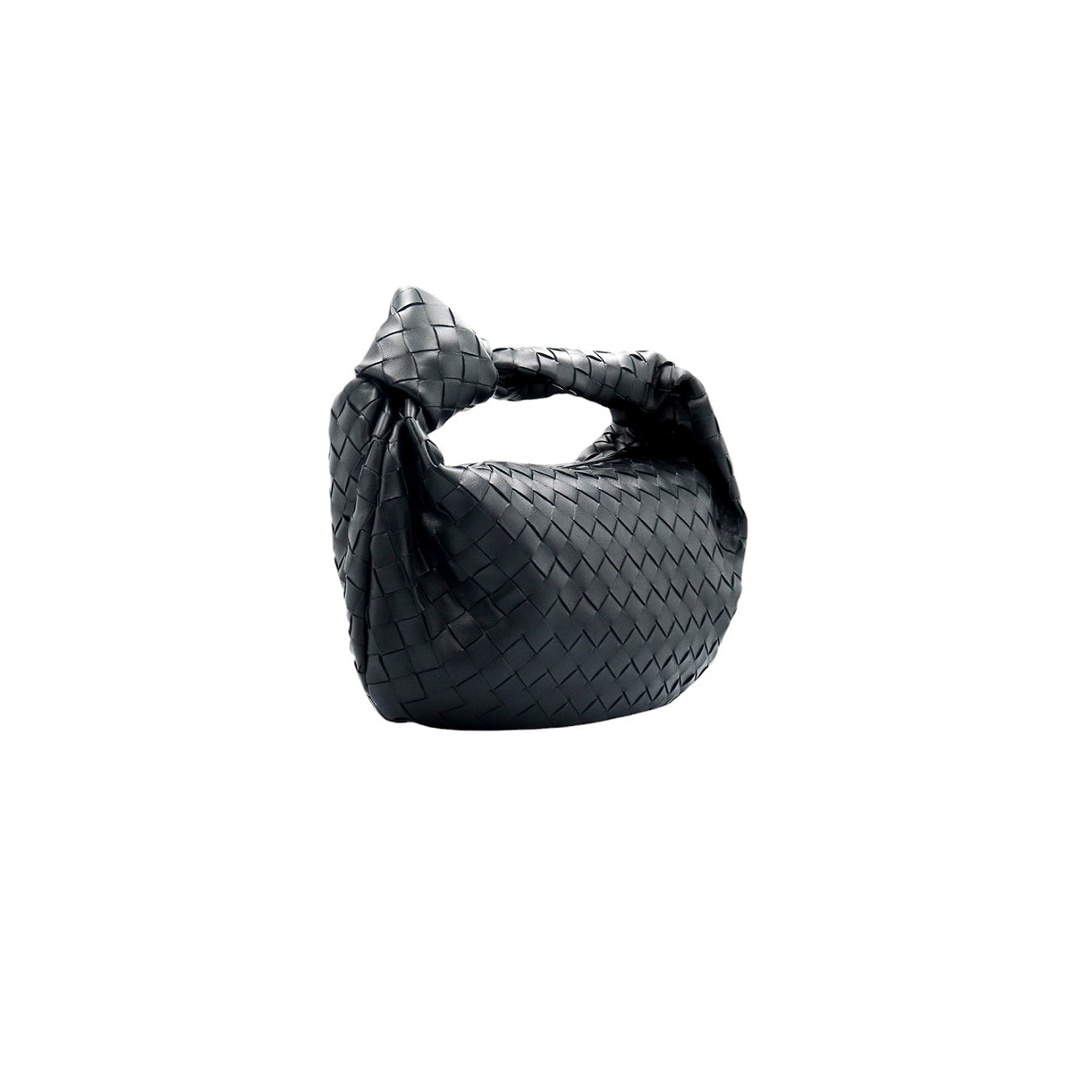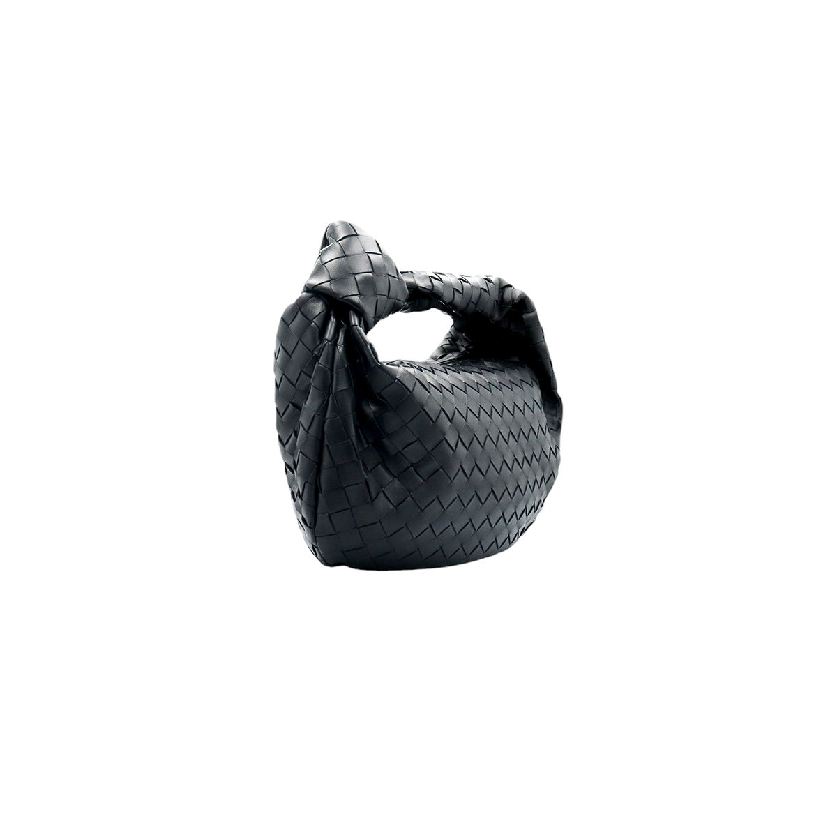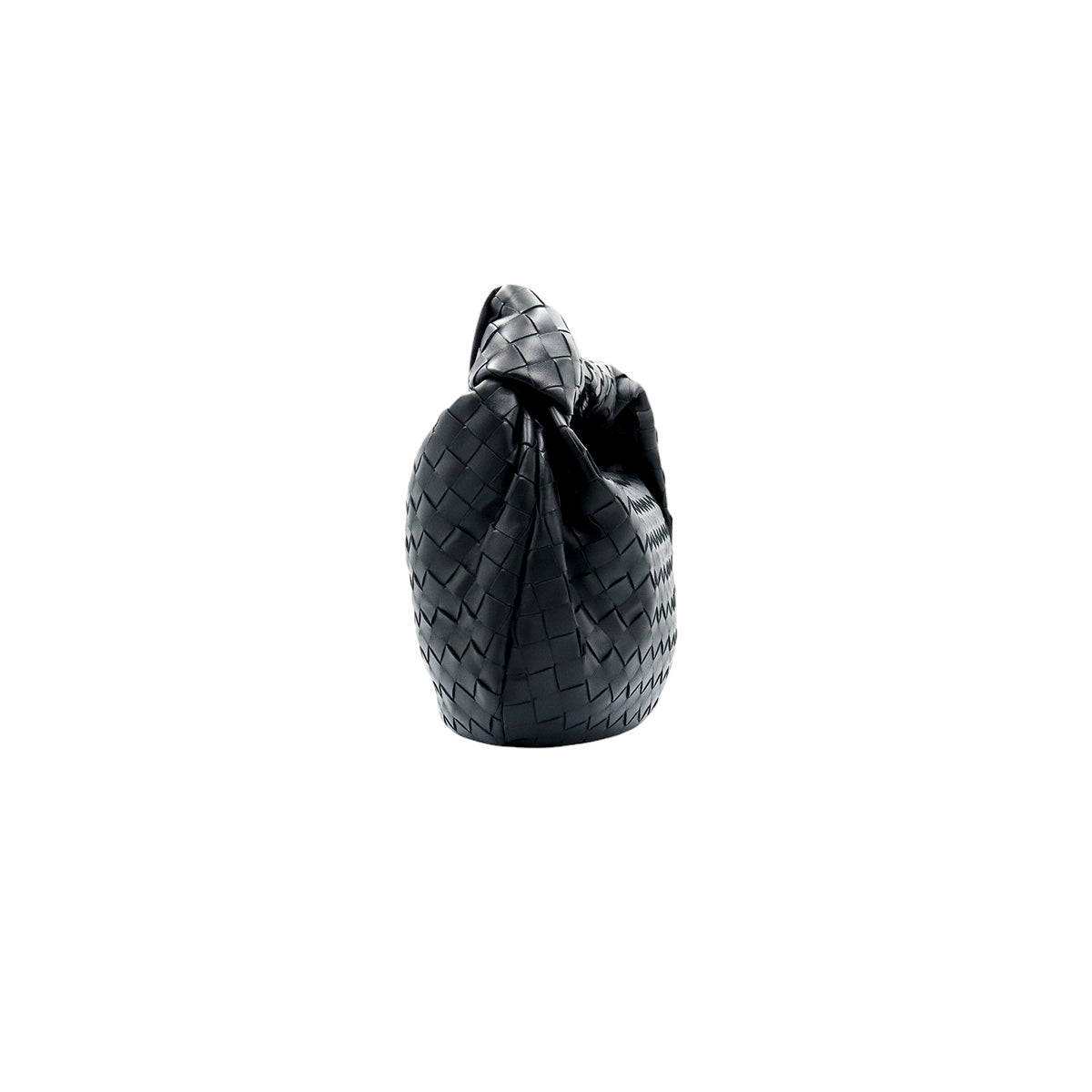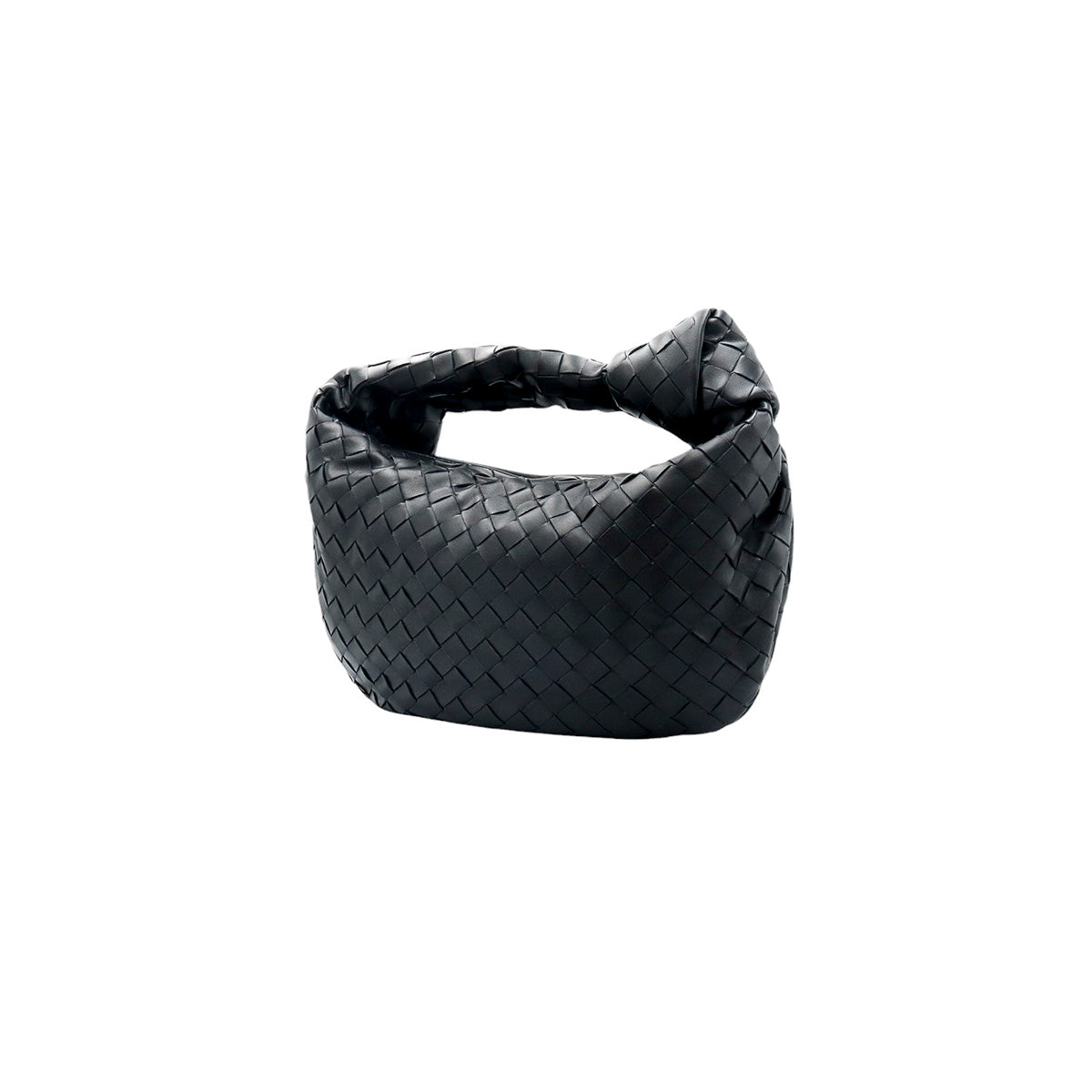 Bolso Bottega Veneta modelo Jodie confeccionado en suave cuero Intrecciato color negro, una sola asa de mismo material y color, forro interno en piel lisa, para lucir en la mano o al hombro, cierre de cremallera en color plata.