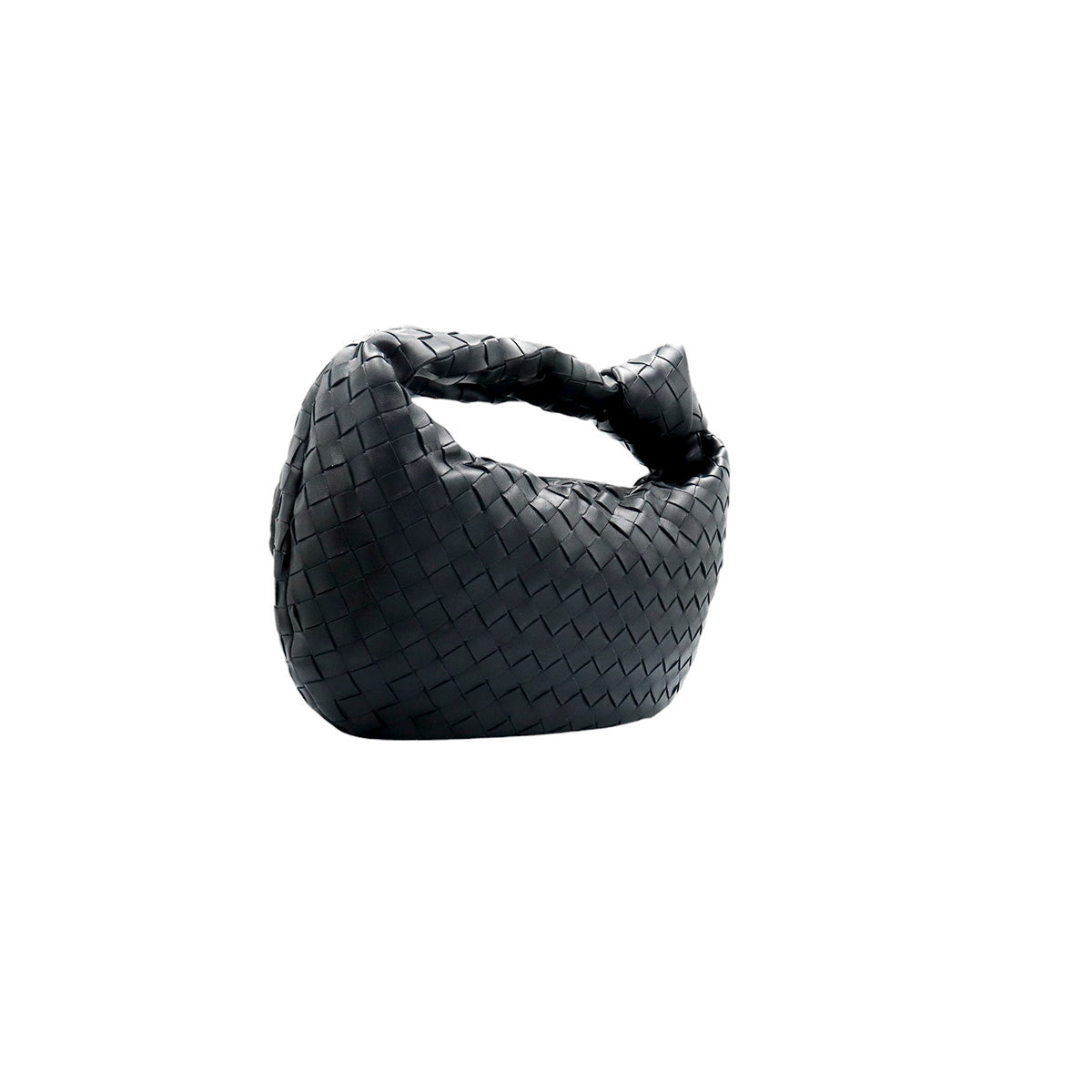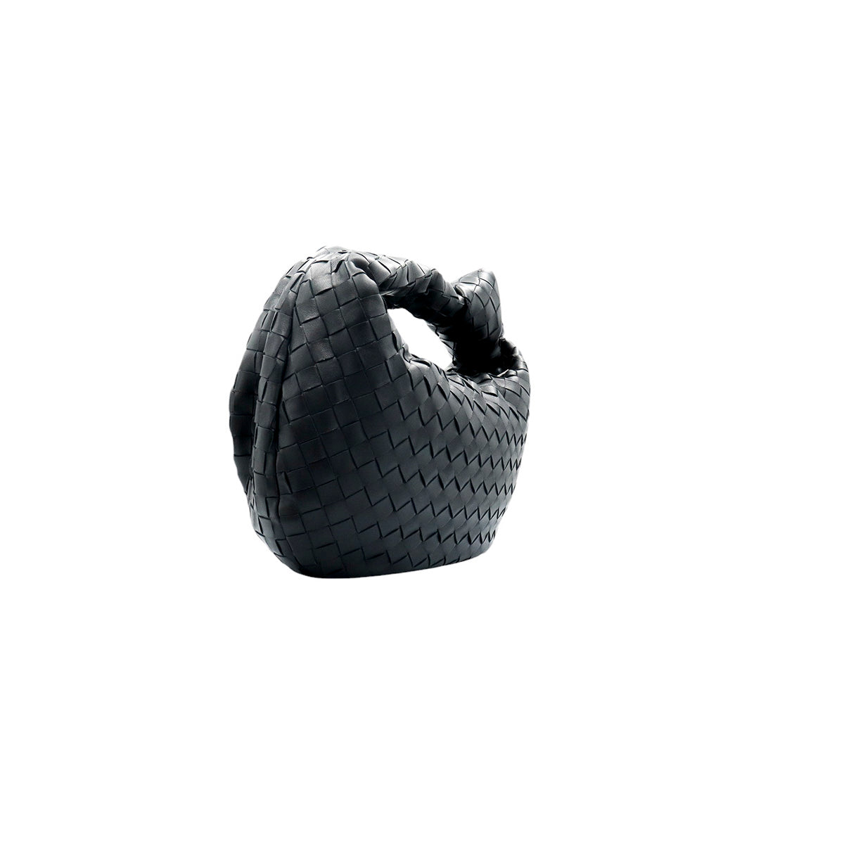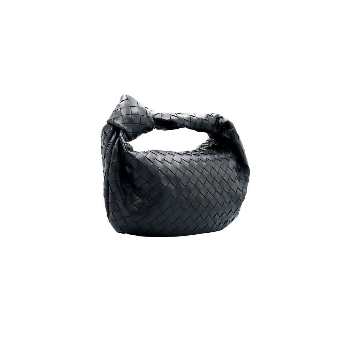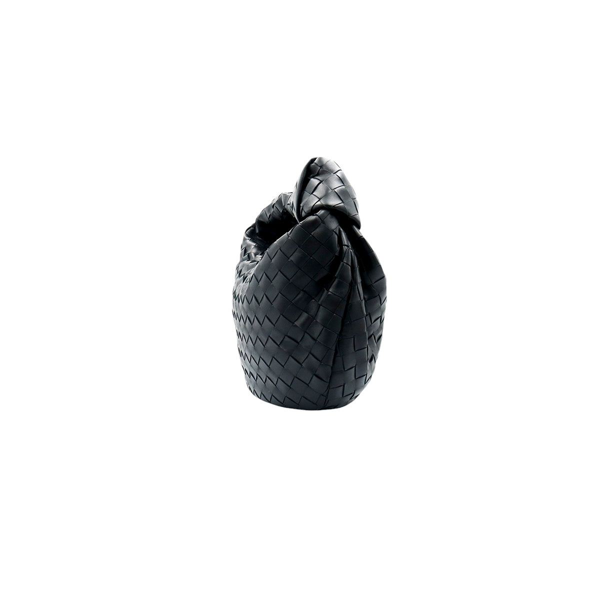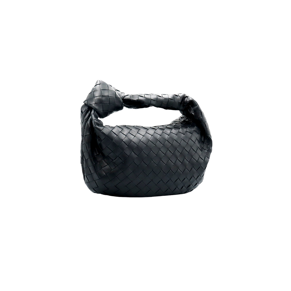 Bolso Bottega Veneta modelo Jodie confeccionado en suave cuero Intrecciato color negro, una sola asa de mismo material y color, forro interno en piel lisa, para lucir en la mano o al hombro, cierre de cremallera en color plata.