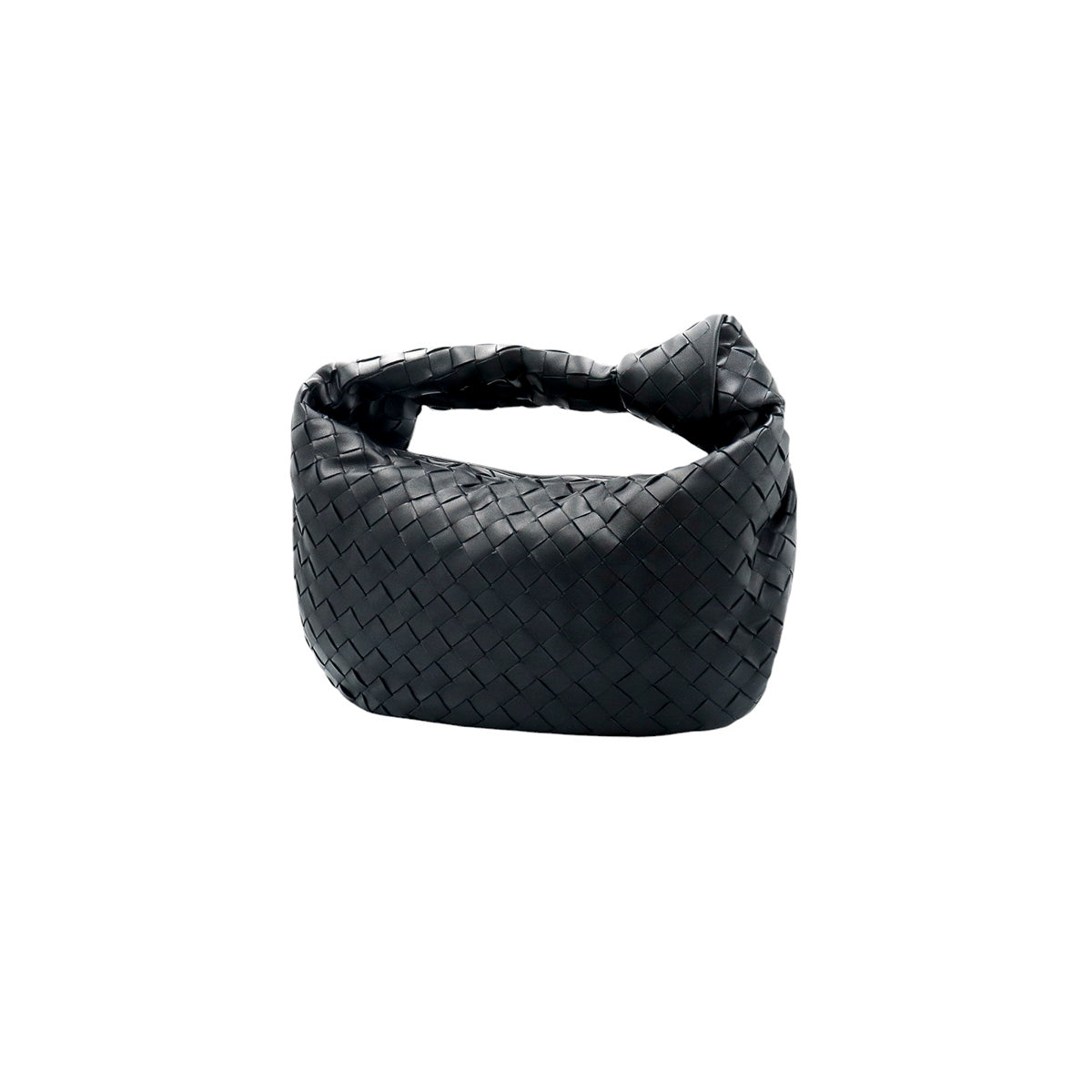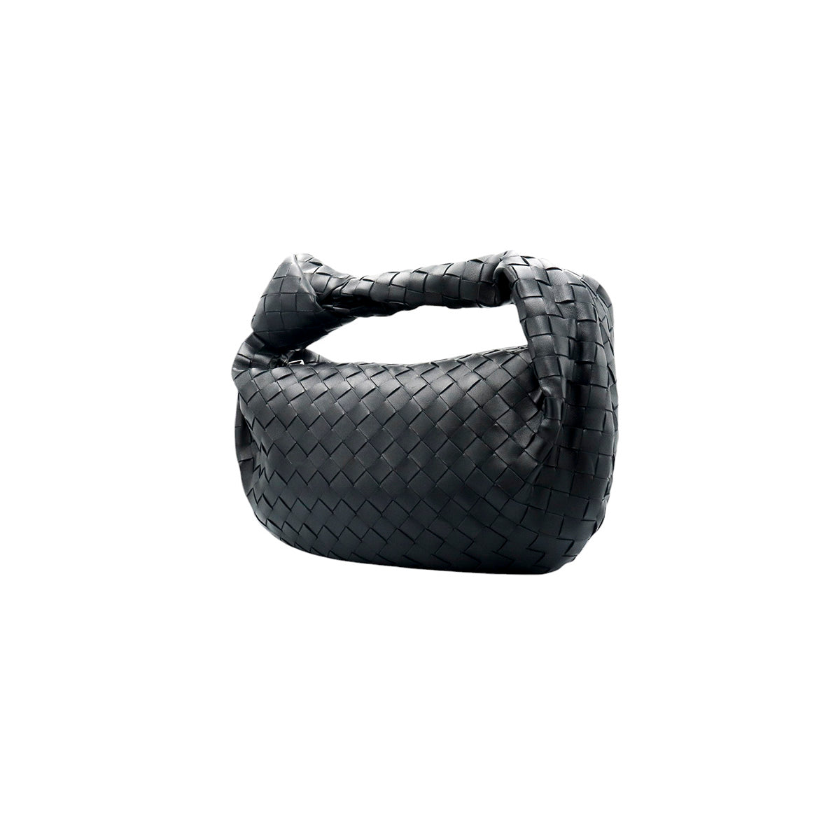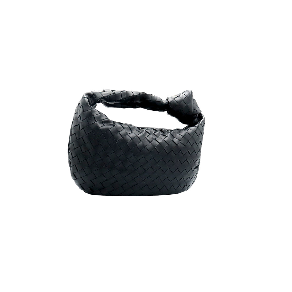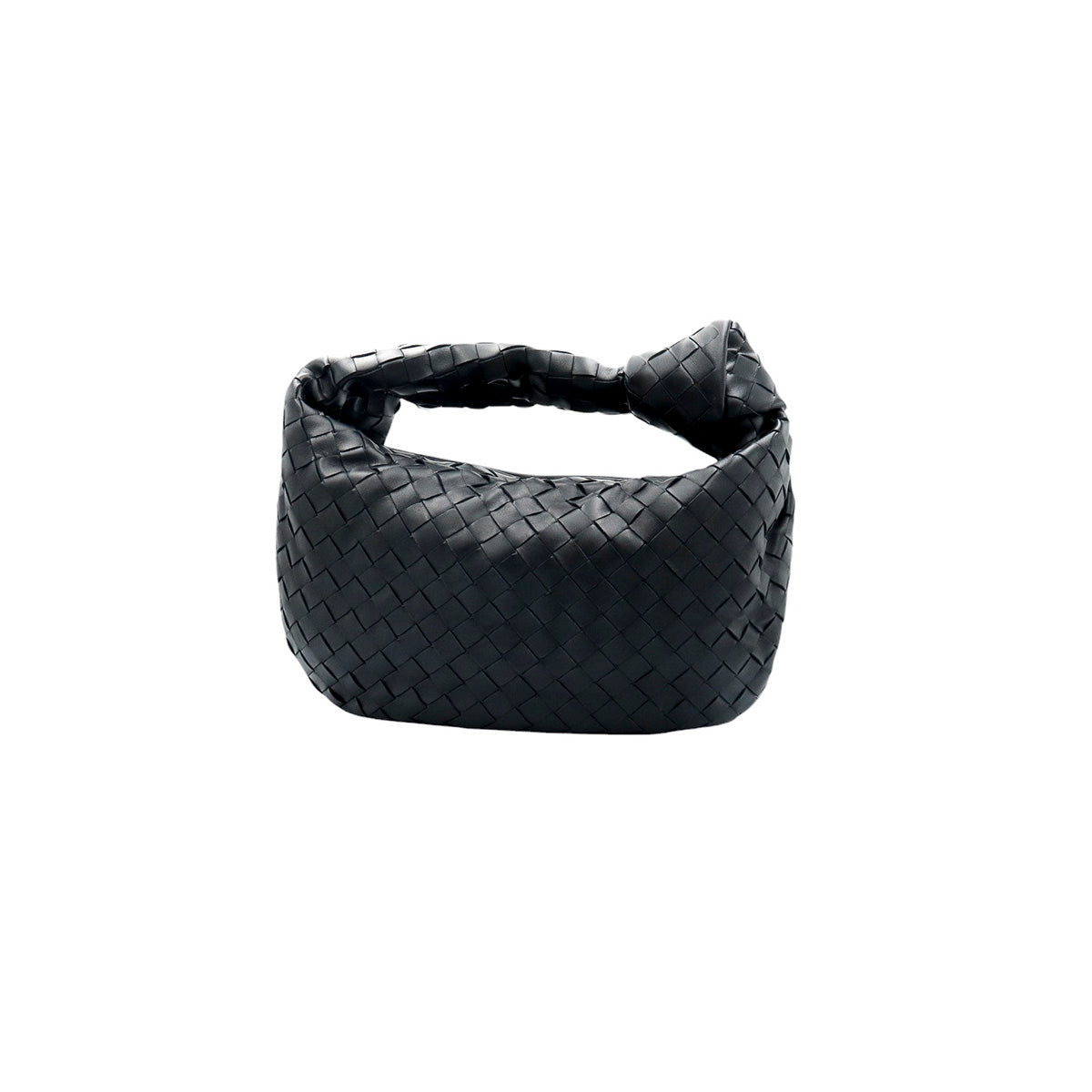 Bolso Bottega Veneta modelo Jodie confeccionado en suave cuero Intrecciato color negro, una sola asa de mismo material y color, forro interno en piel lisa, para lucir en la mano o al hombro, cierre de cremallera en color plata.