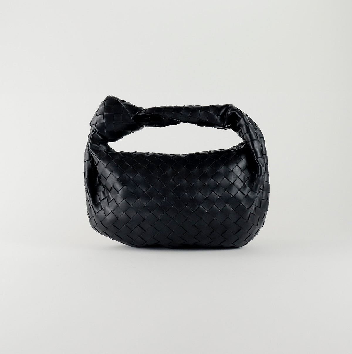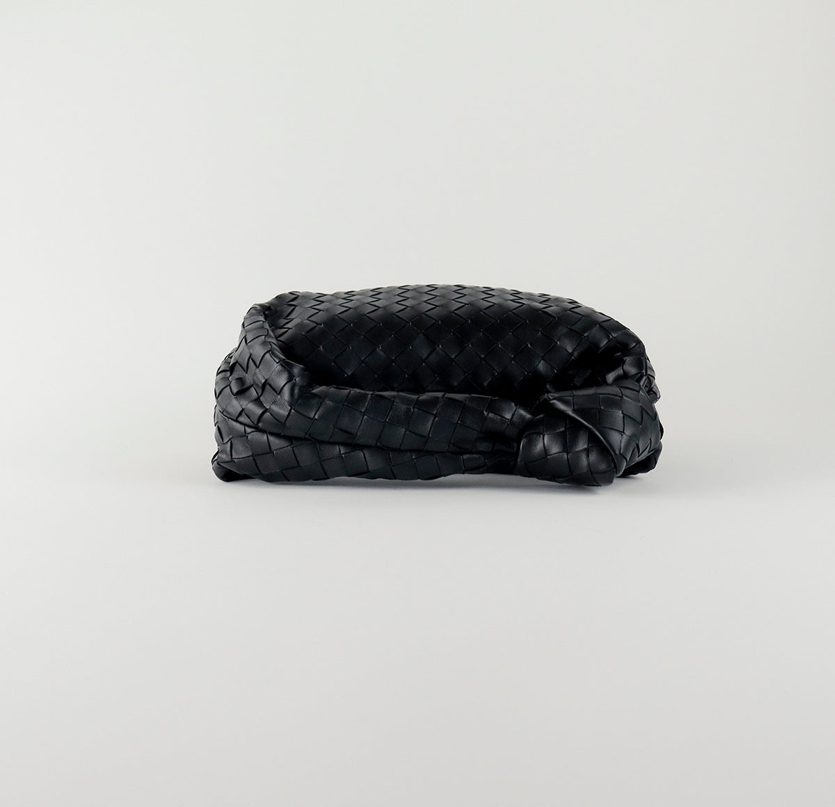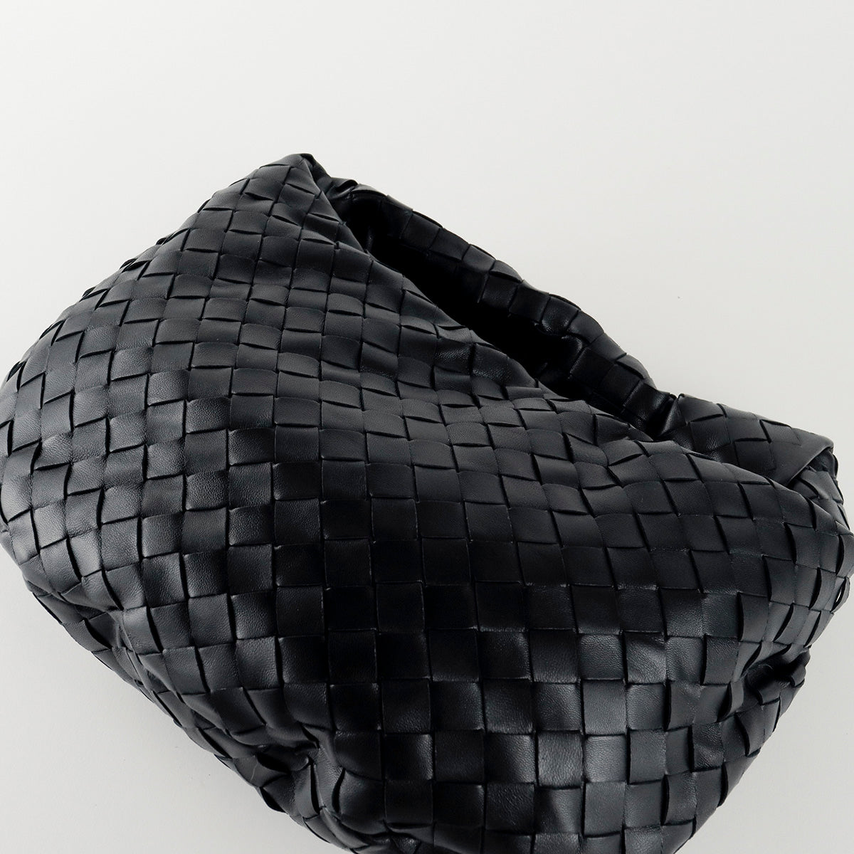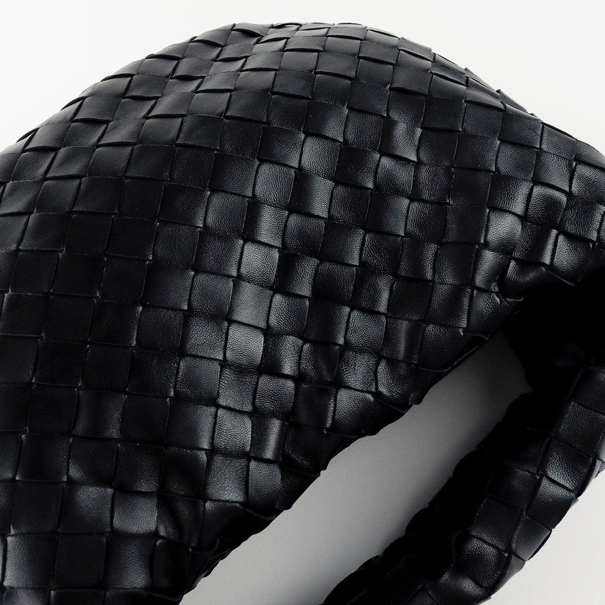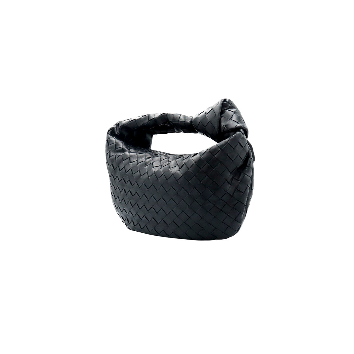 Bolso Bottega Veneta modelo Jodie confeccionado en suave cuero Intrecciato color negro, una sola asa de mismo material y color, forro interno en piel lisa, para lucir en la mano o al hombro, cierre de cremallera en color plata.