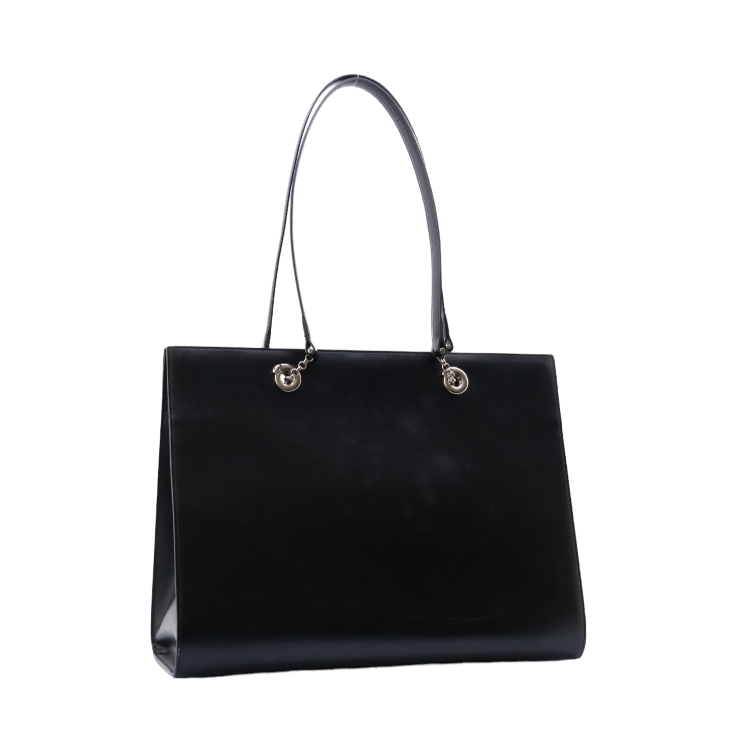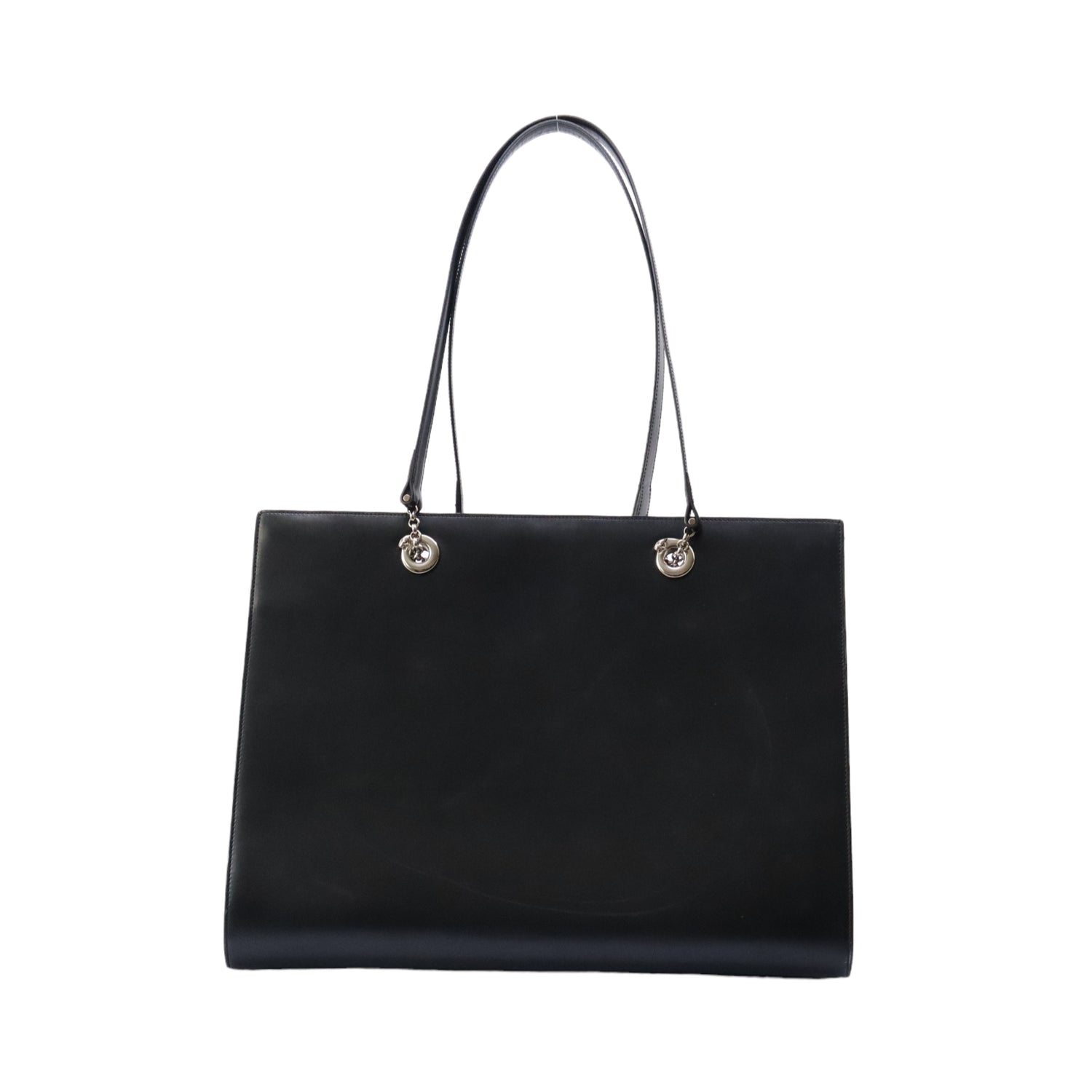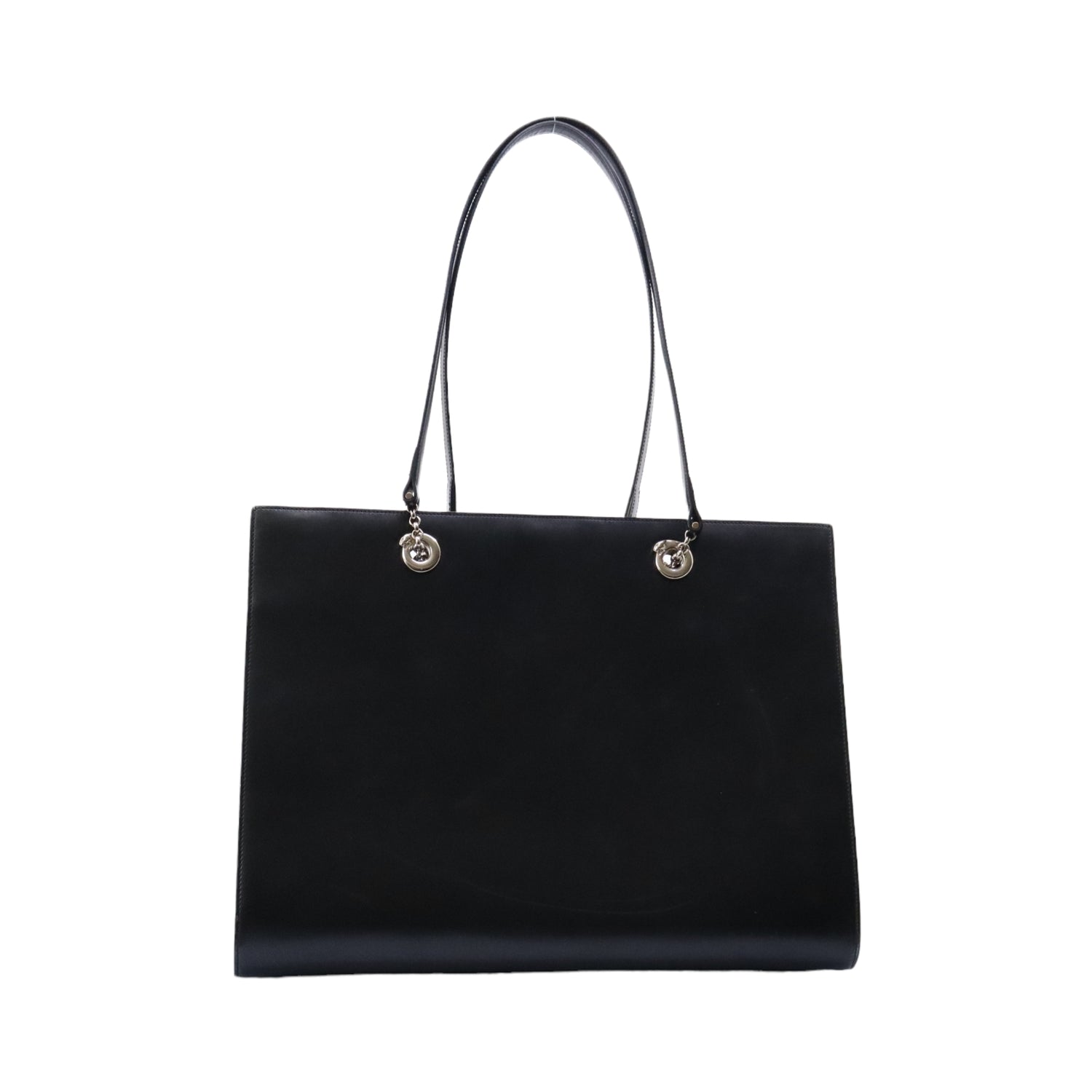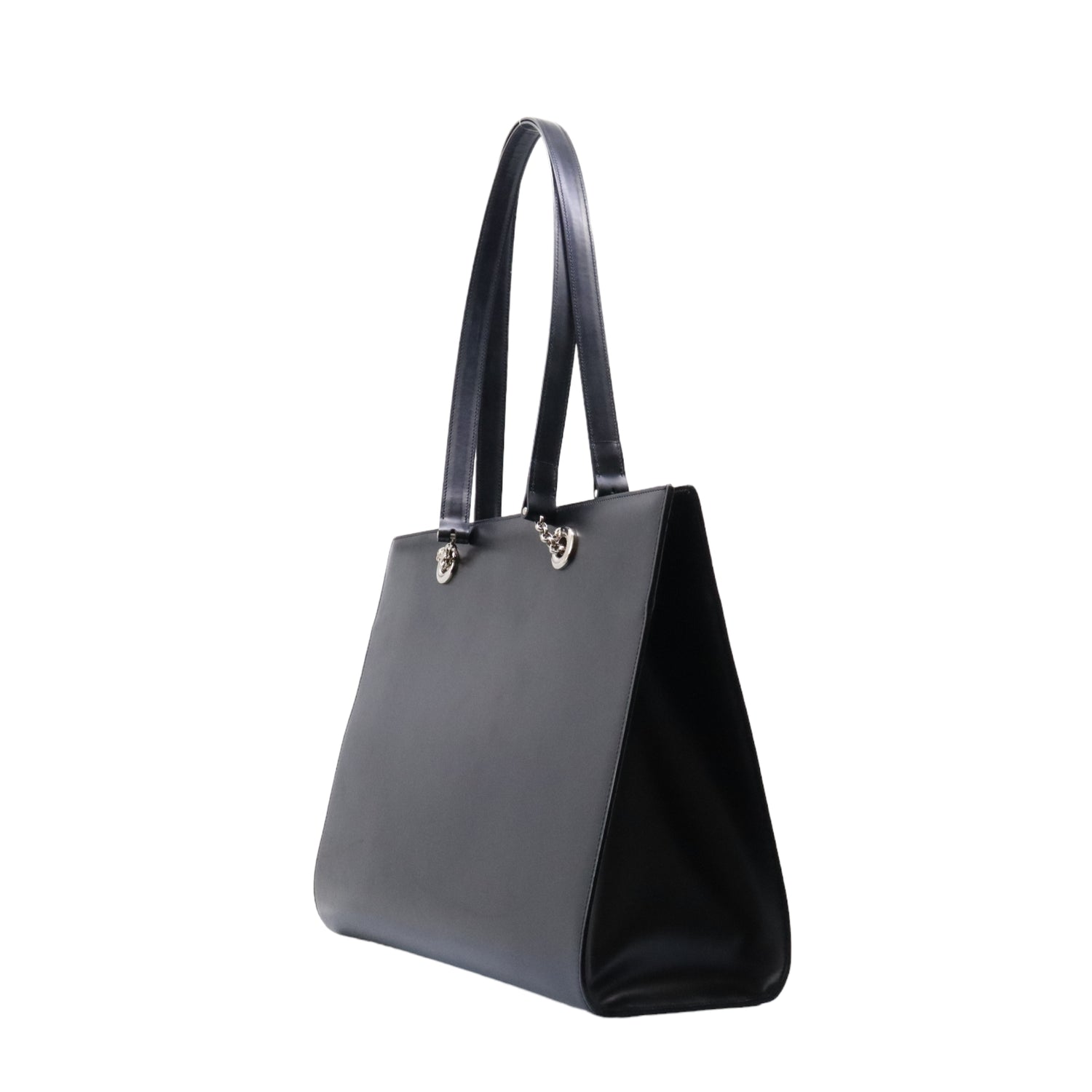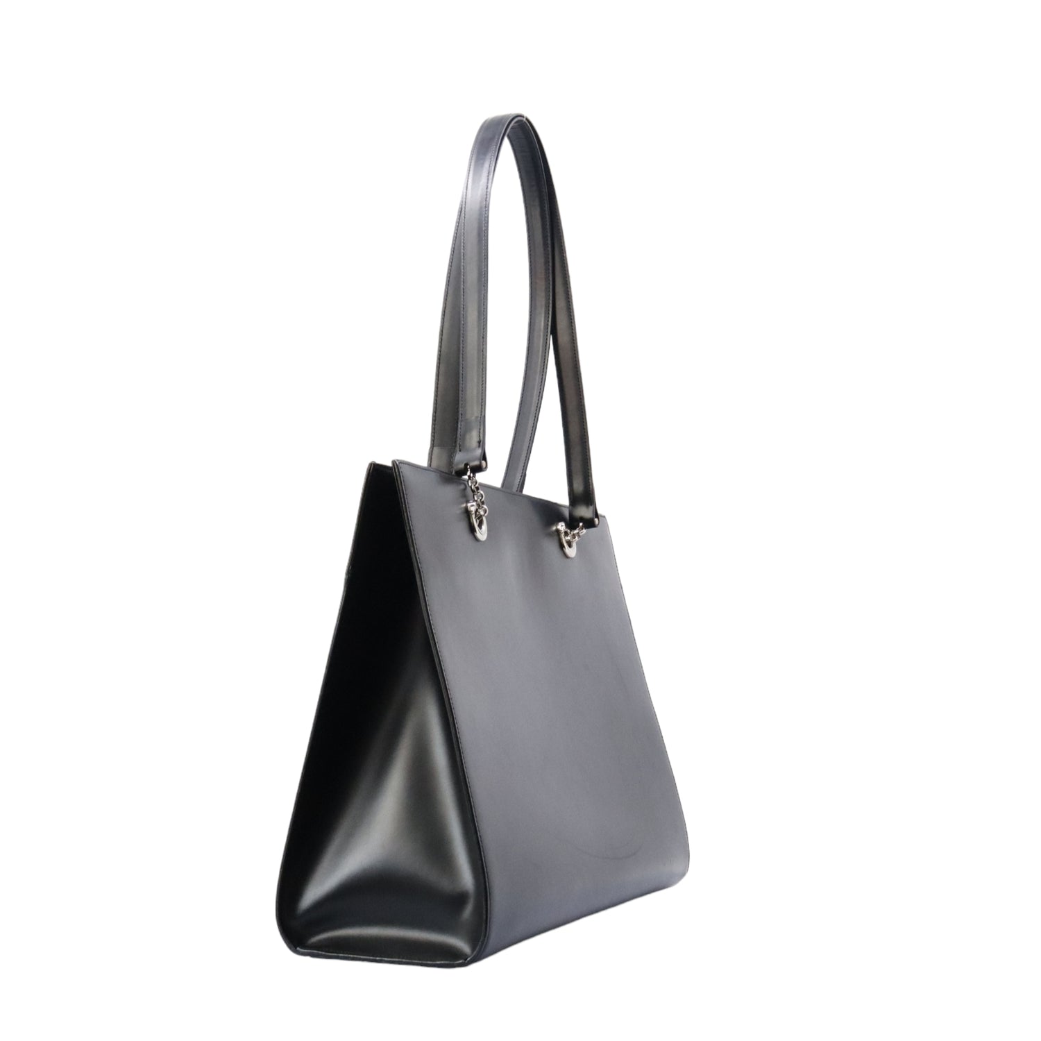 Bolso Tote Cartier modelo Panthere confeccionado en piel color negro, forro interno en tela con grabado en animal print, con 2 asas desmontables en piel con herrajes metálicos, 3 compartimentos internos uno de ellos con cierre de cremallera y cierre principal con botón magnético, poco uso. Buen estado, no cuenta con Dustbag.