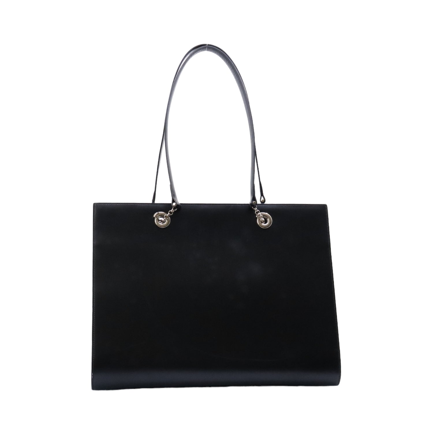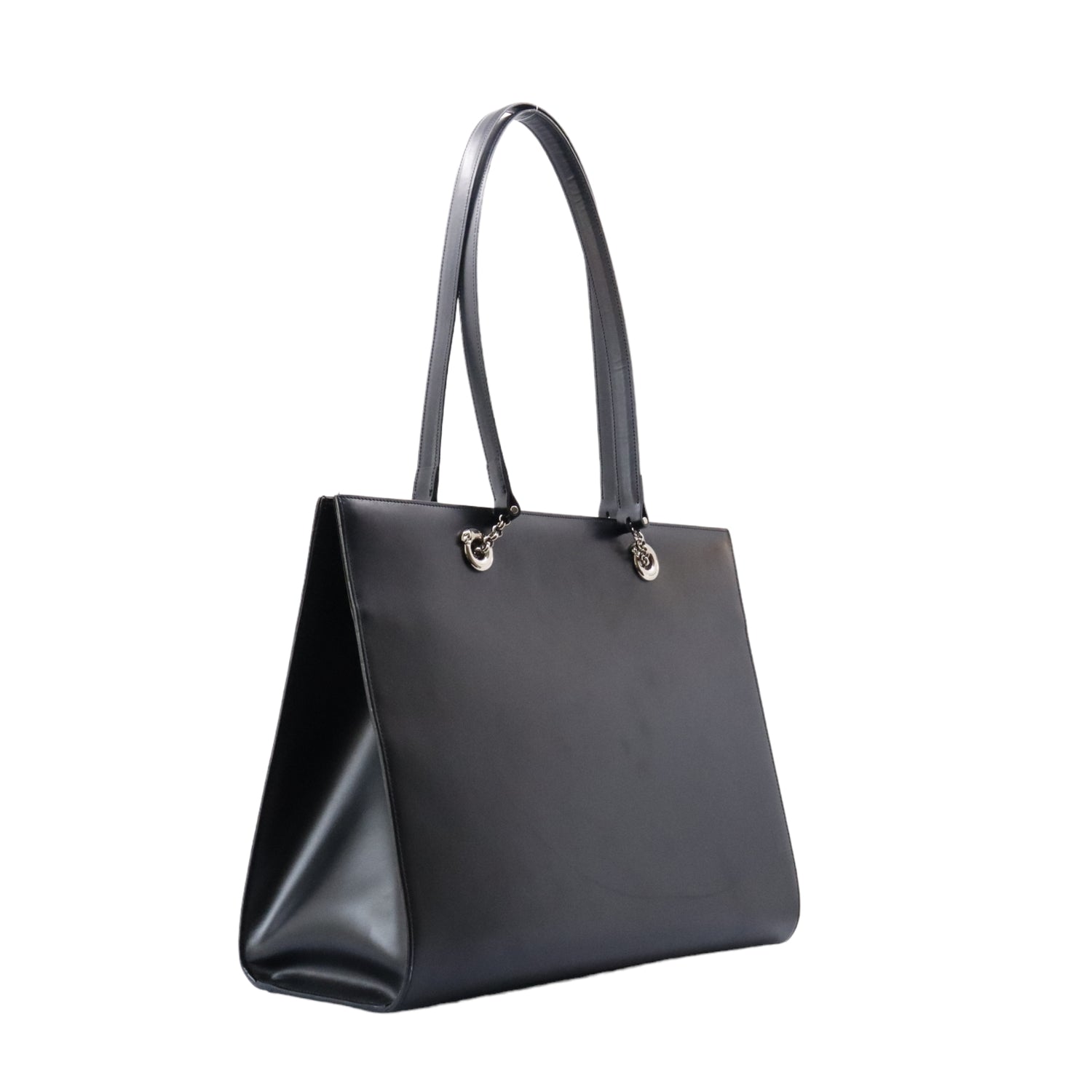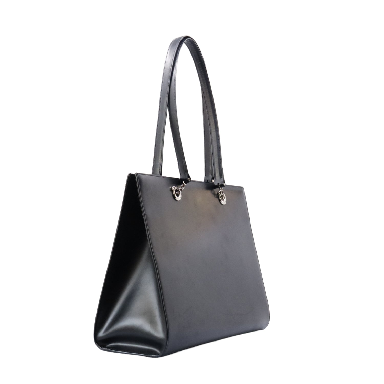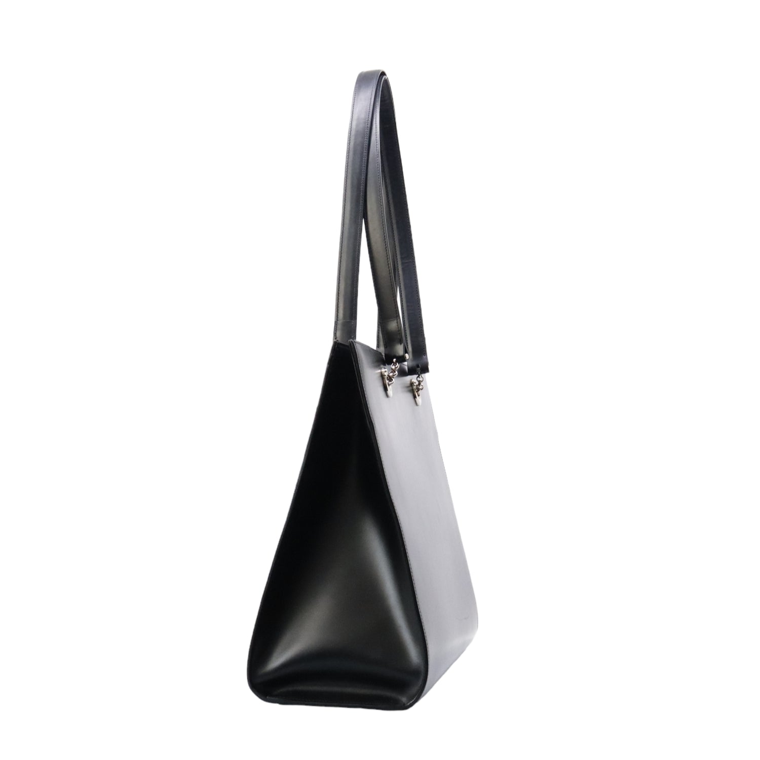 Bolso Tote Cartier modelo Panthere confeccionado en piel color negro, forro interno en tela con grabado en animal print, con 2 asas desmontables en piel con herrajes metálicos, 3 compartimentos internos uno de ellos con cierre de cremallera y cierre principal con botón magnético, poco uso. Buen estado, no cuenta con Dustbag.