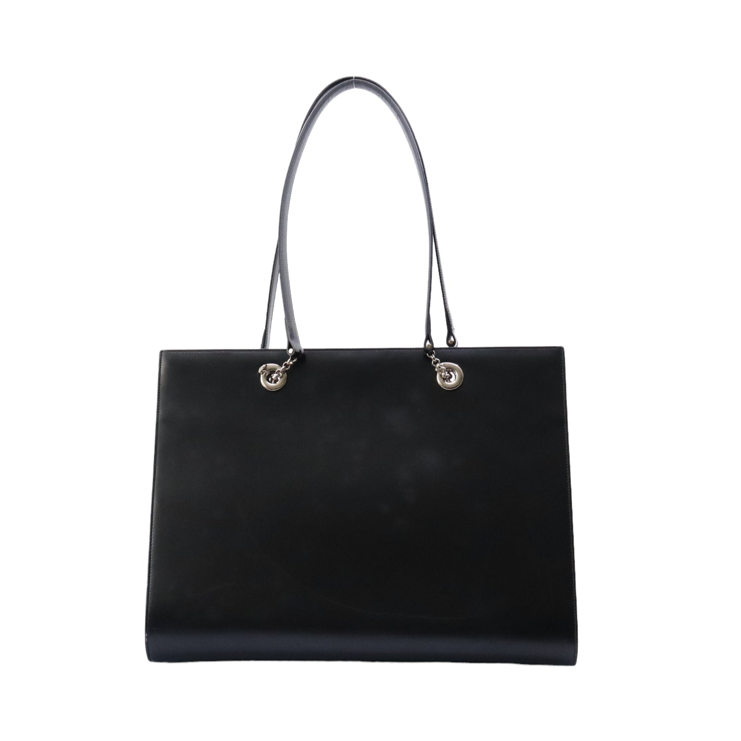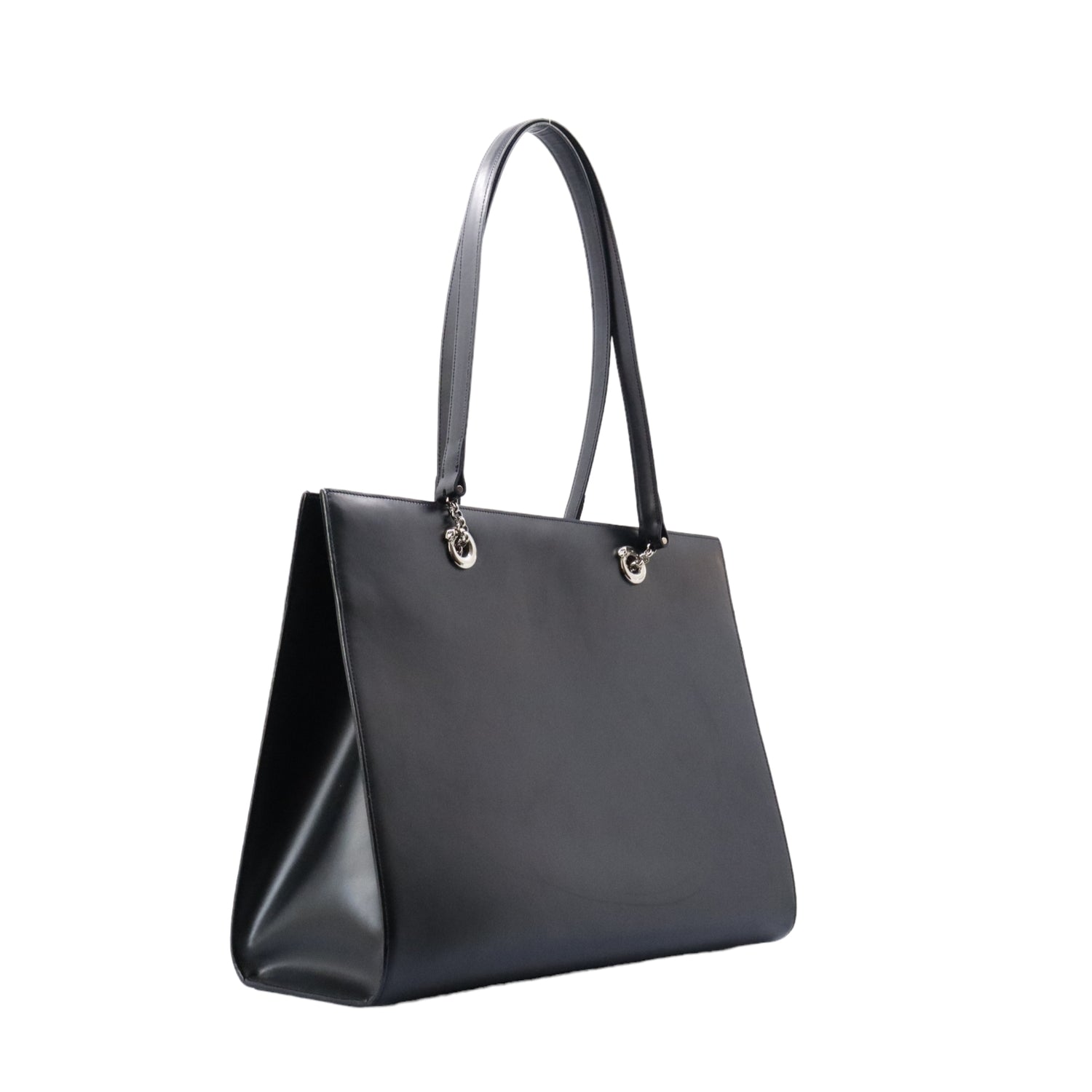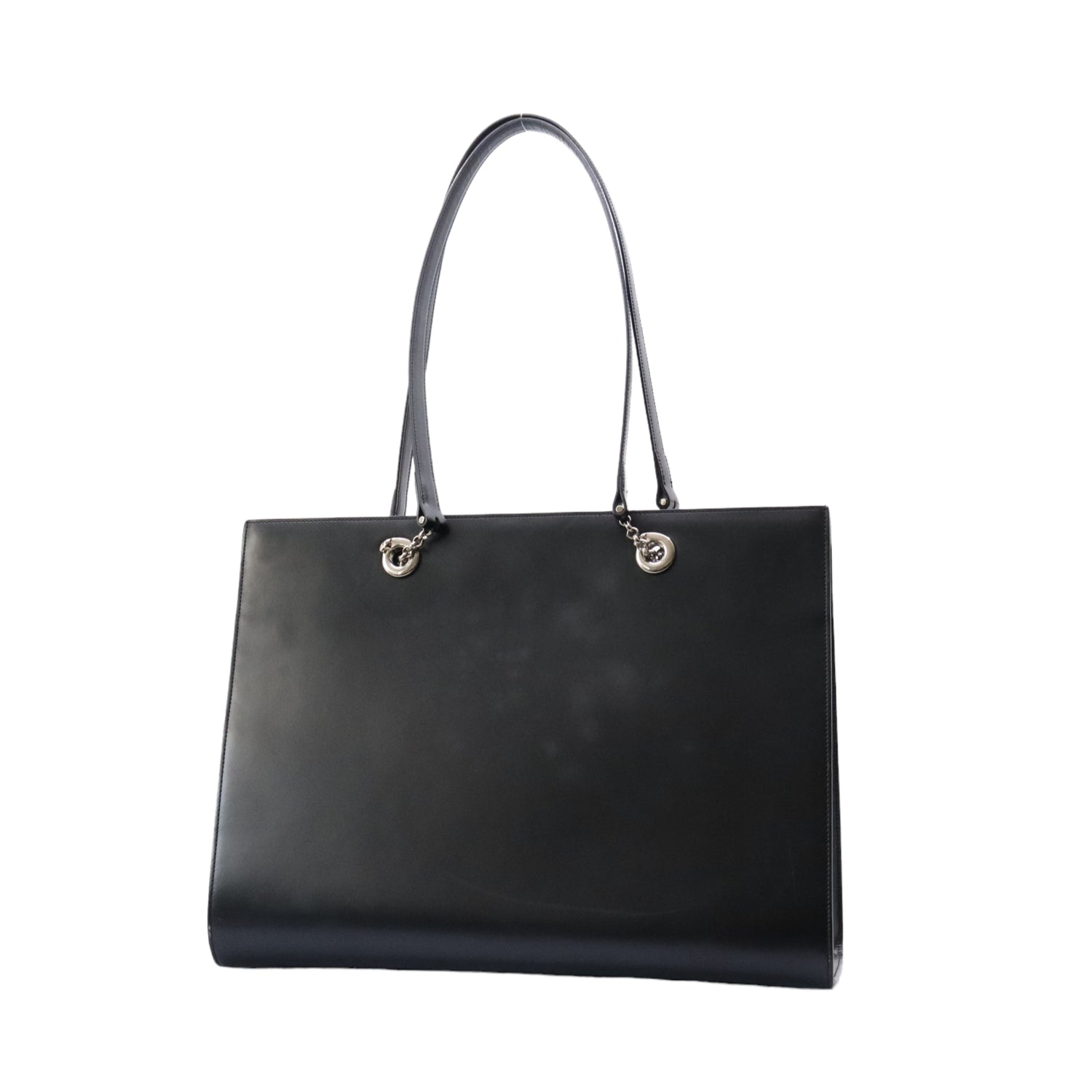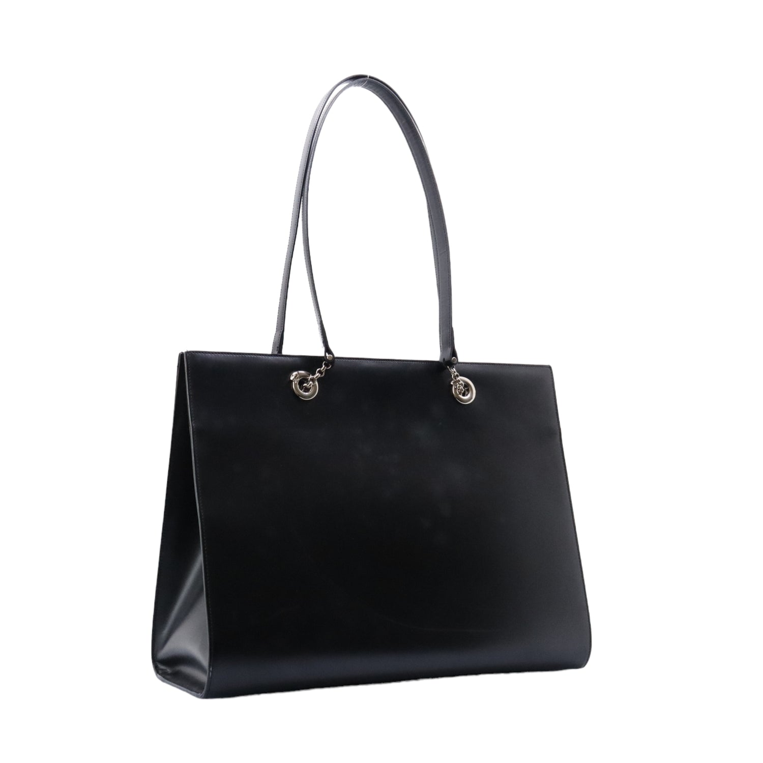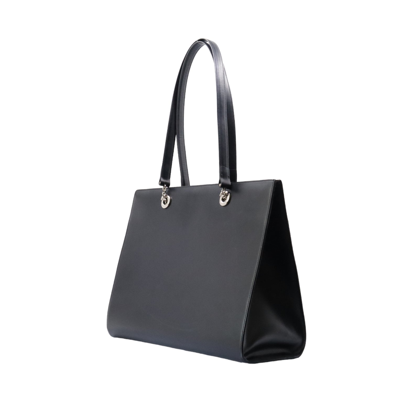Bolso Tote Cartier modelo Panthere confeccionado en piel color negro, forro interno en tela con grabado en animal print, con 2 asas desmontables en piel con herrajes metálicos, 3 compartimentos internos uno de ellos con cierre de cremallera y cierre principal con botón magnético, poco uso. Buen estado, no cuenta con Dustbag.