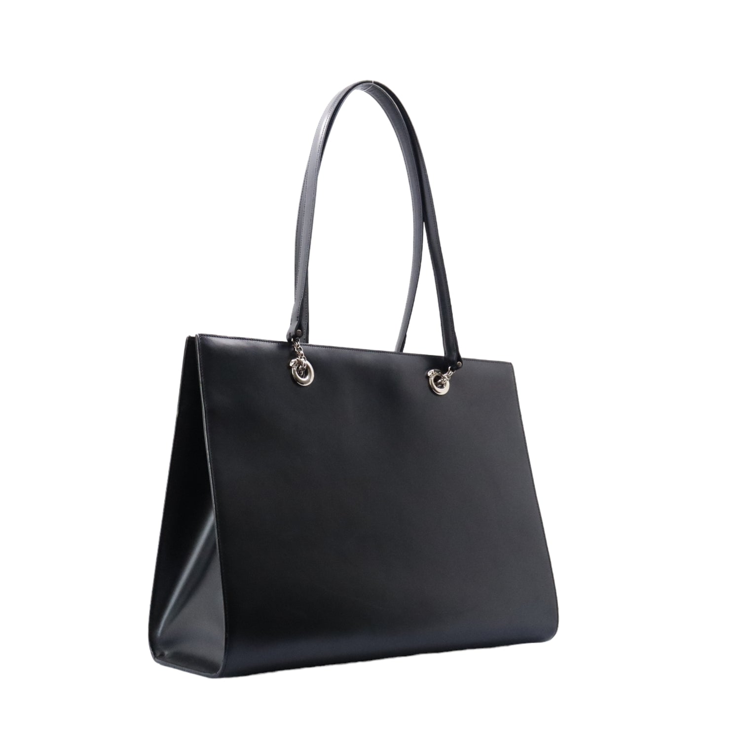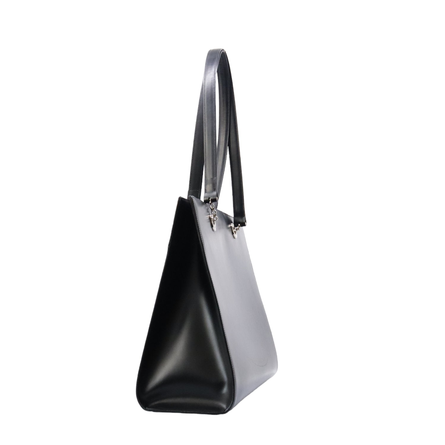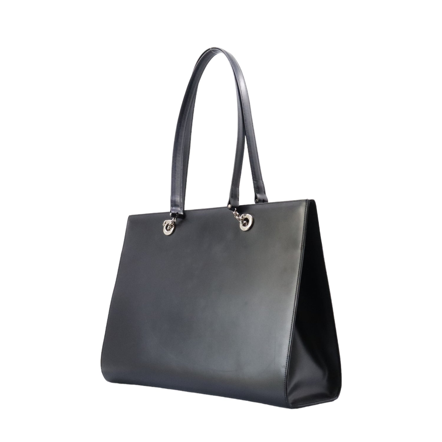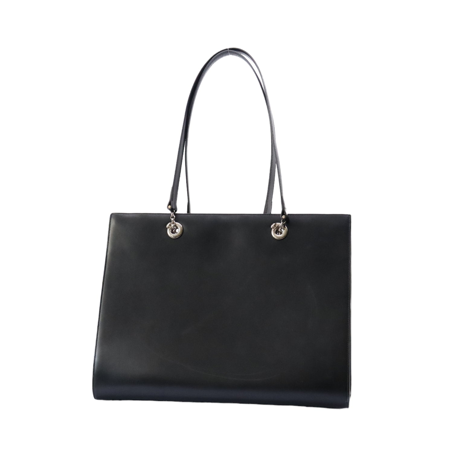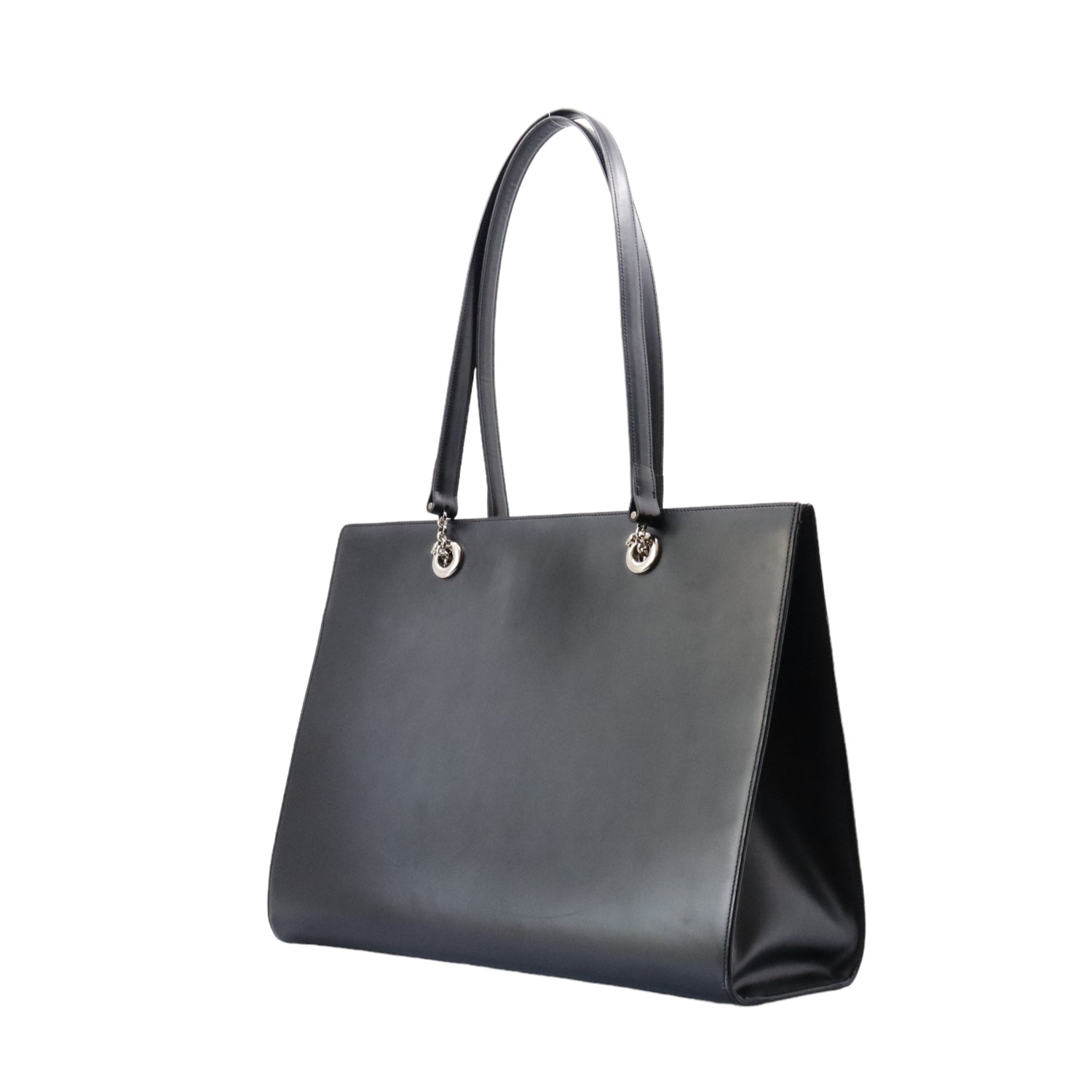 Bolso Tote Cartier modelo Panthere confeccionado en piel color negro, forro interno en tela con grabado en animal print, con 2 asas desmontables en piel con herrajes metálicos, 3 compartimentos internos uno de ellos con cierre de cremallera y cierre principal con botón magnético, poco uso. Buen estado, no cuenta con Dustbag.