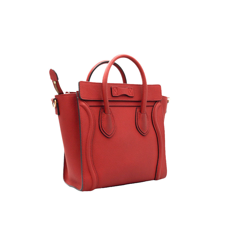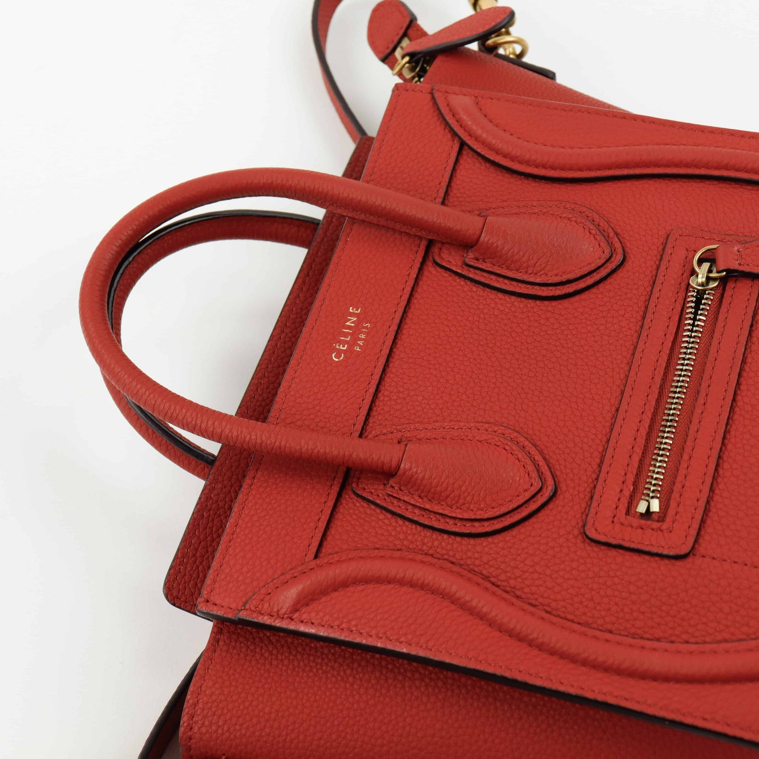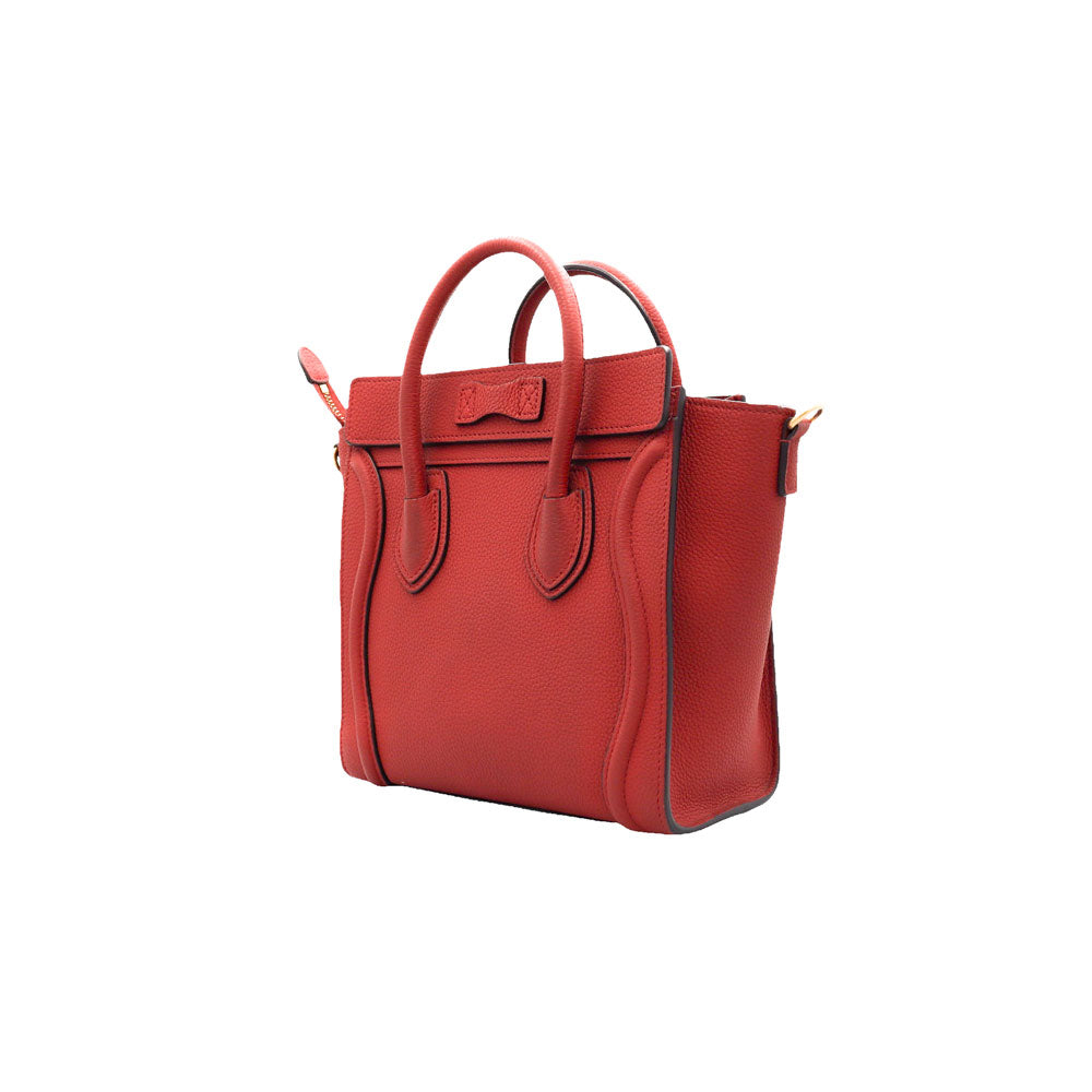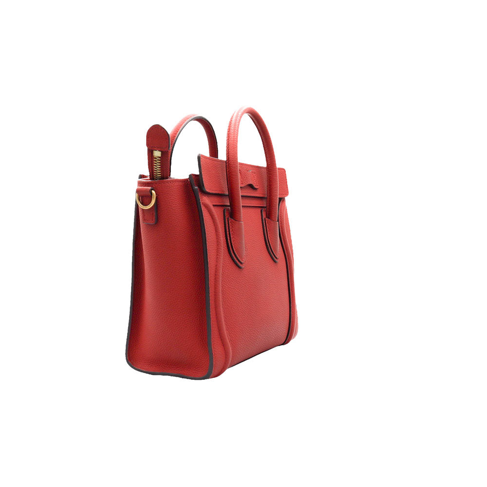 Bolso Celine Luggage Nano Shopper, con herrajes dorados, strap y asas rígidas, color rojo quemado, cierre con cremallera. ARTÍCULO DE SEGUNDA MANO EN EXCELENTE ESTADO. Cuenta con cubre polvo.
