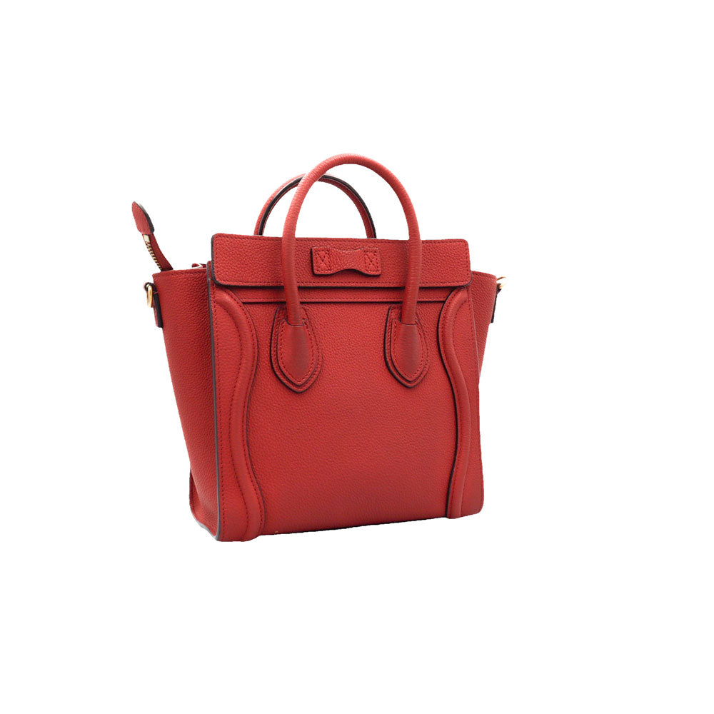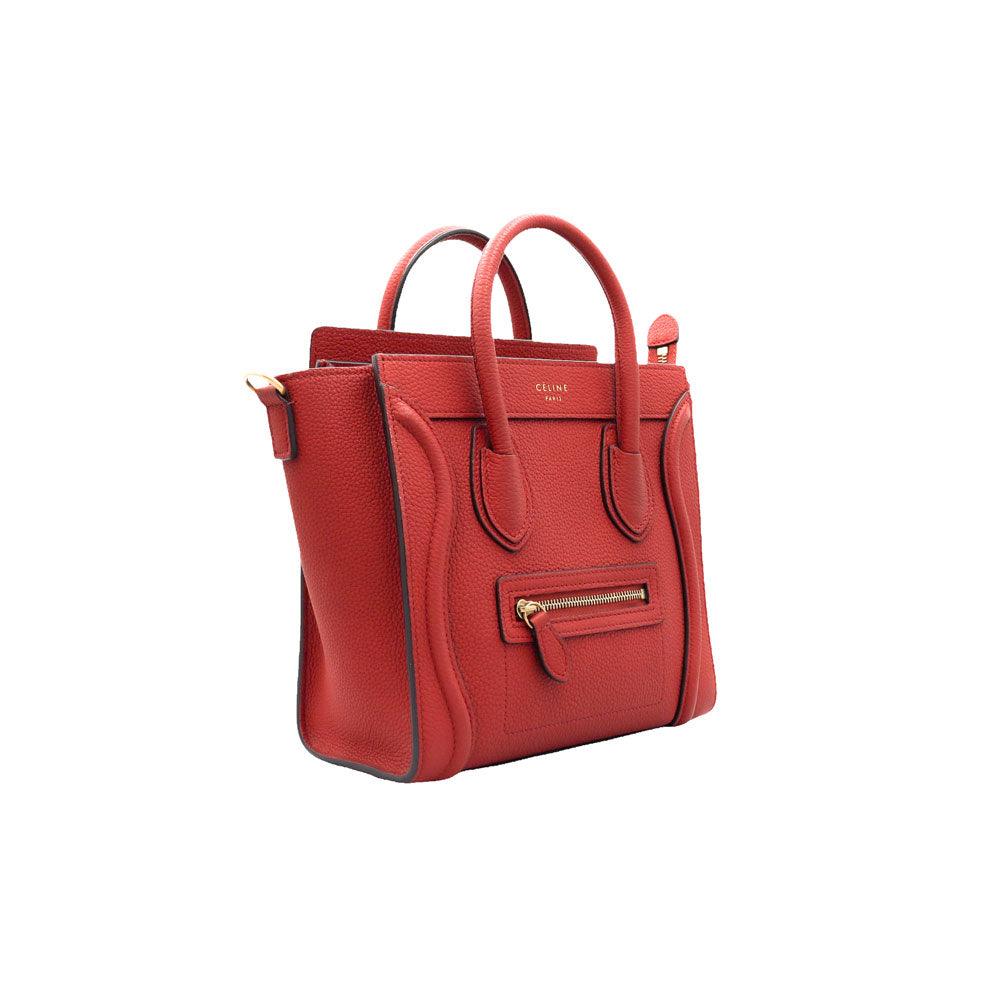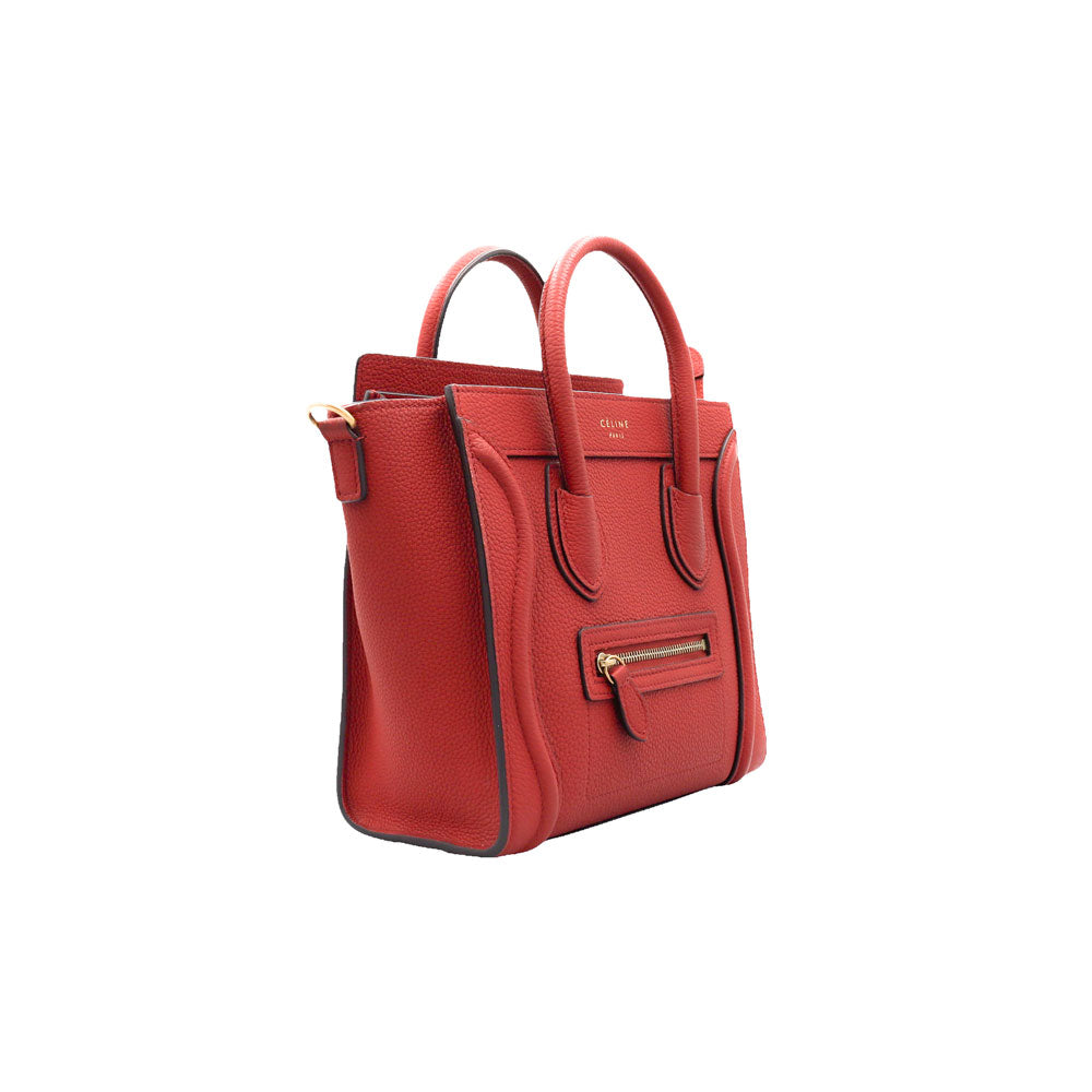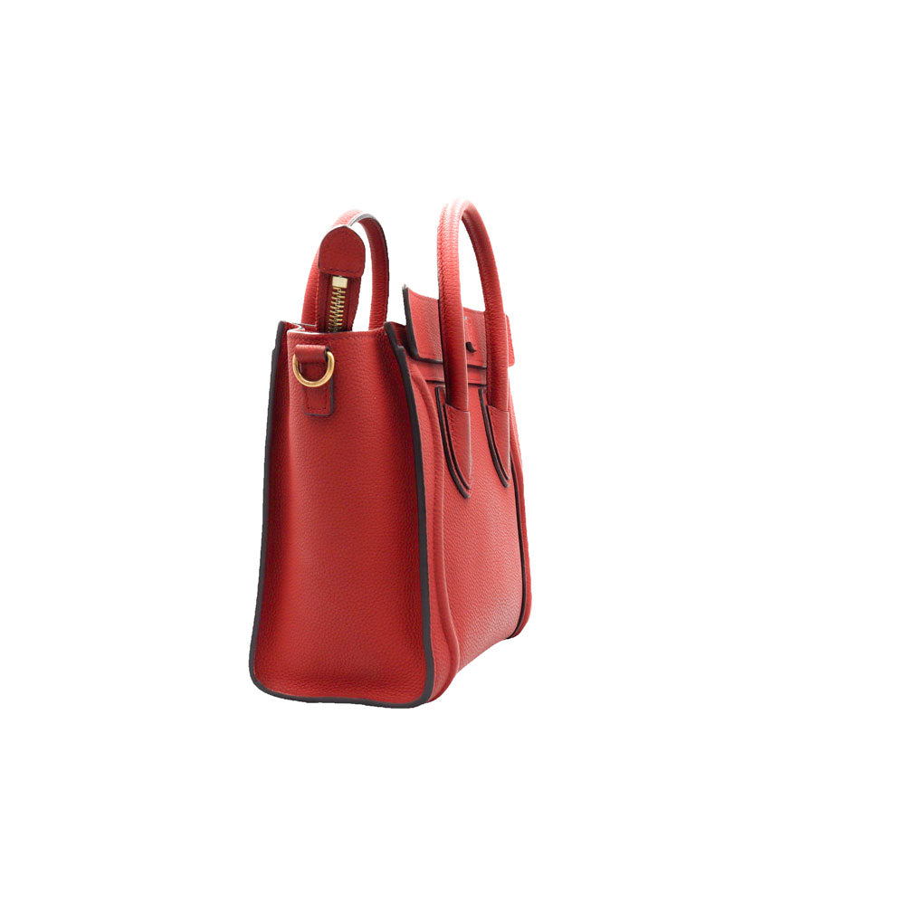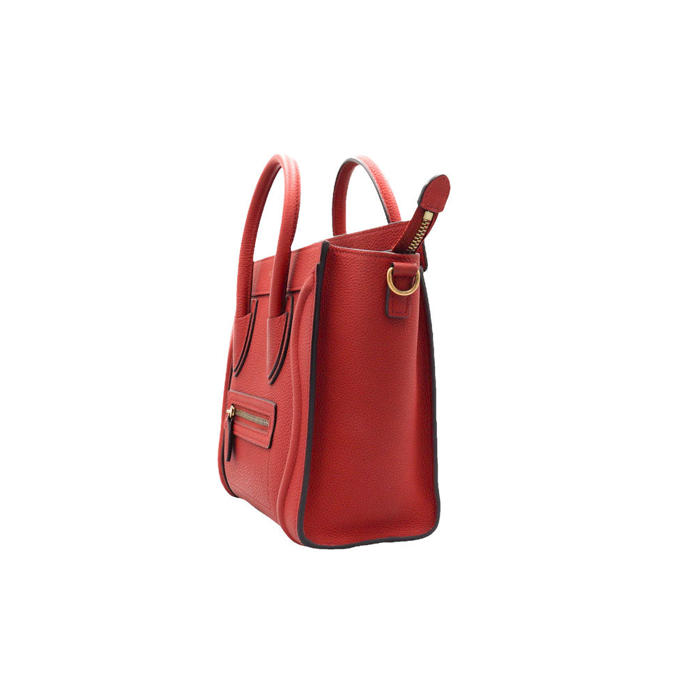 Bolso Celine Luggage Nano Shopper, con herrajes dorados, strap y asas rígidas, color rojo quemado, cierre con cremallera. ARTÍCULO DE SEGUNDA MANO EN EXCELENTE ESTADO. Cuenta con cubre polvo.