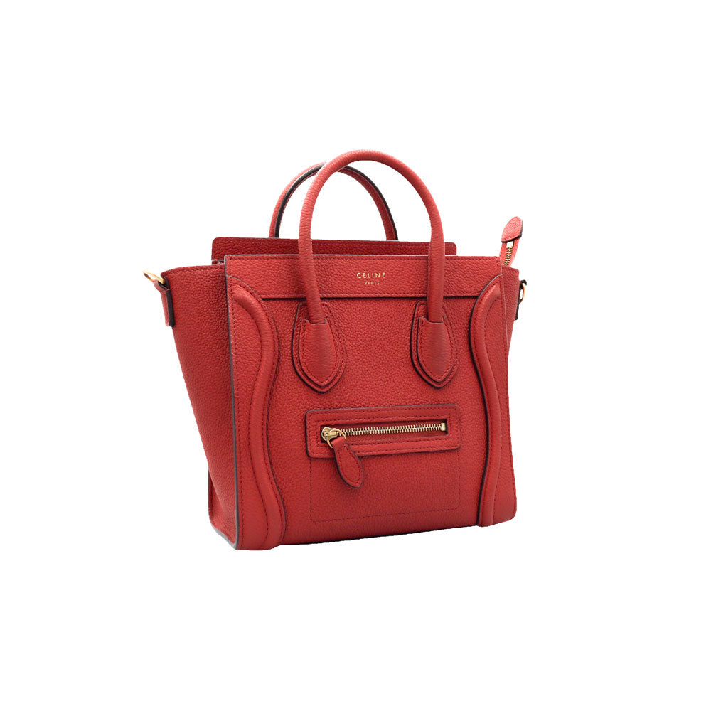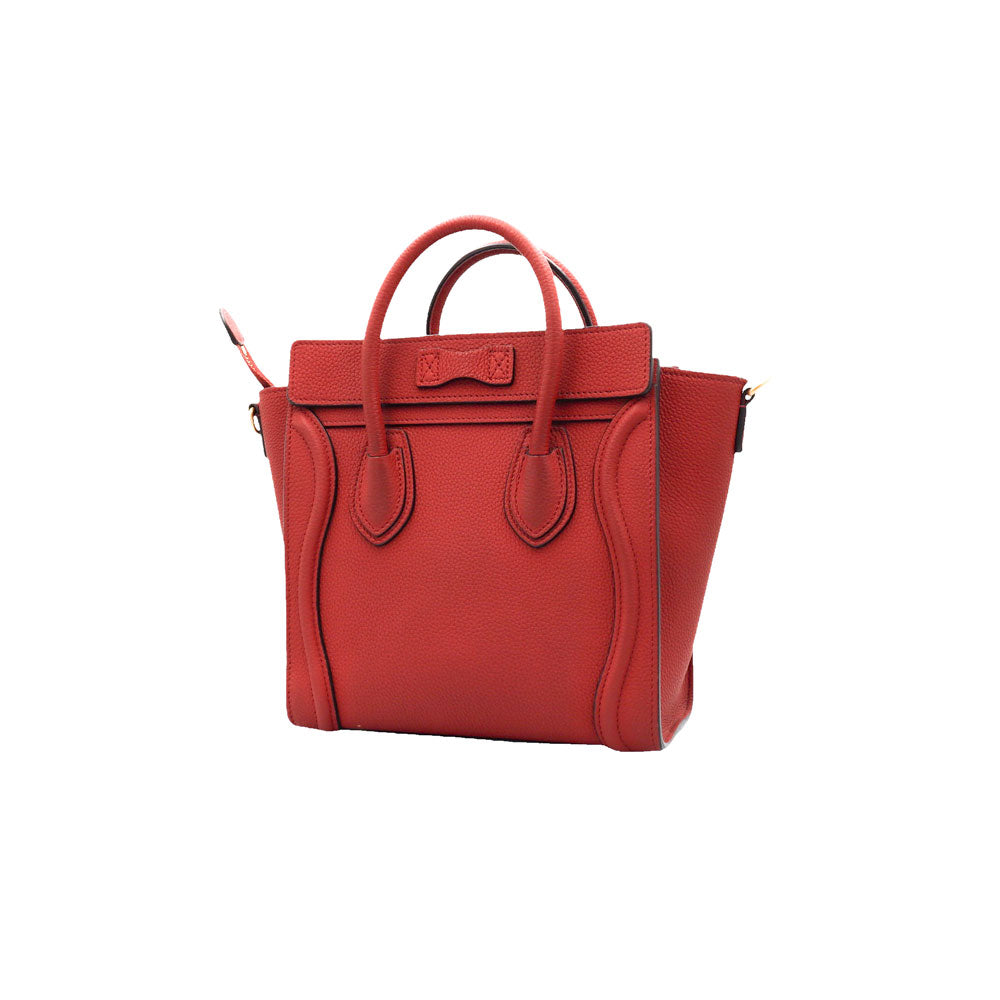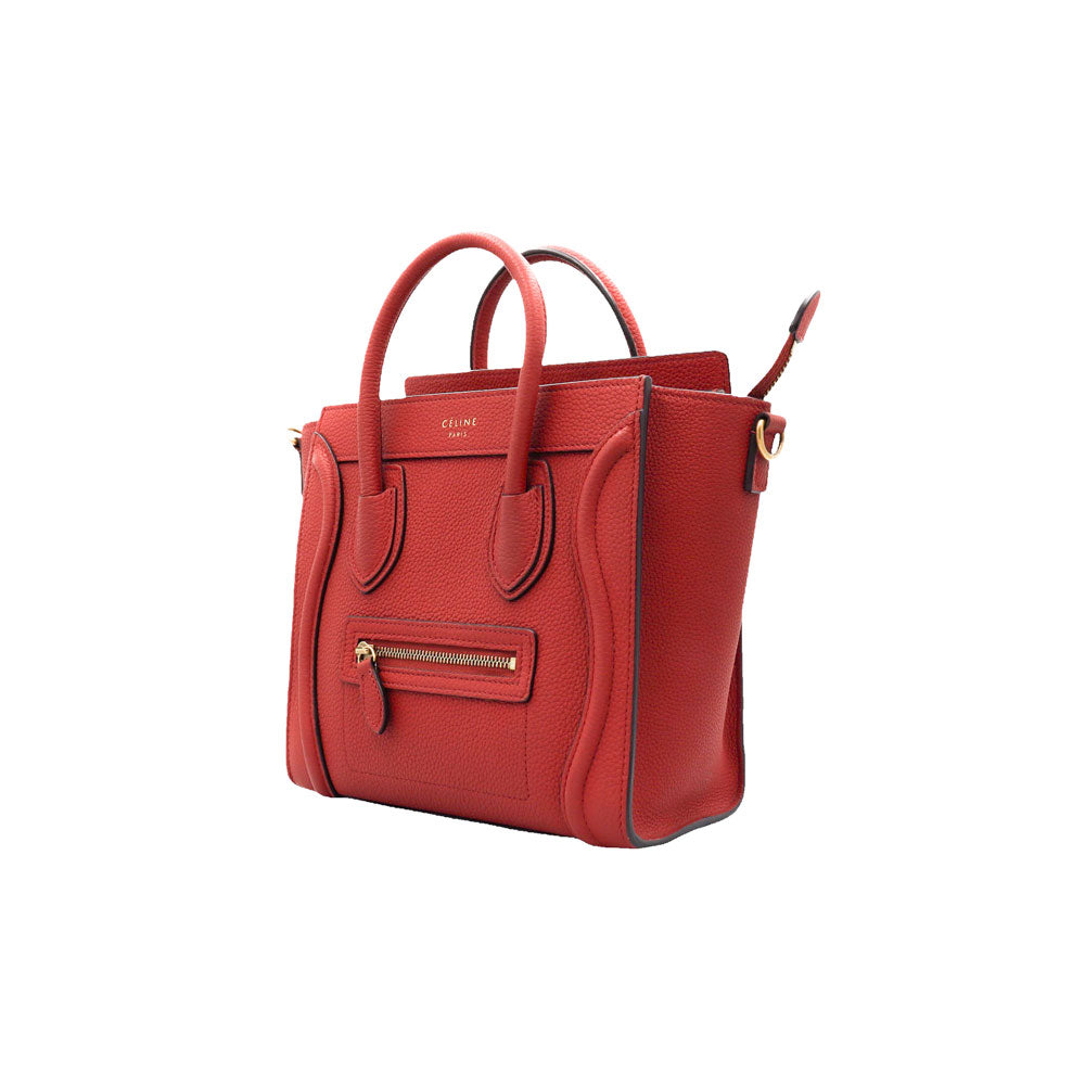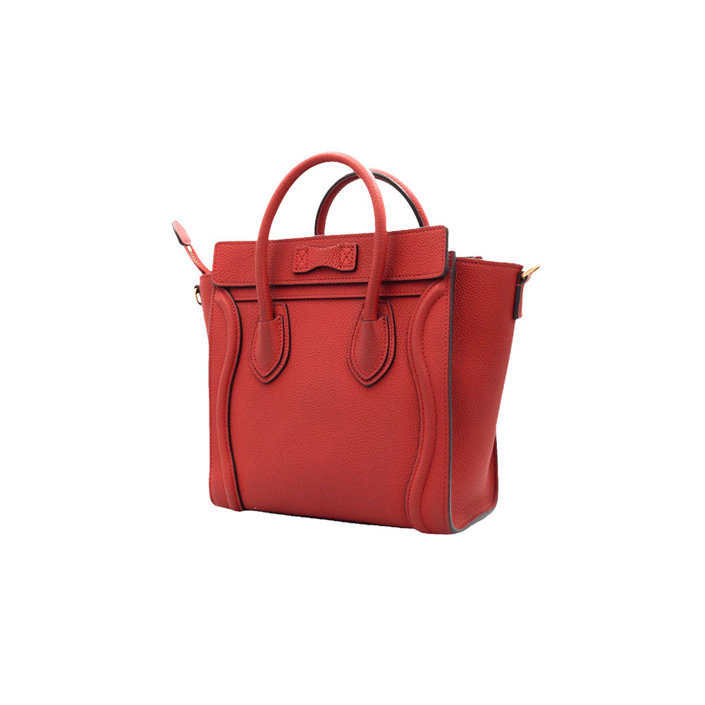Bolso Celine Luggage Nano Shopper, con herrajes dorados, strap y asas rígidas, color rojo quemado, cierre con cremallera. ARTÍCULO DE SEGUNDA MANO EN EXCELENTE ESTADO. Cuenta con cubre polvo.