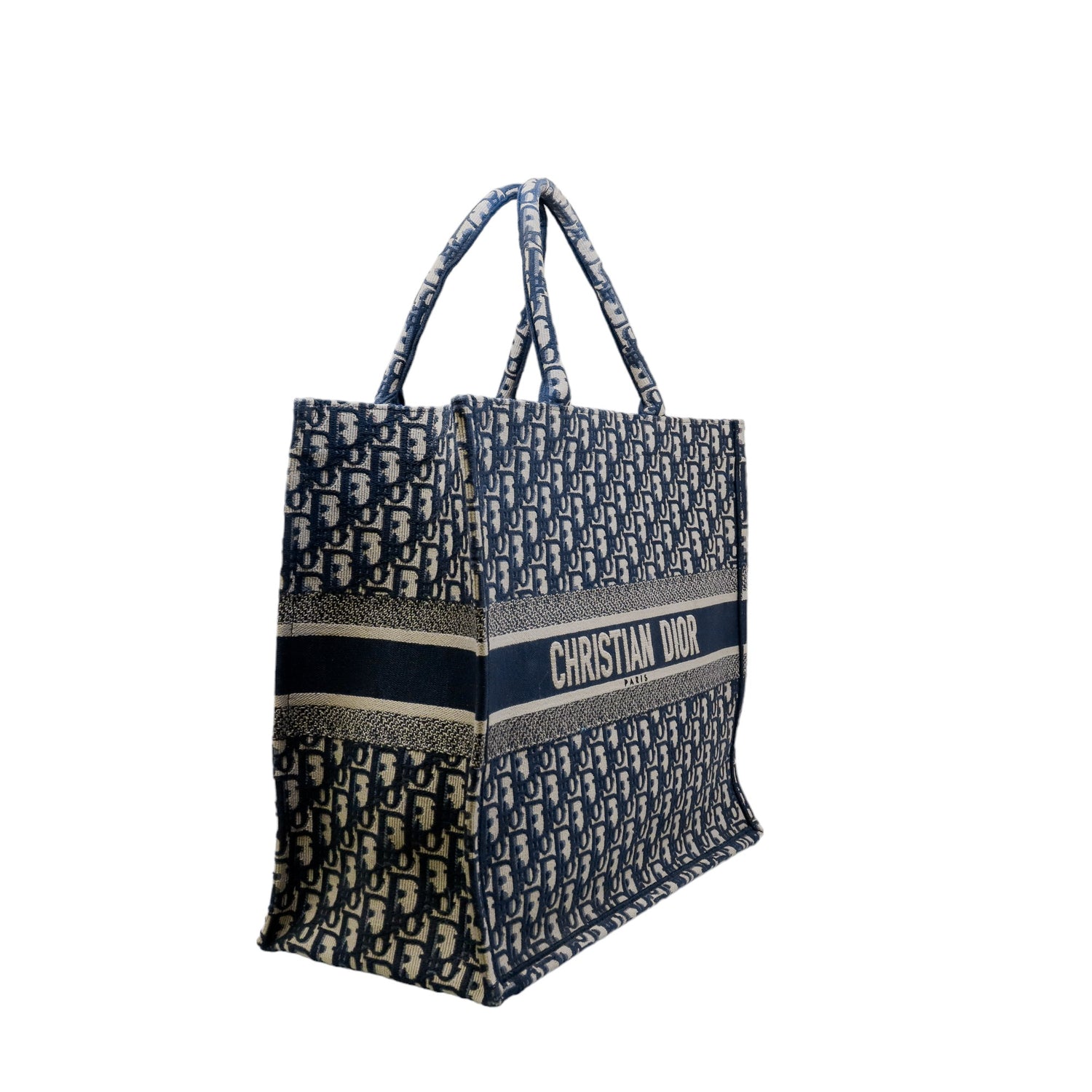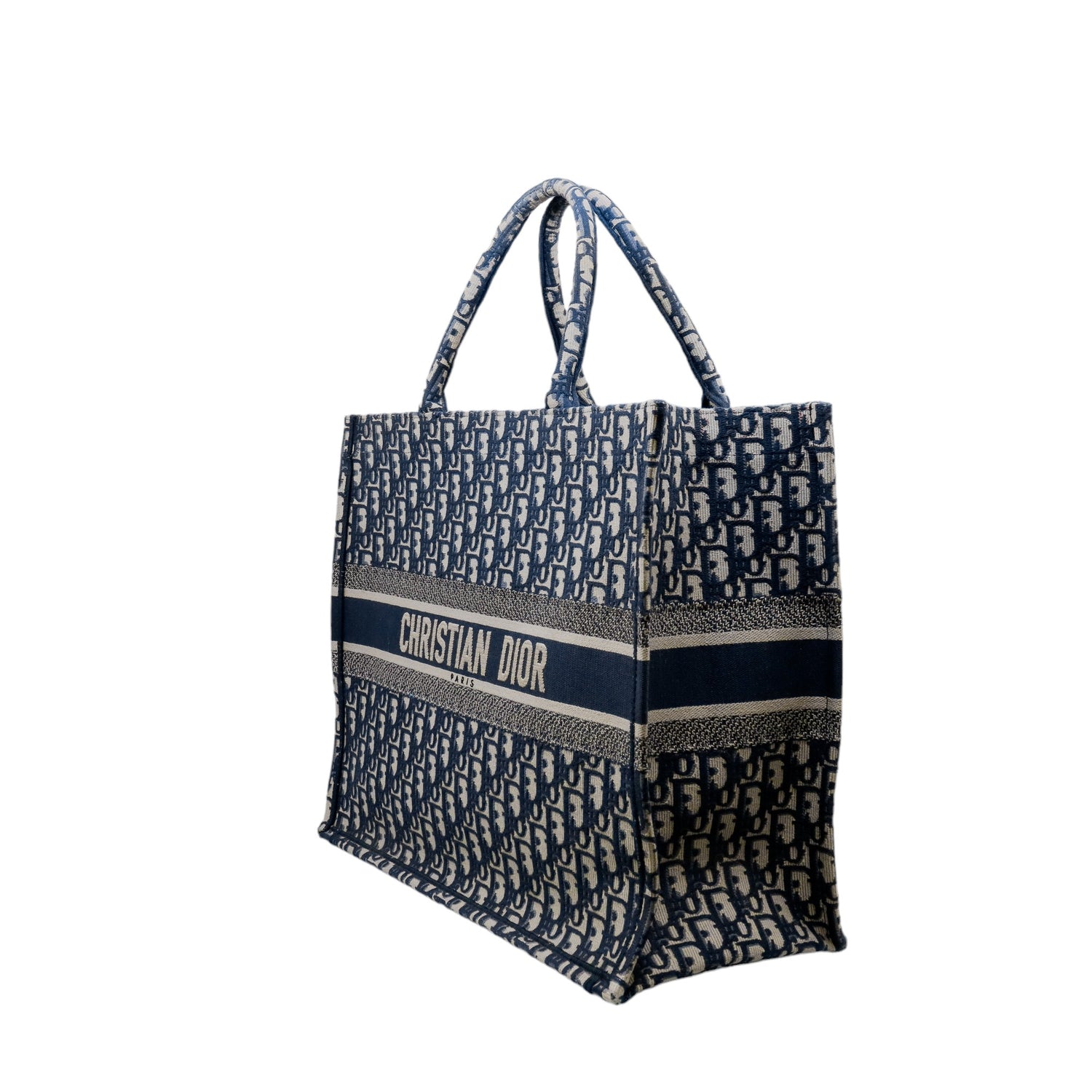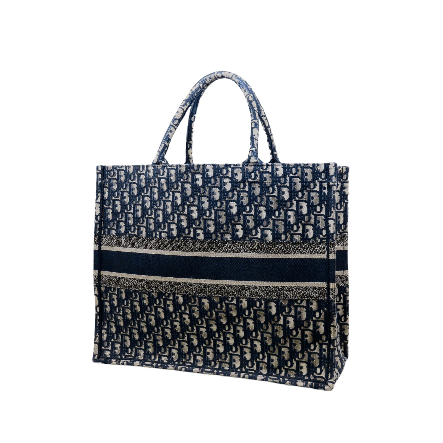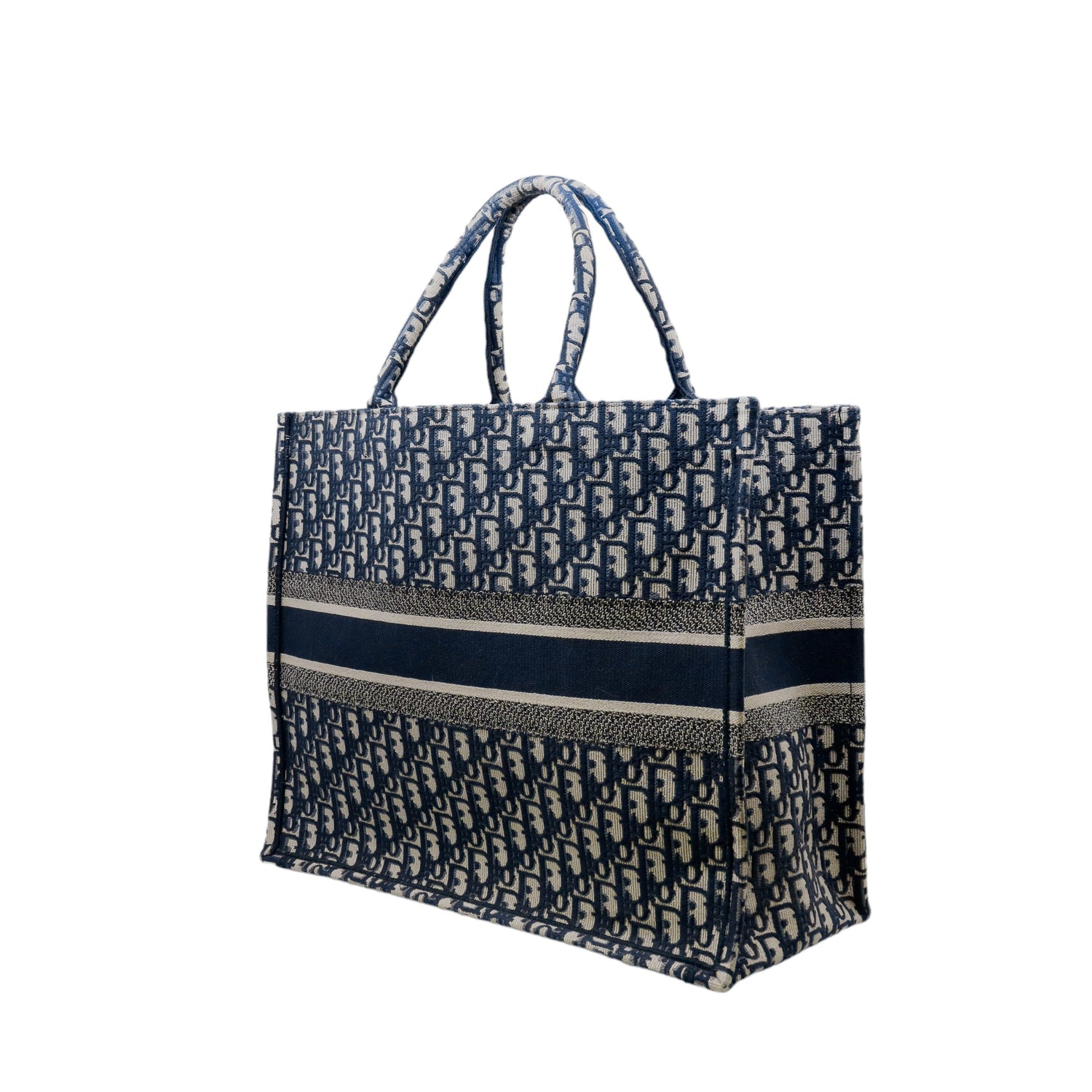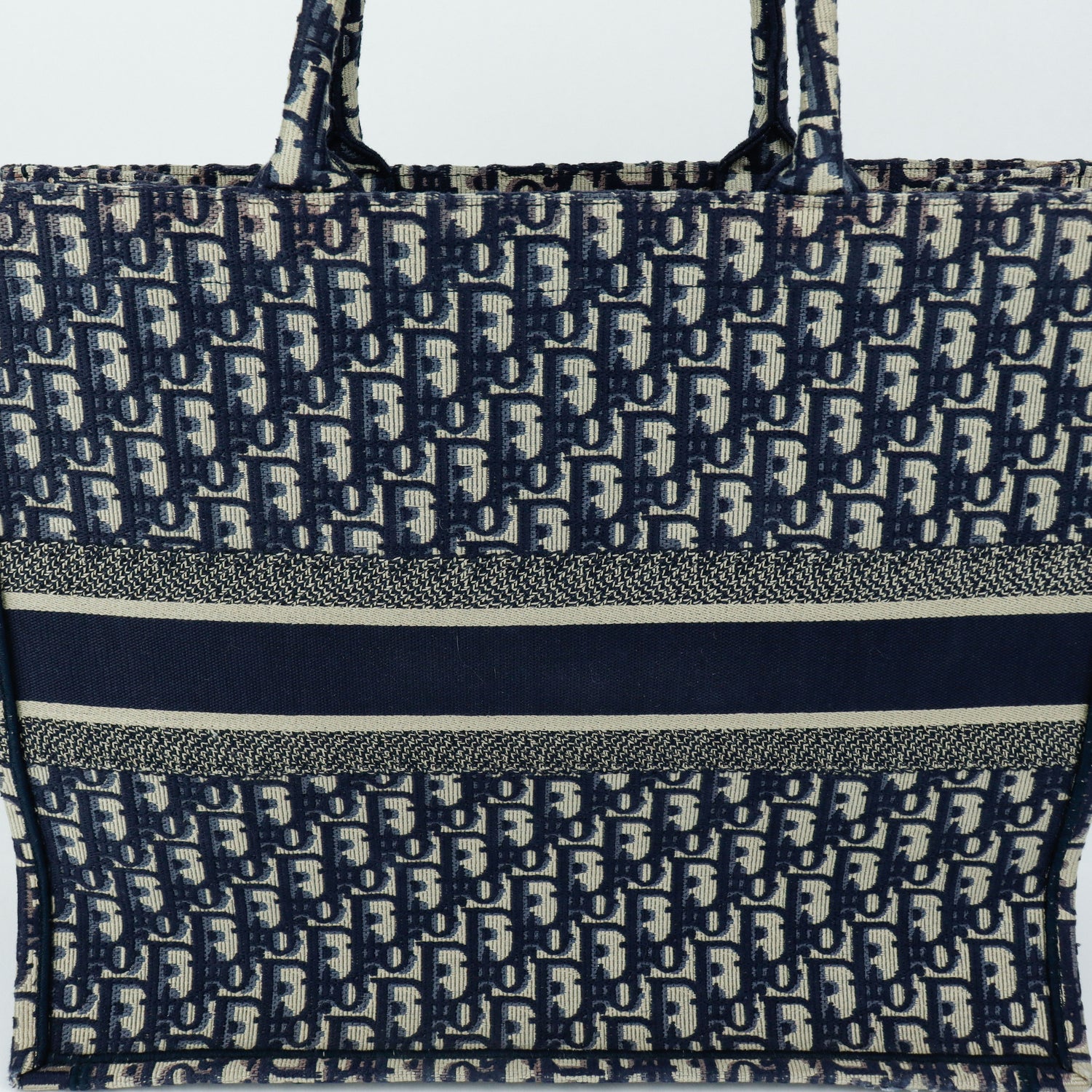Bolso Christian Dior tipo Tote, confeccionado en lienzo blanco con negro con el monograma de la marca, poco sucia en asas, base y esquina.