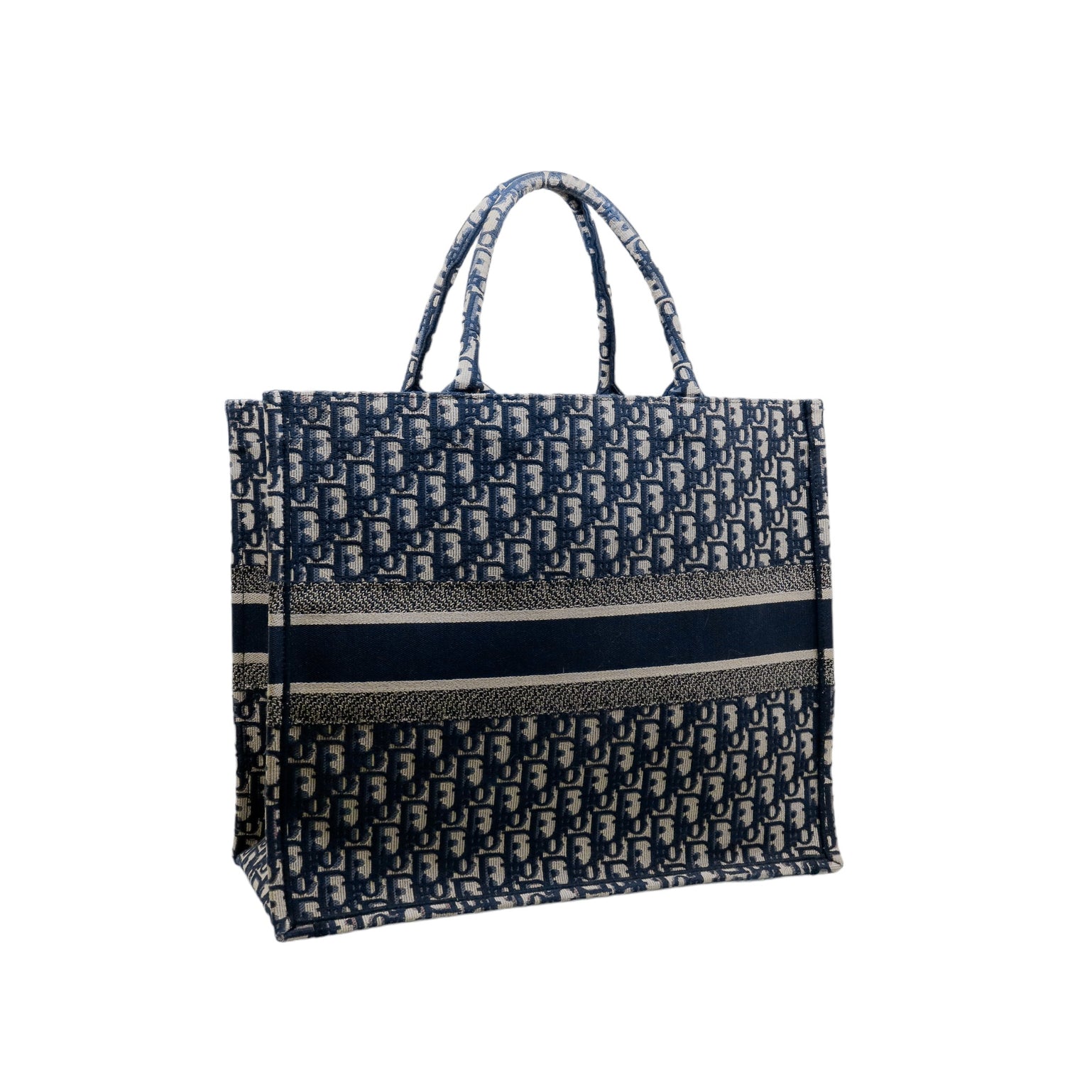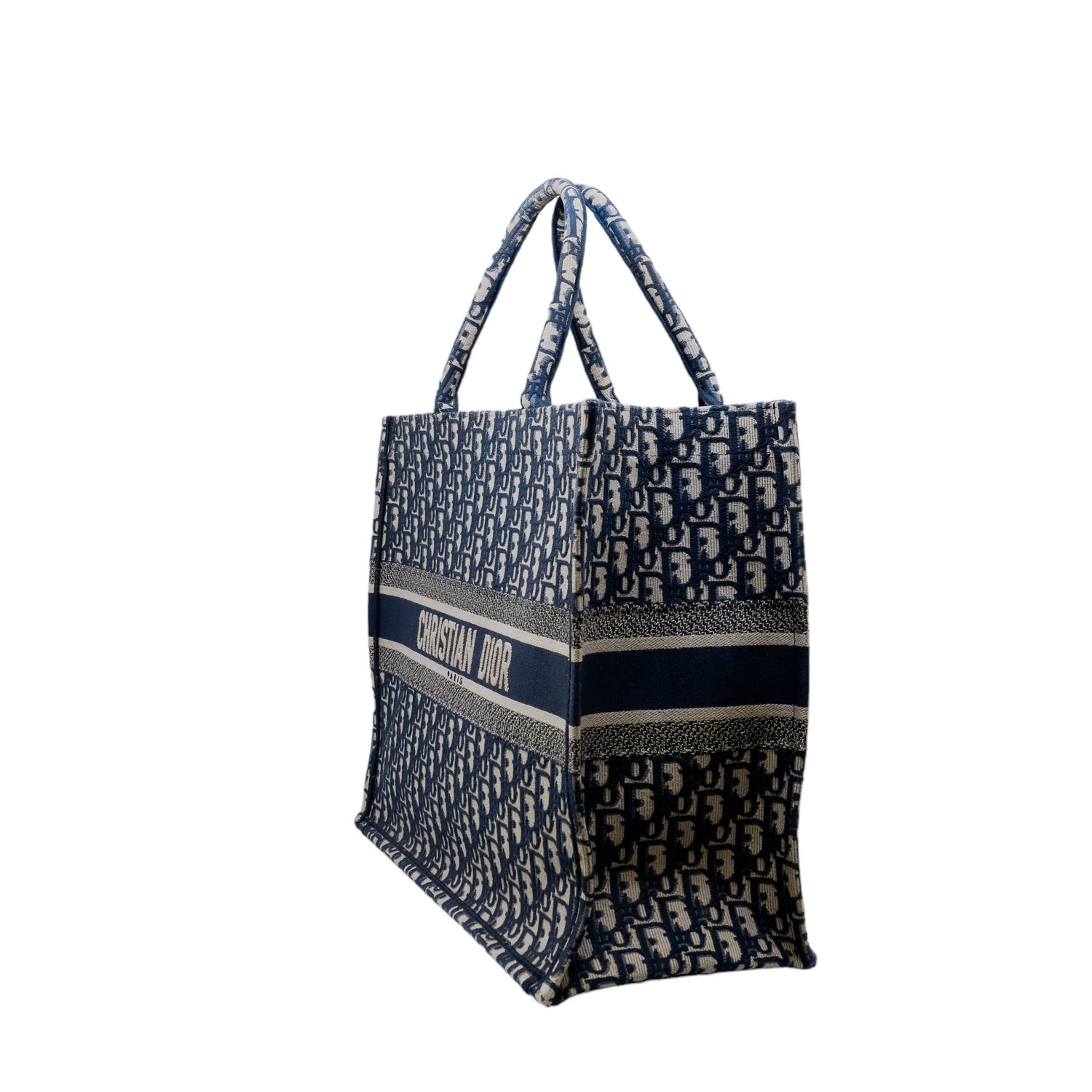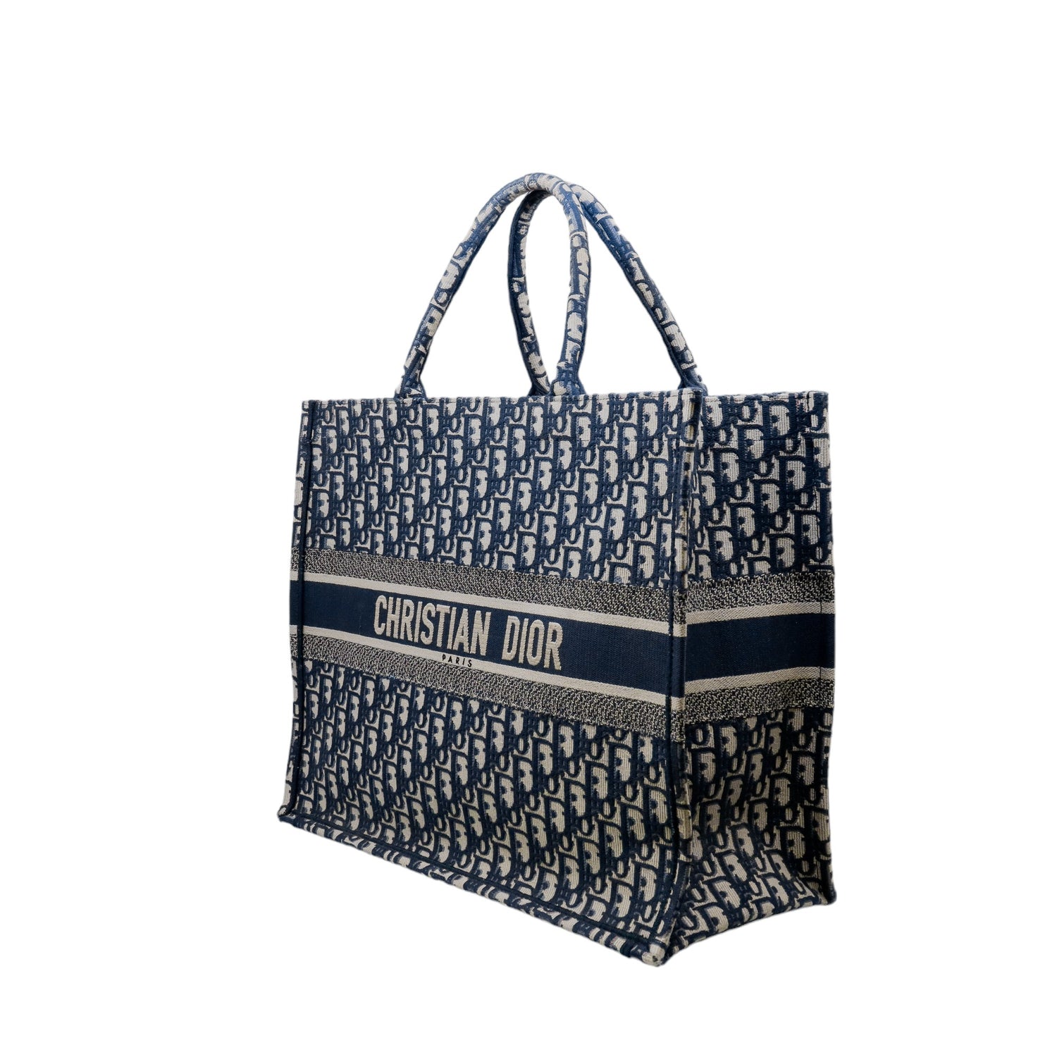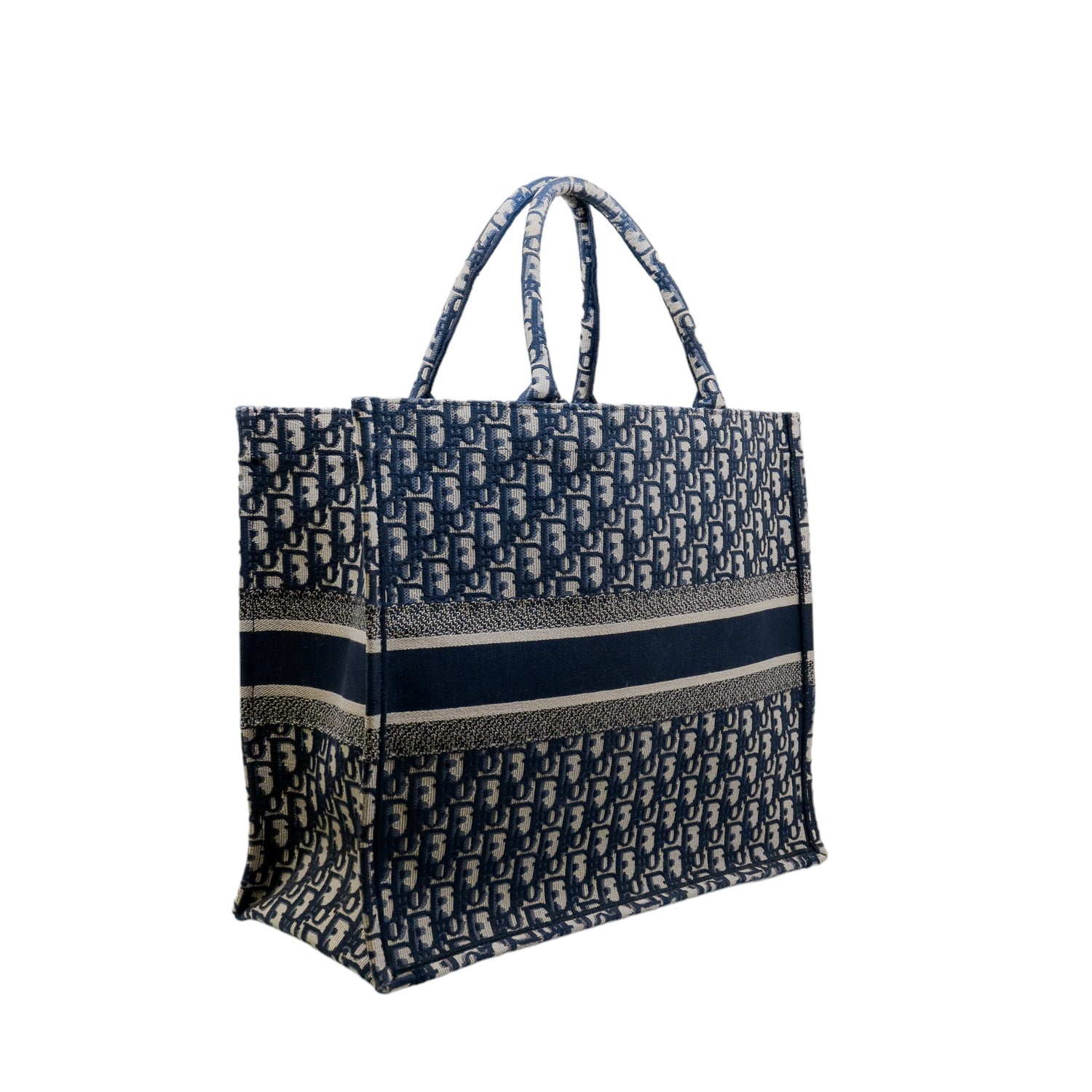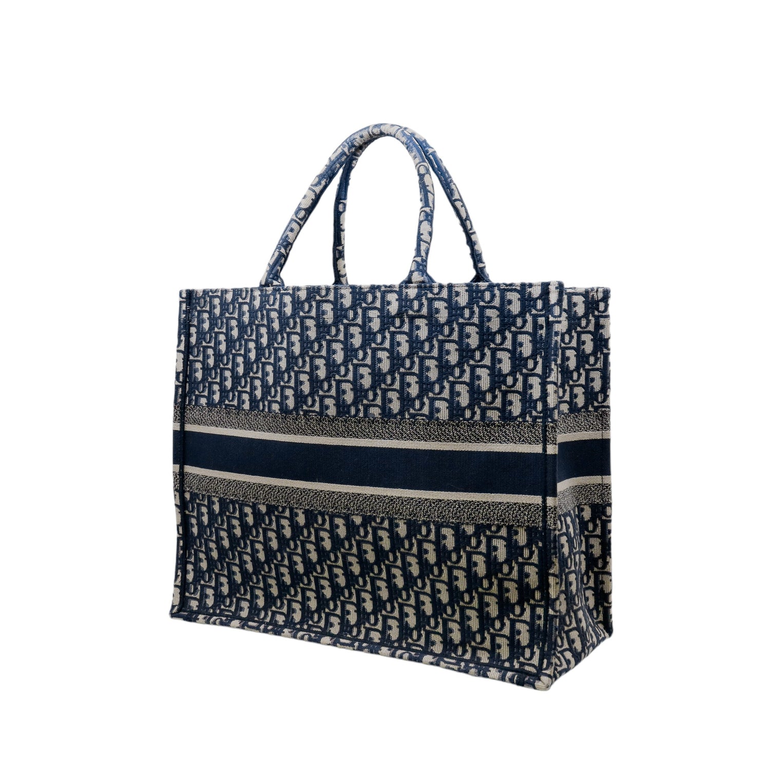 Bolso Christian Dior tipo Tote, confeccionado en lienzo blanco con negro con el monograma de la marca, poco sucia en asas, base y esquina.