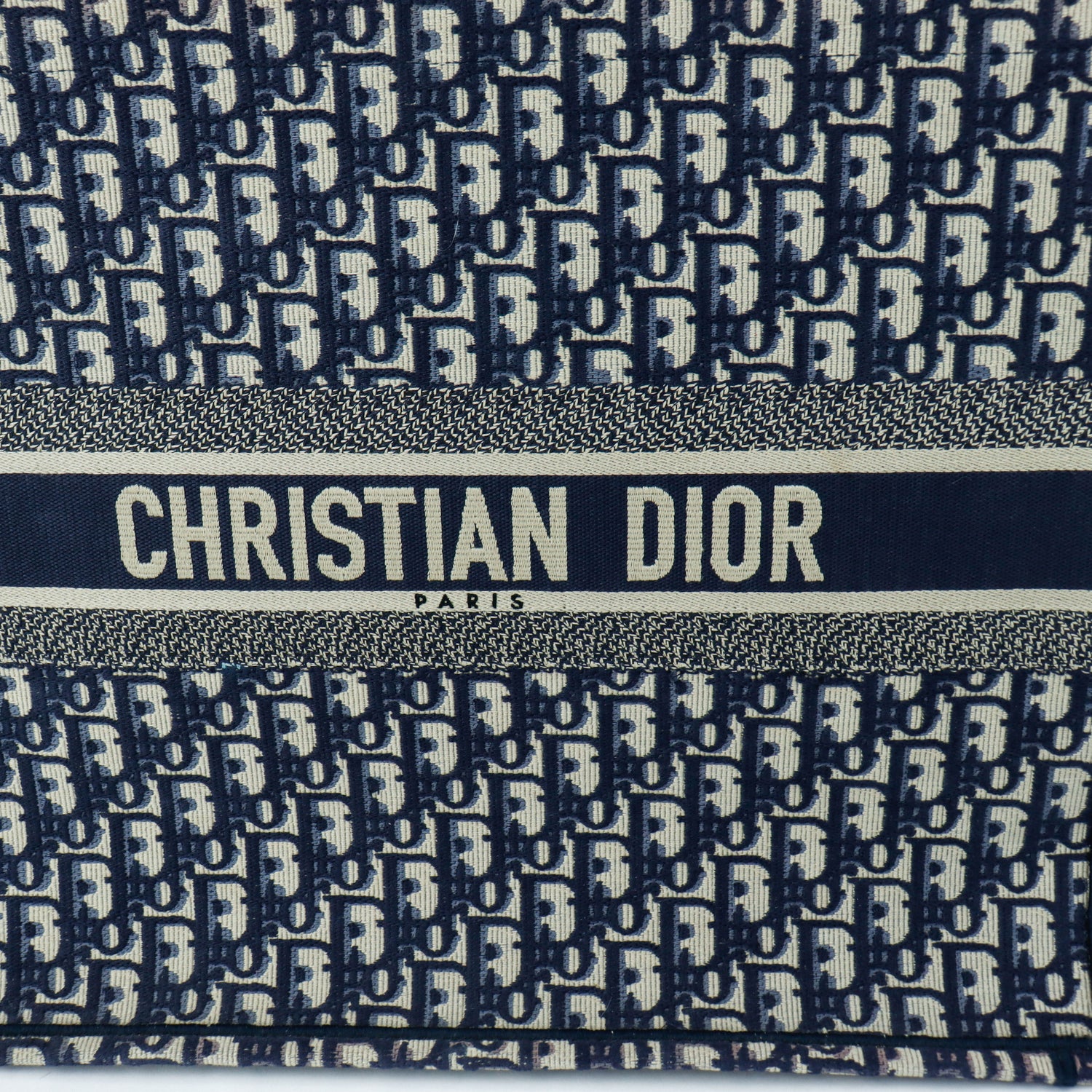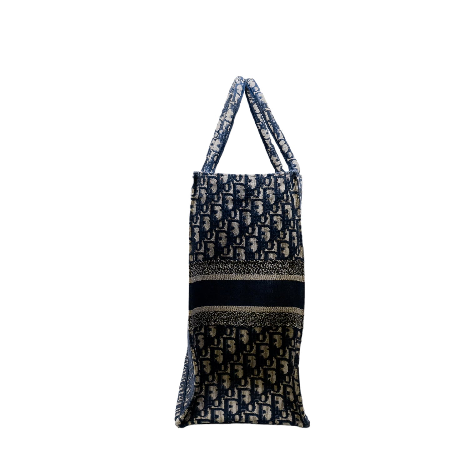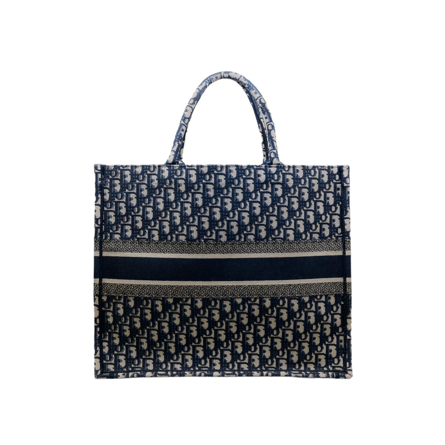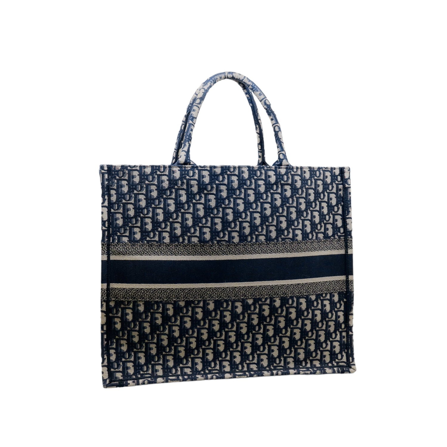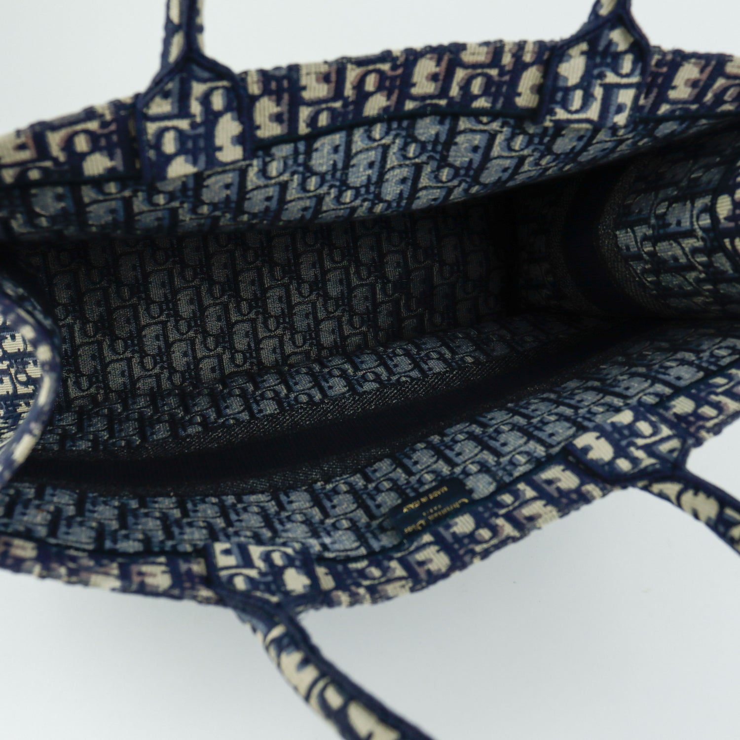 Bolso Christian Dior tipo Tote, confeccionado en lienzo blanco con negro con el monograma de la marca, poco sucia en asas, base y esquina.
