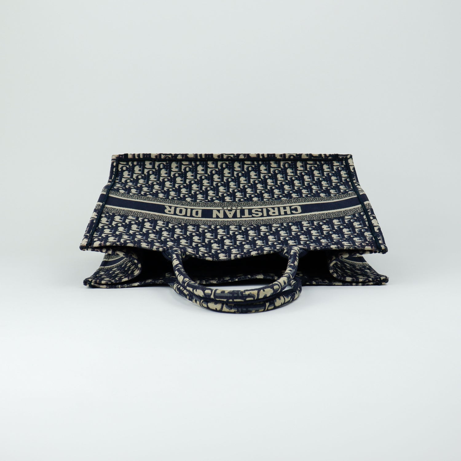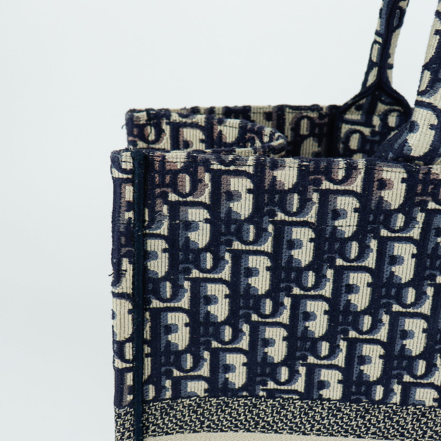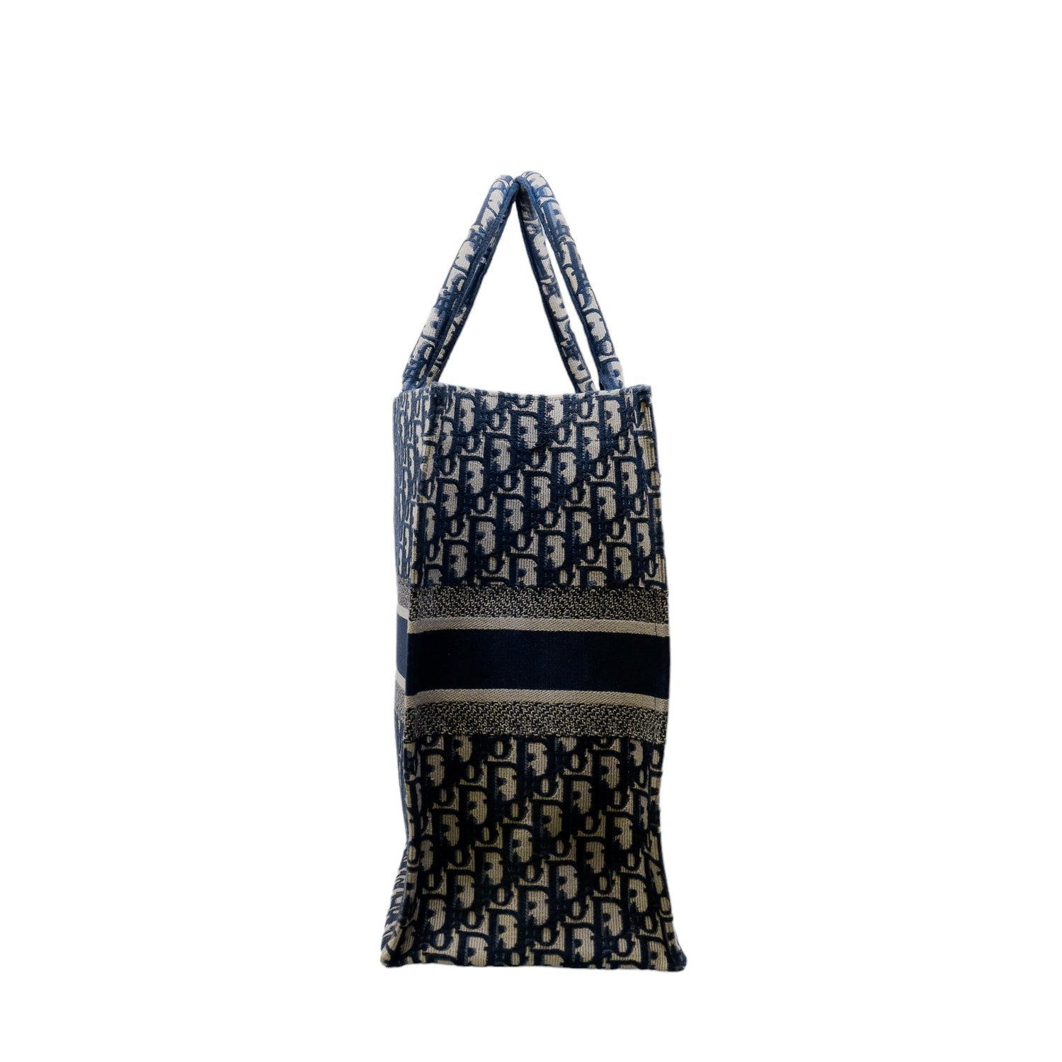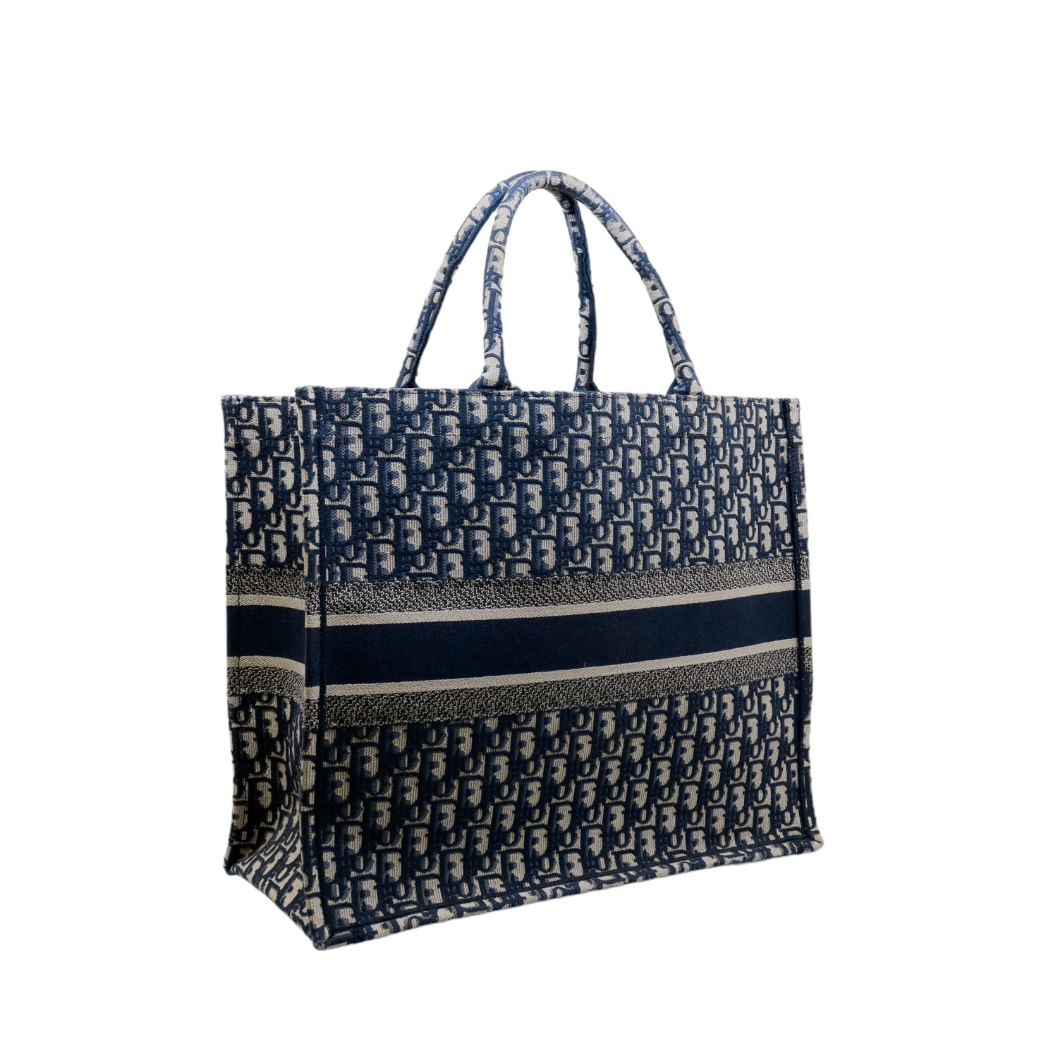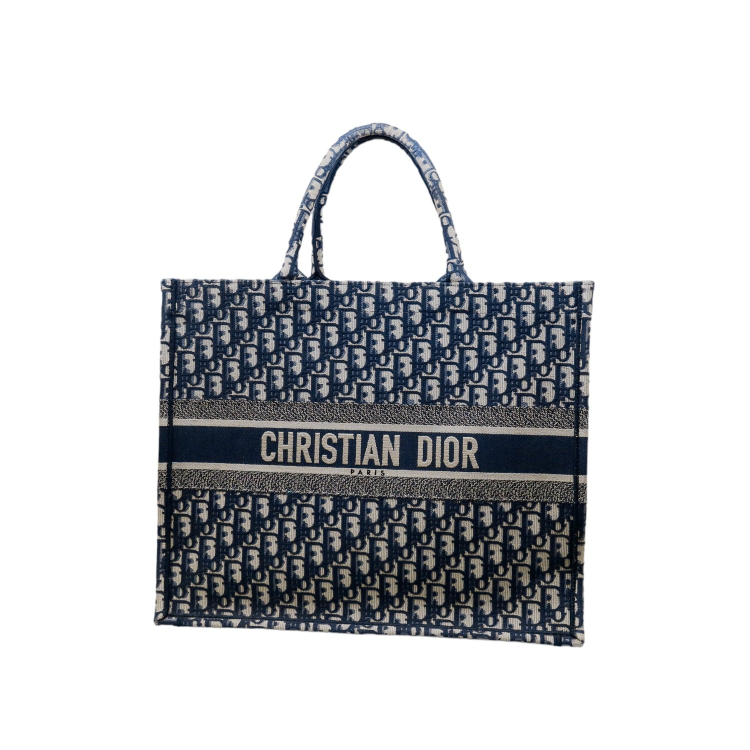 Bolso Christian Dior tipo Tote, confeccionado en lienzo blanco con negro con el monograma de la marca, poco sucia en asas, base y esquina.