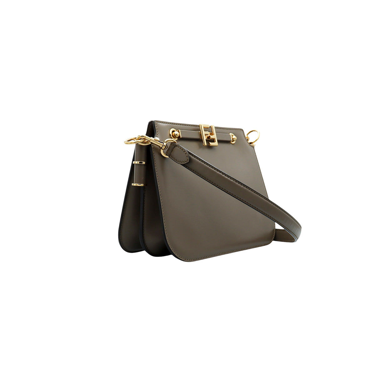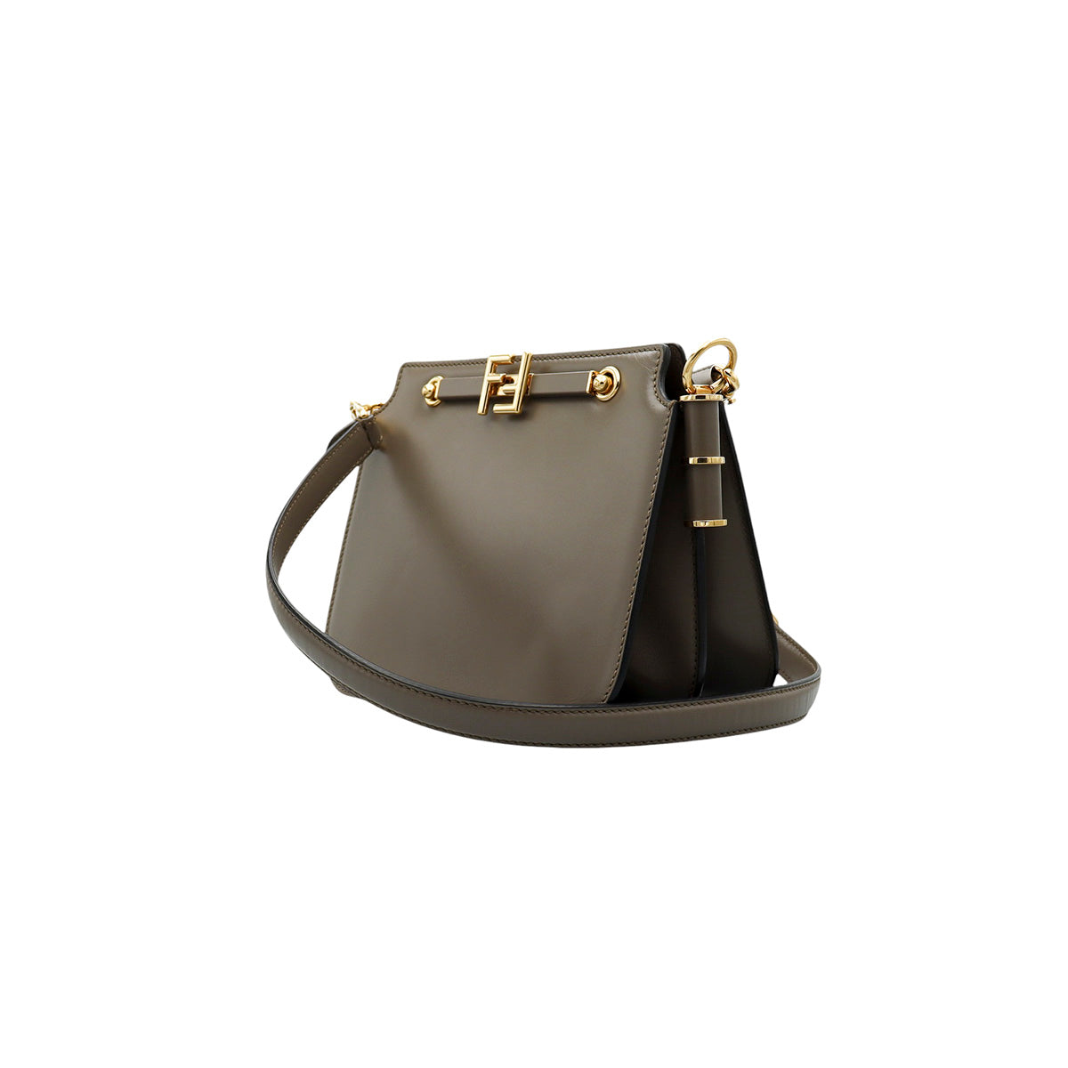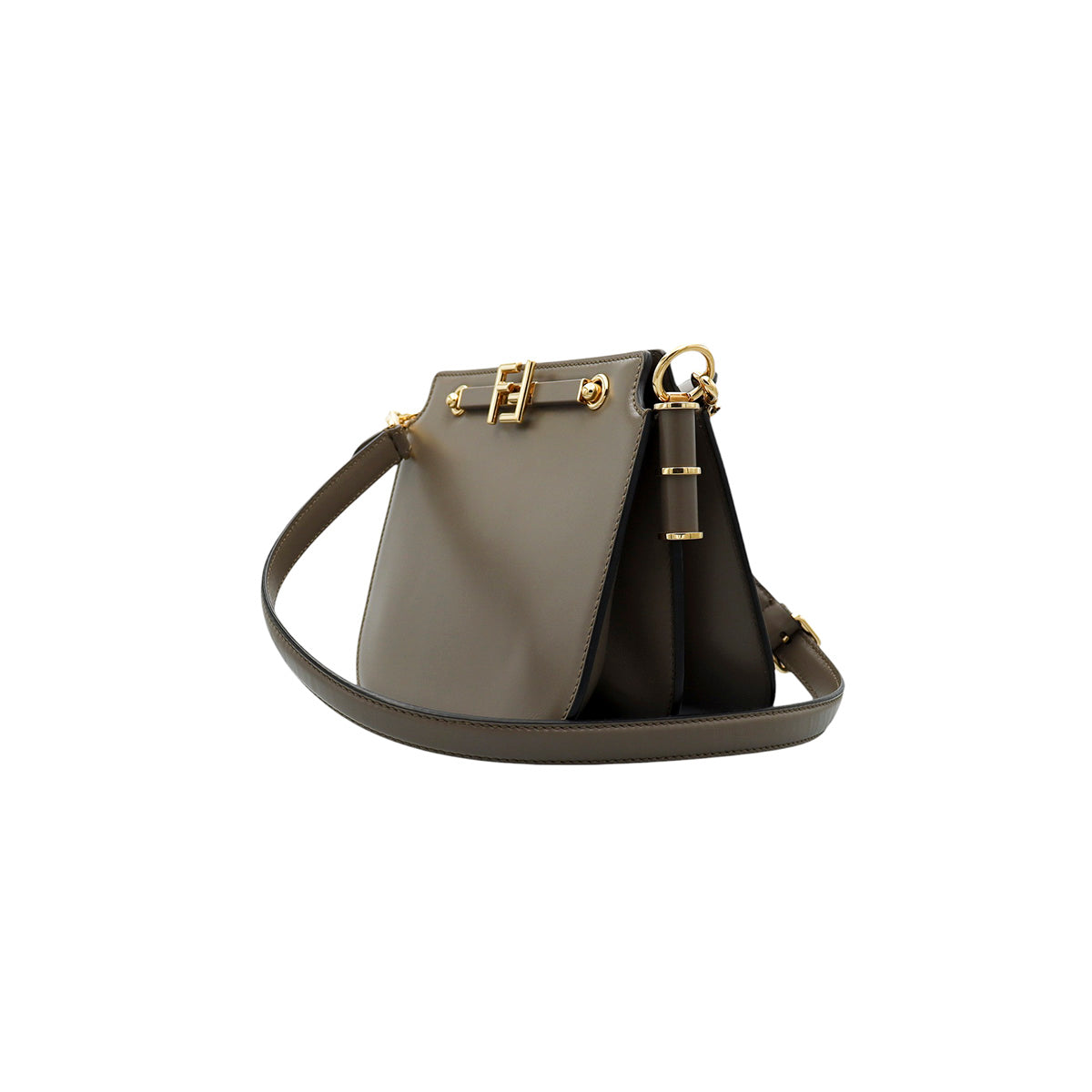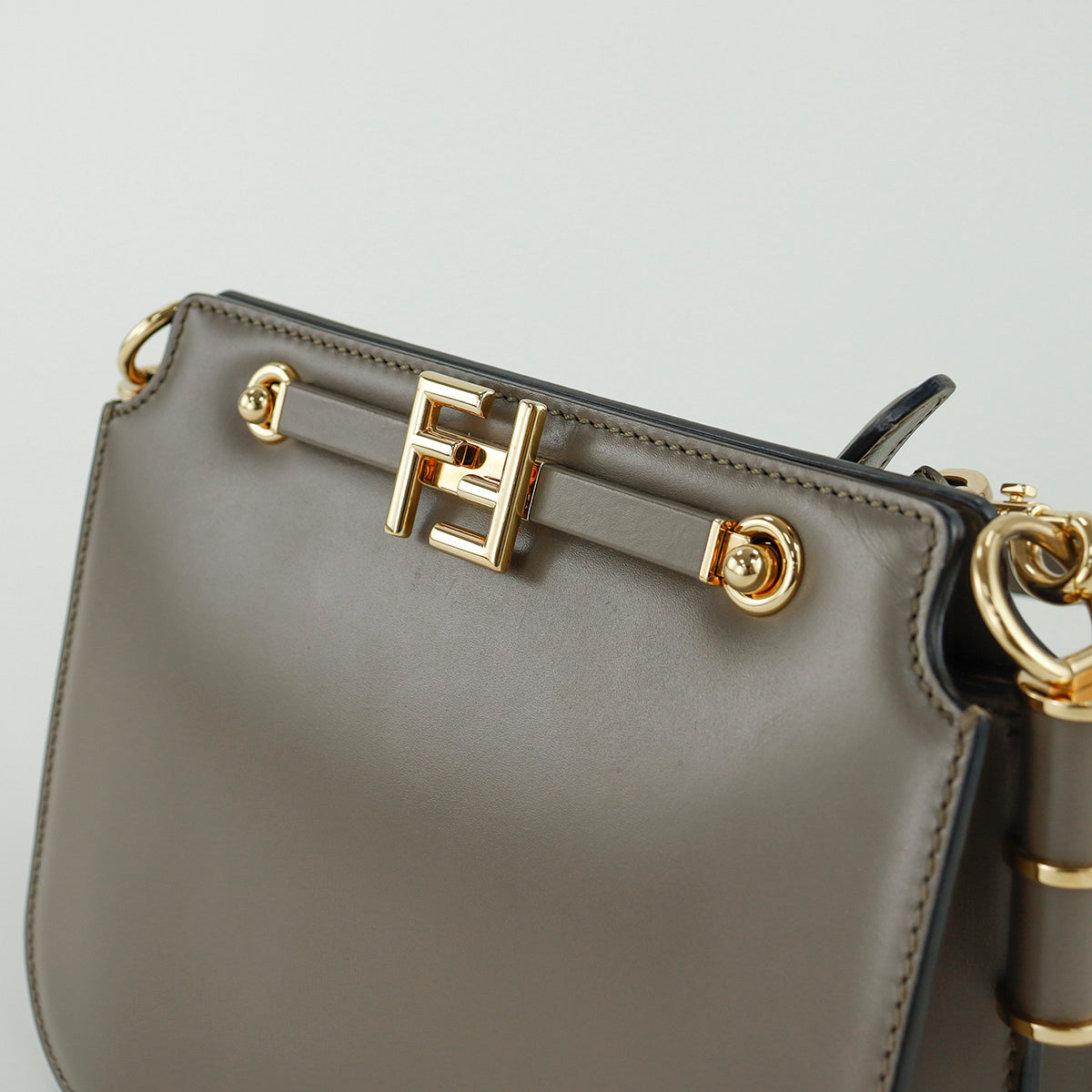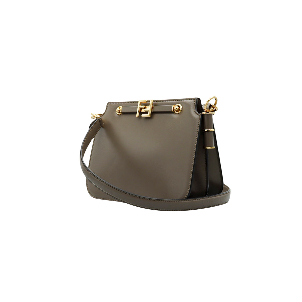 Bolso Fendi de la línea Touch, confeccionado en piel color arena con bandolera extraíble, superficie con detalles de uso, interior en cuero crudo y herrajes en color dorado.