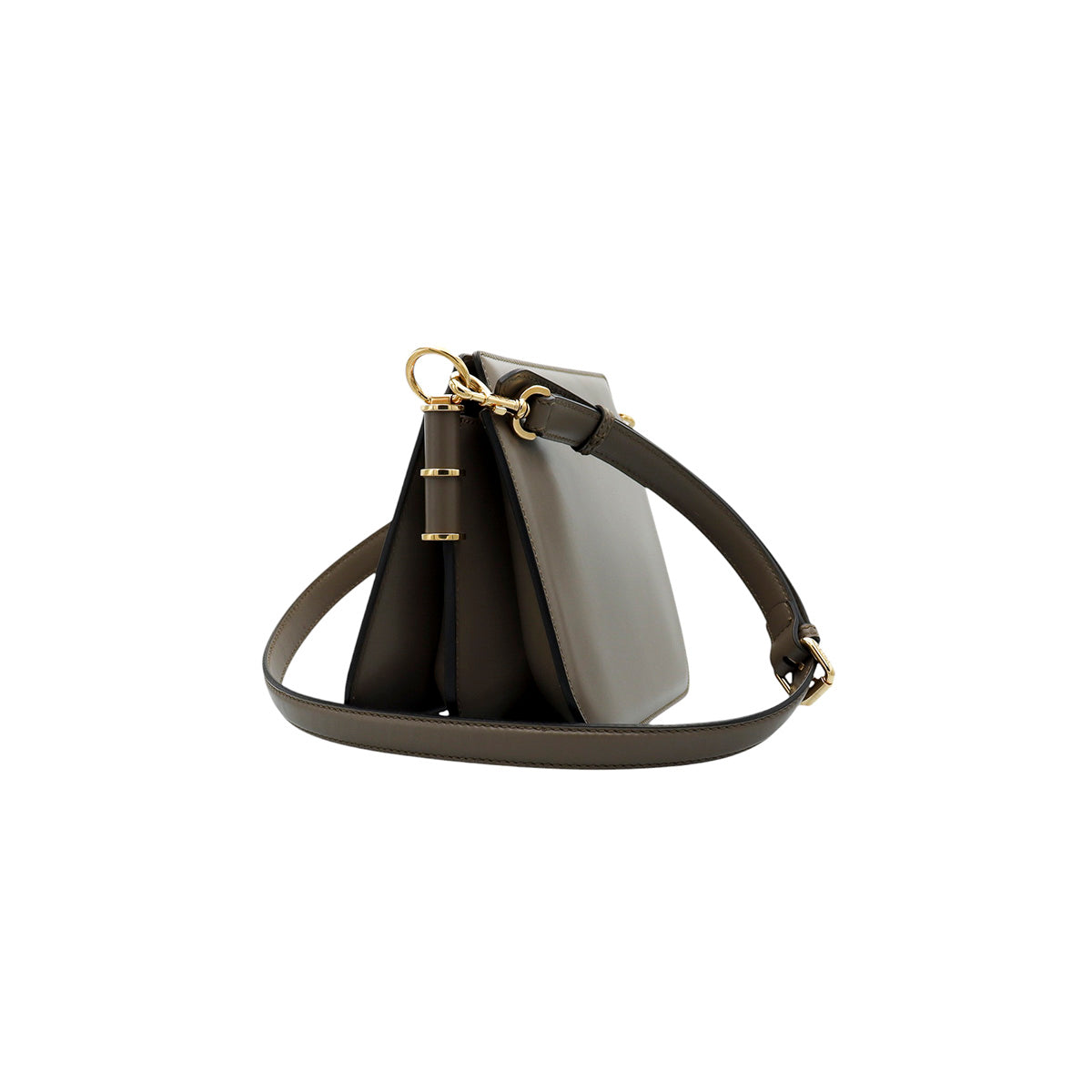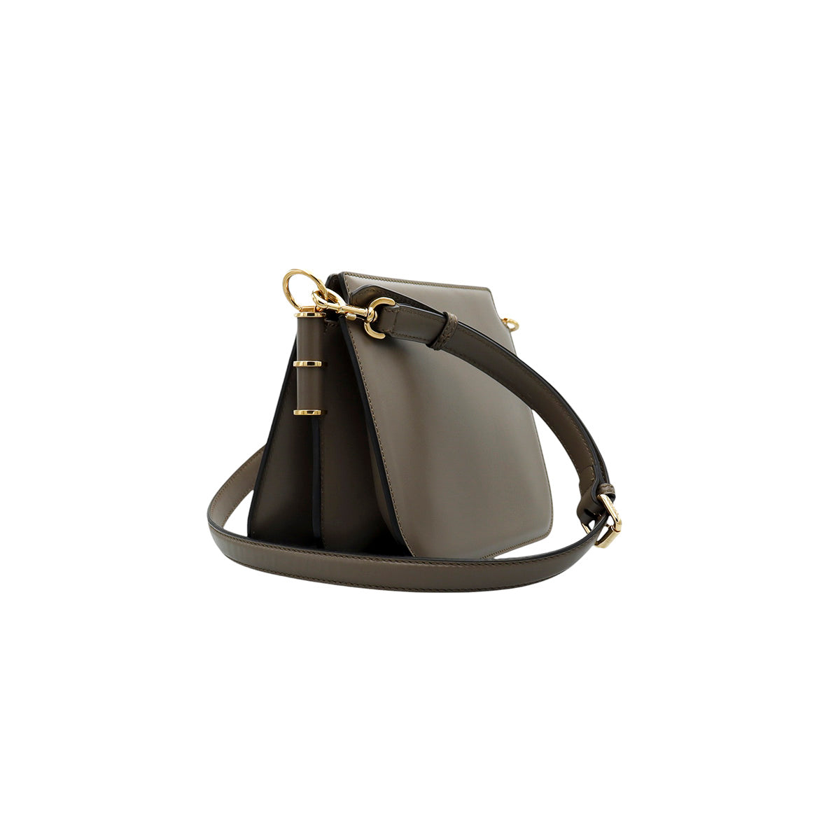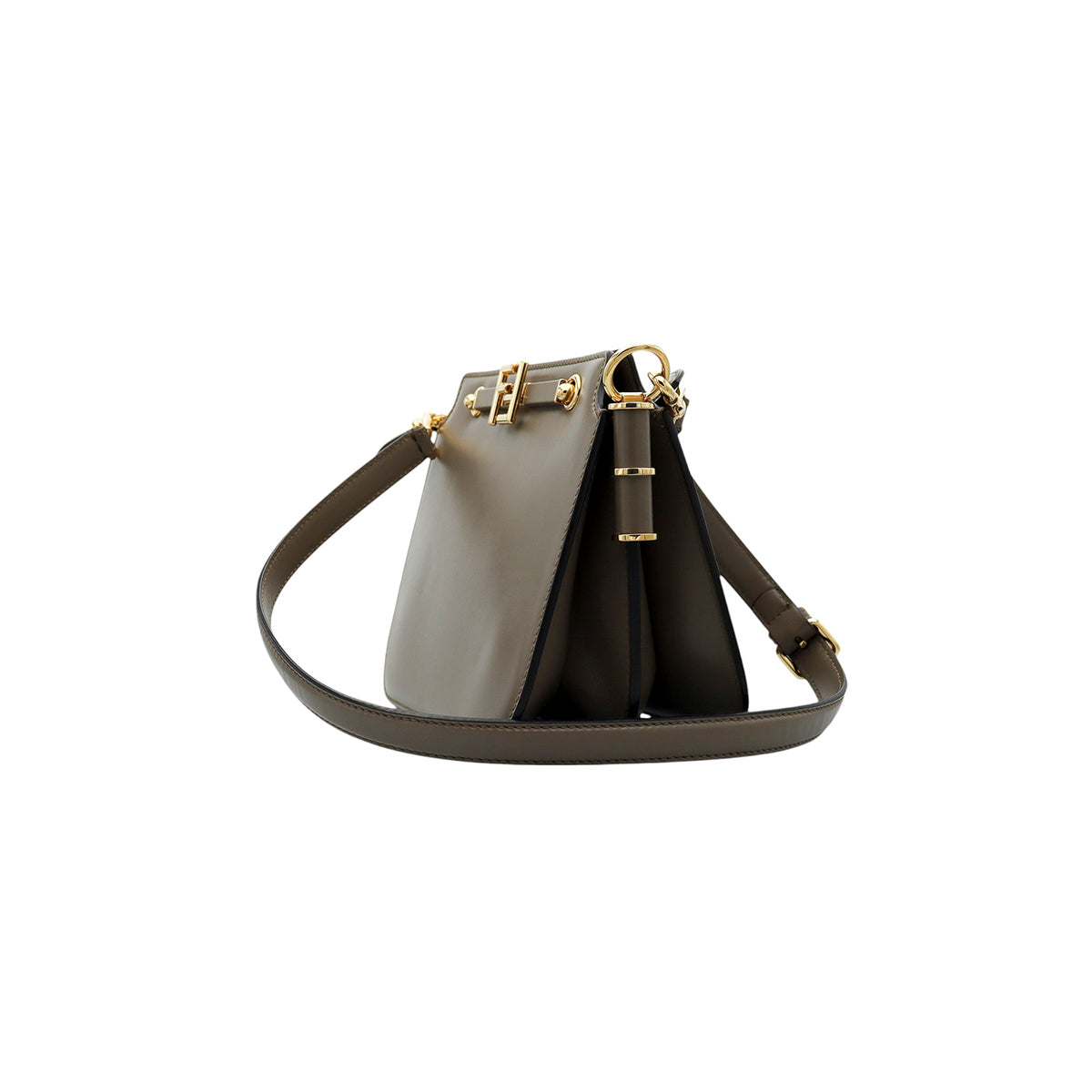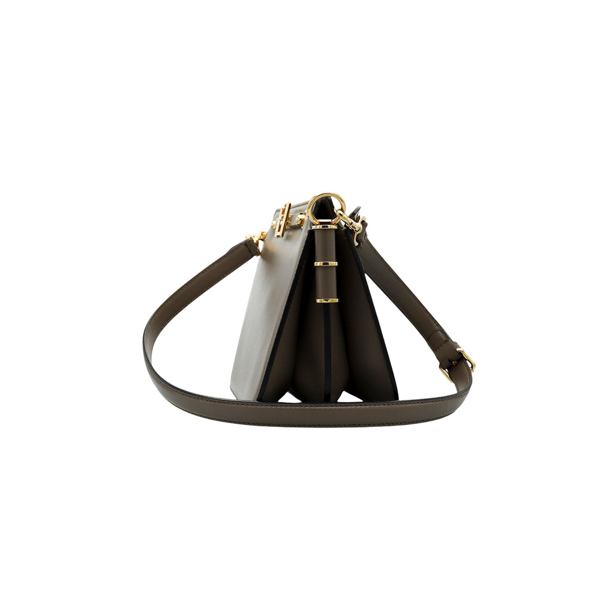 Bolso Fendi de la línea Touch, confeccionado en piel color arena con bandolera extraíble, superficie con detalles de uso, interior en cuero crudo y herrajes en color dorado.