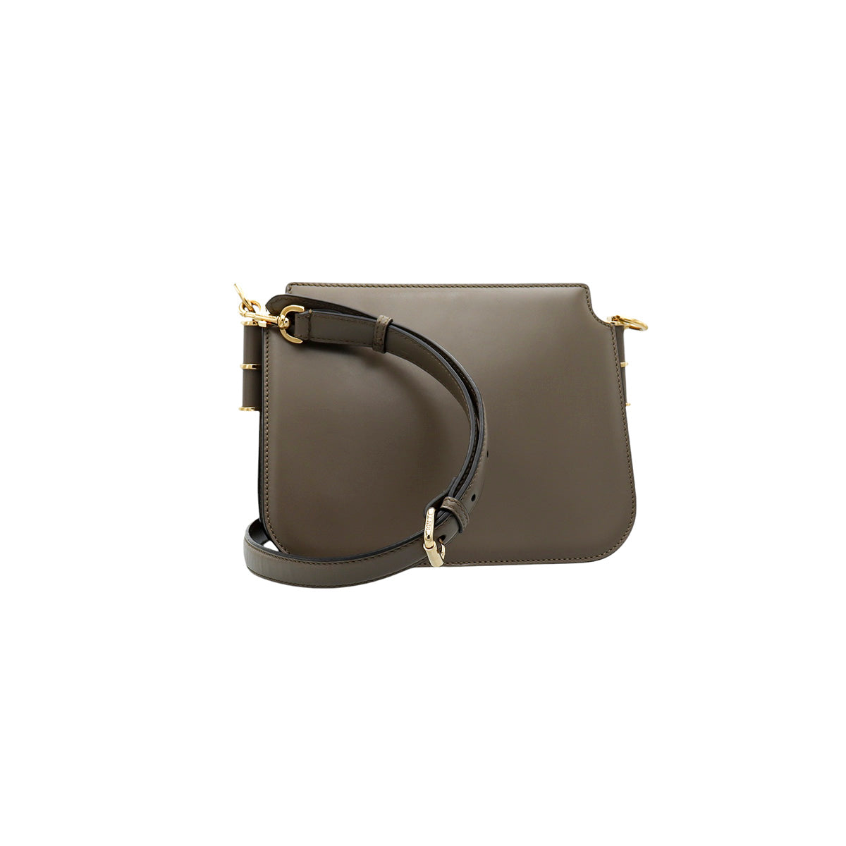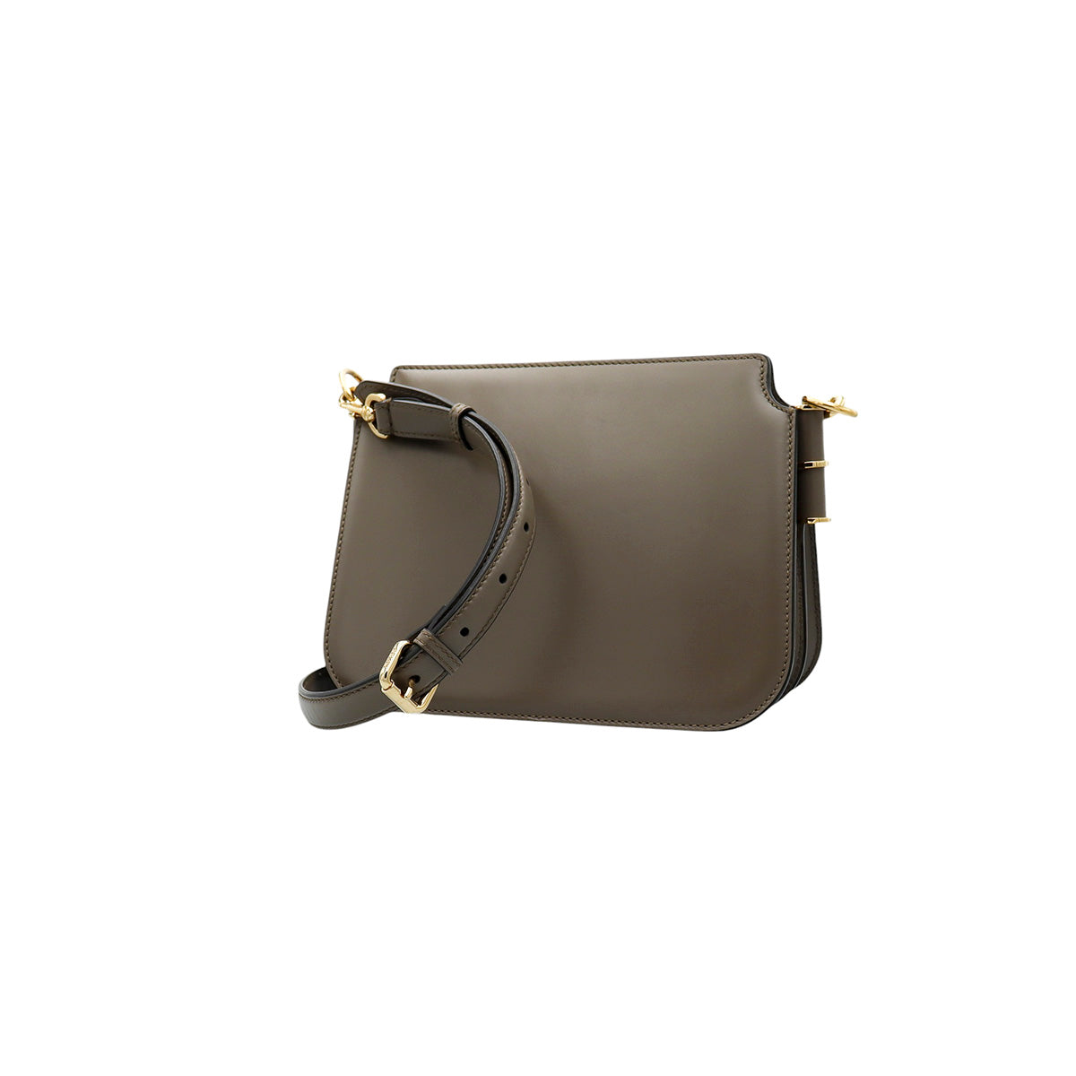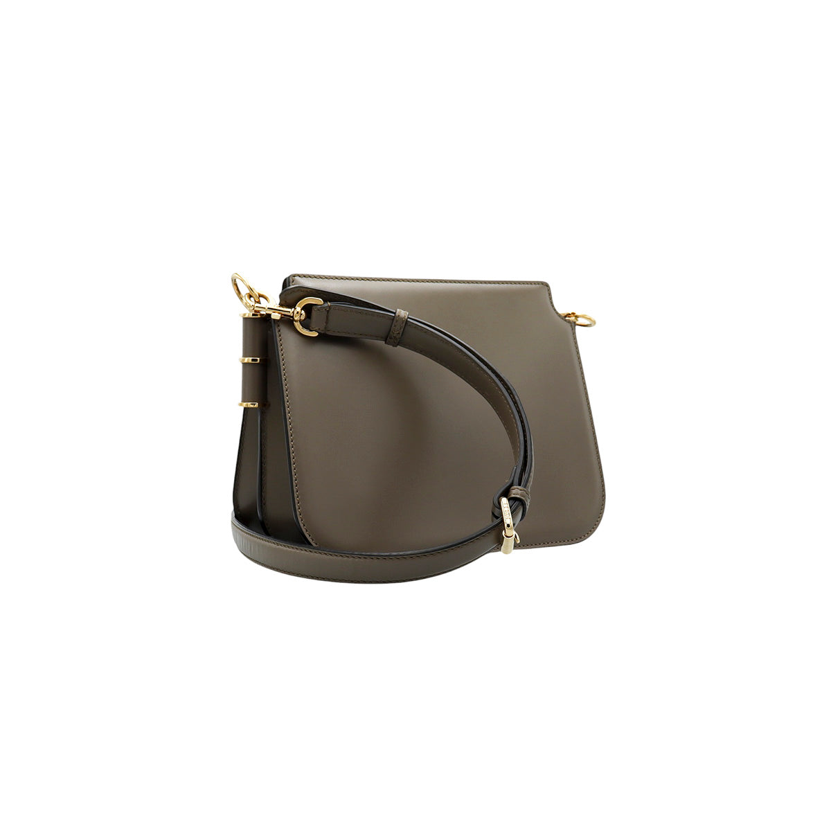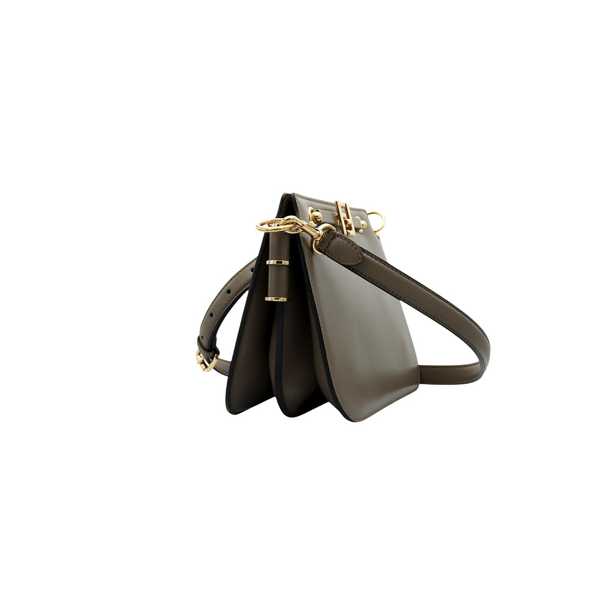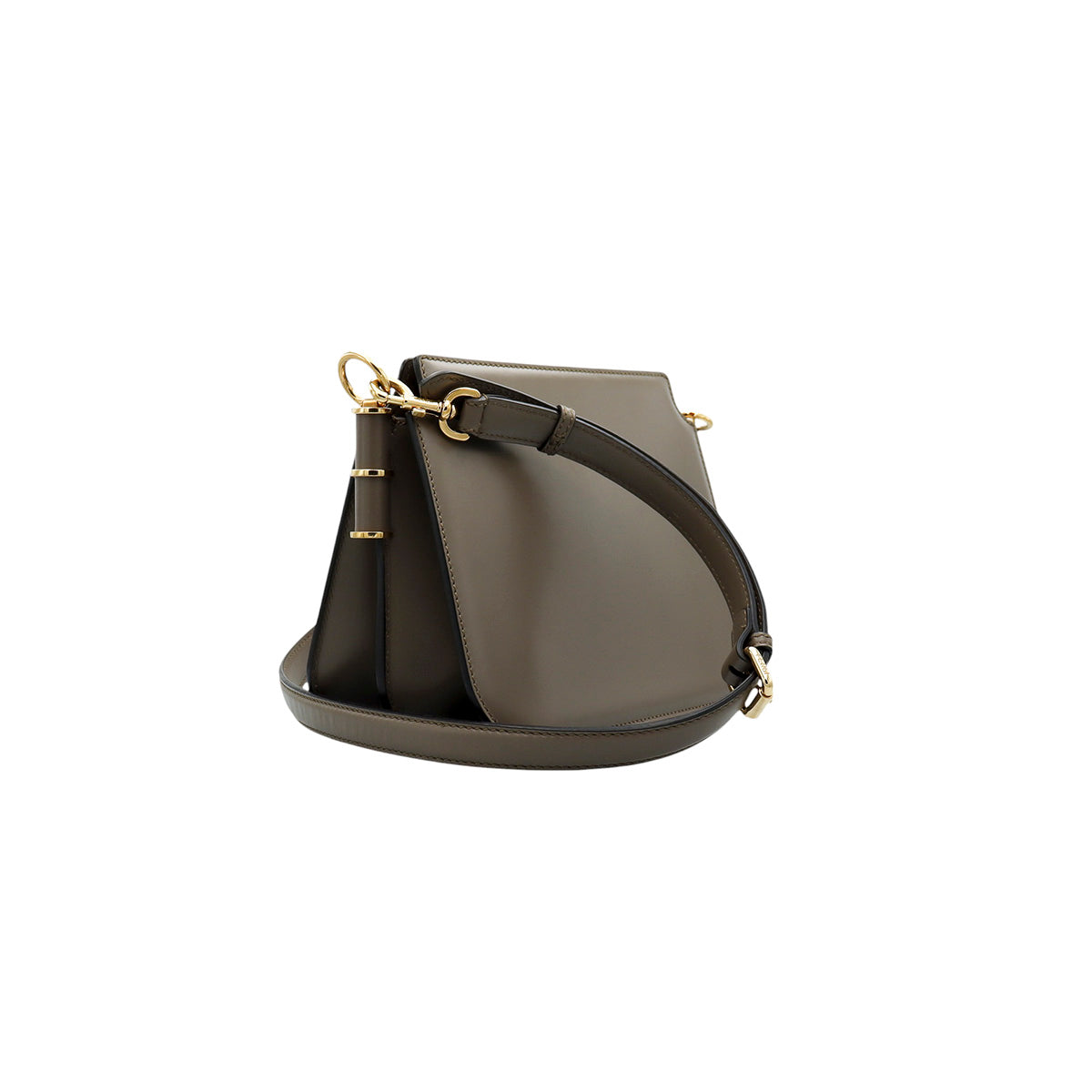 Bolso Fendi de la línea Touch, confeccionado en piel color arena con bandolera extraíble, superficie con detalles de uso, interior en cuero crudo y herrajes en color dorado.