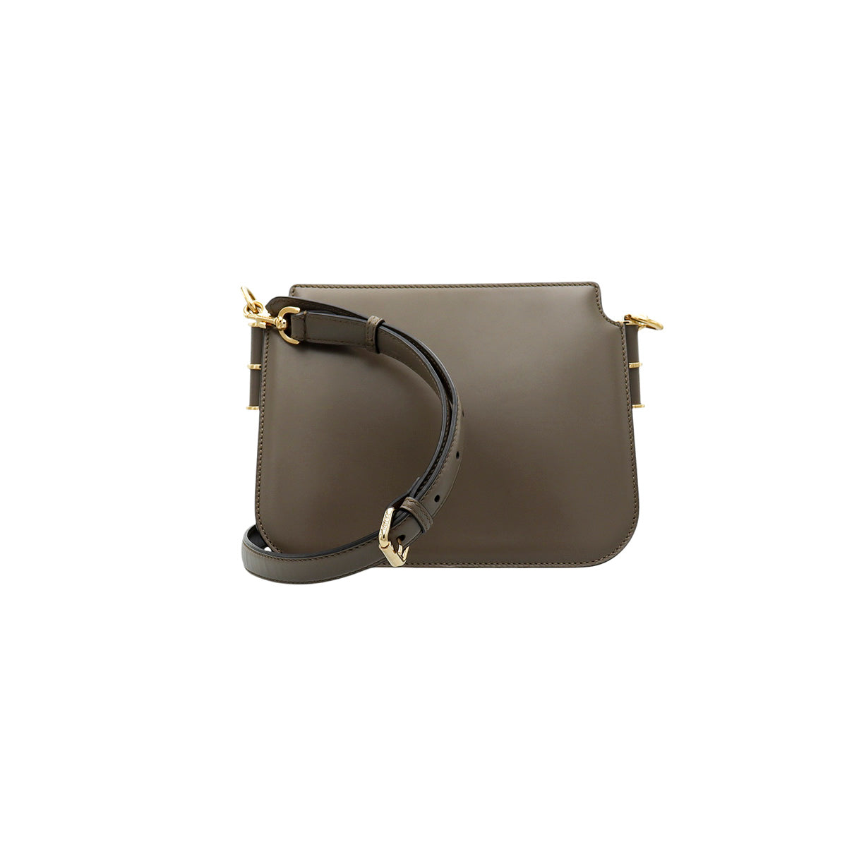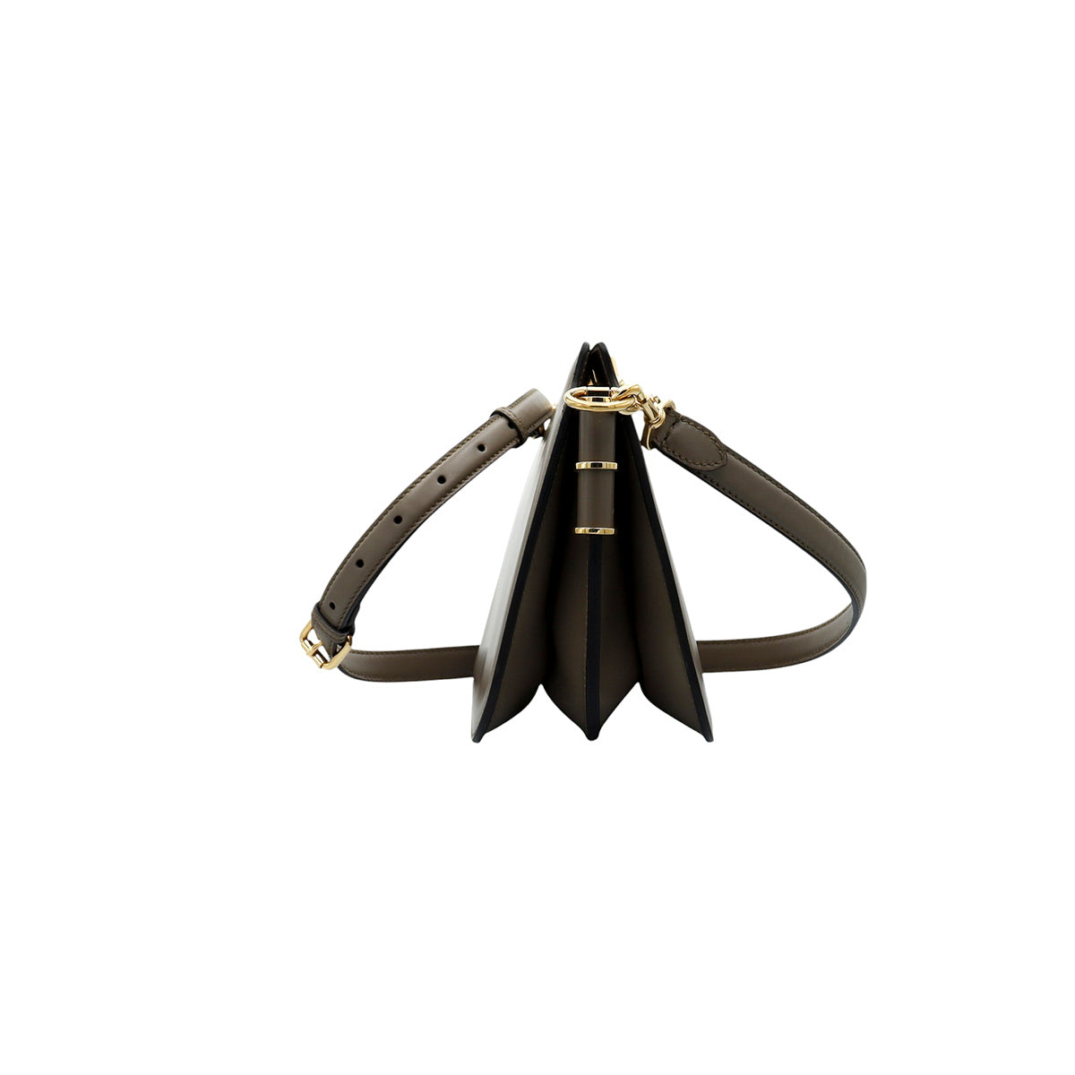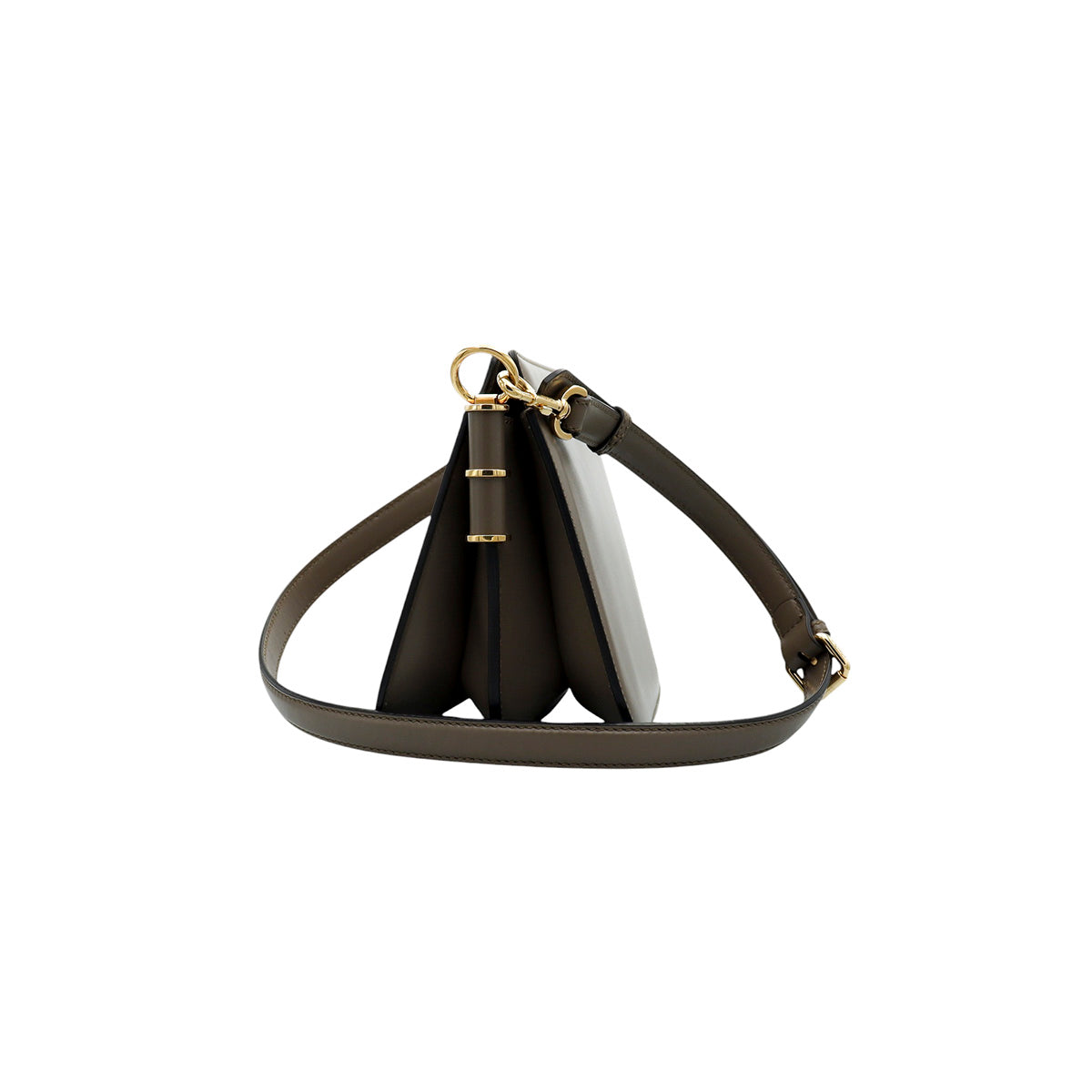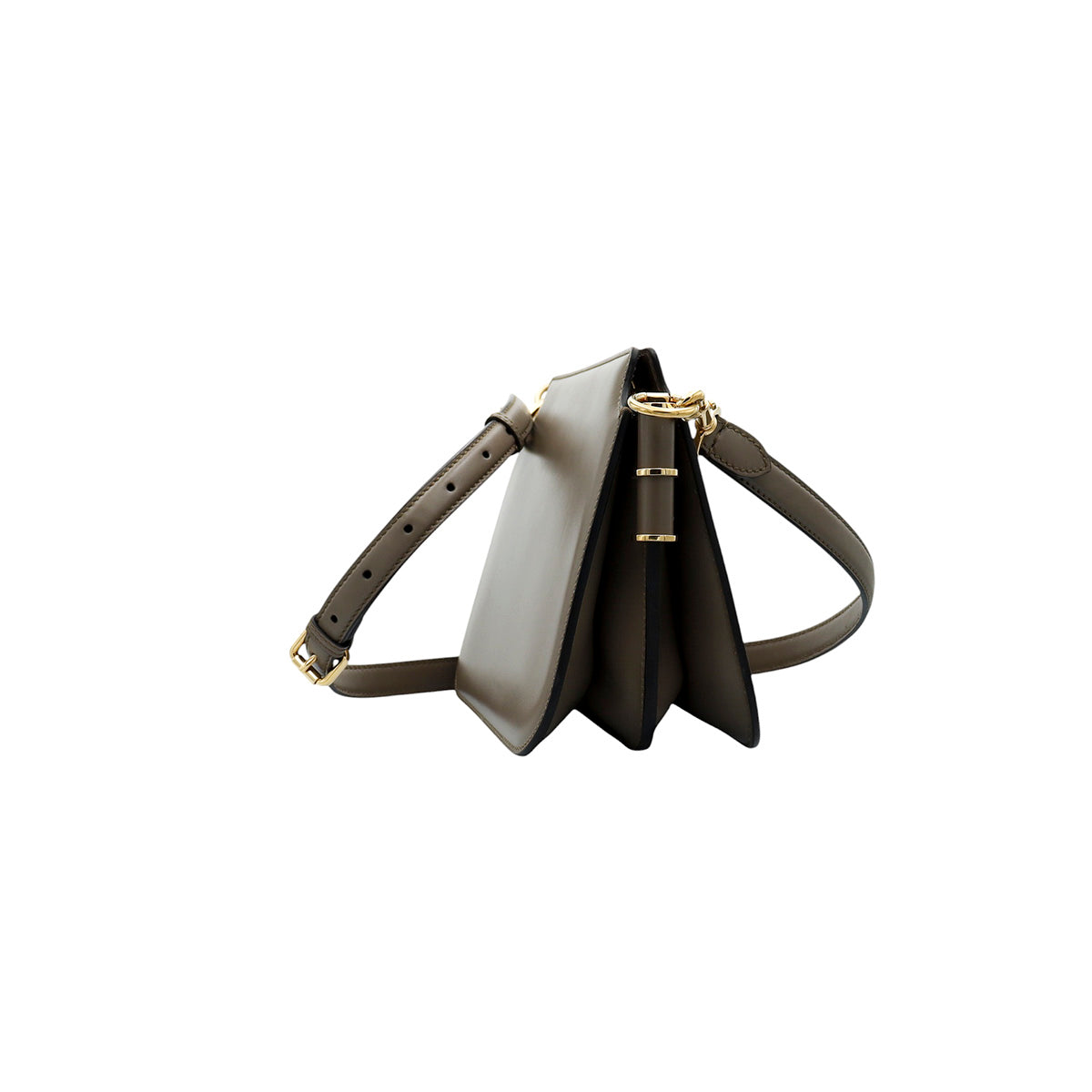 Bolso Fendi de la línea Touch, confeccionado en piel color arena con bandolera extraíble, superficie con detalles de uso, interior en cuero crudo y herrajes en color dorado.