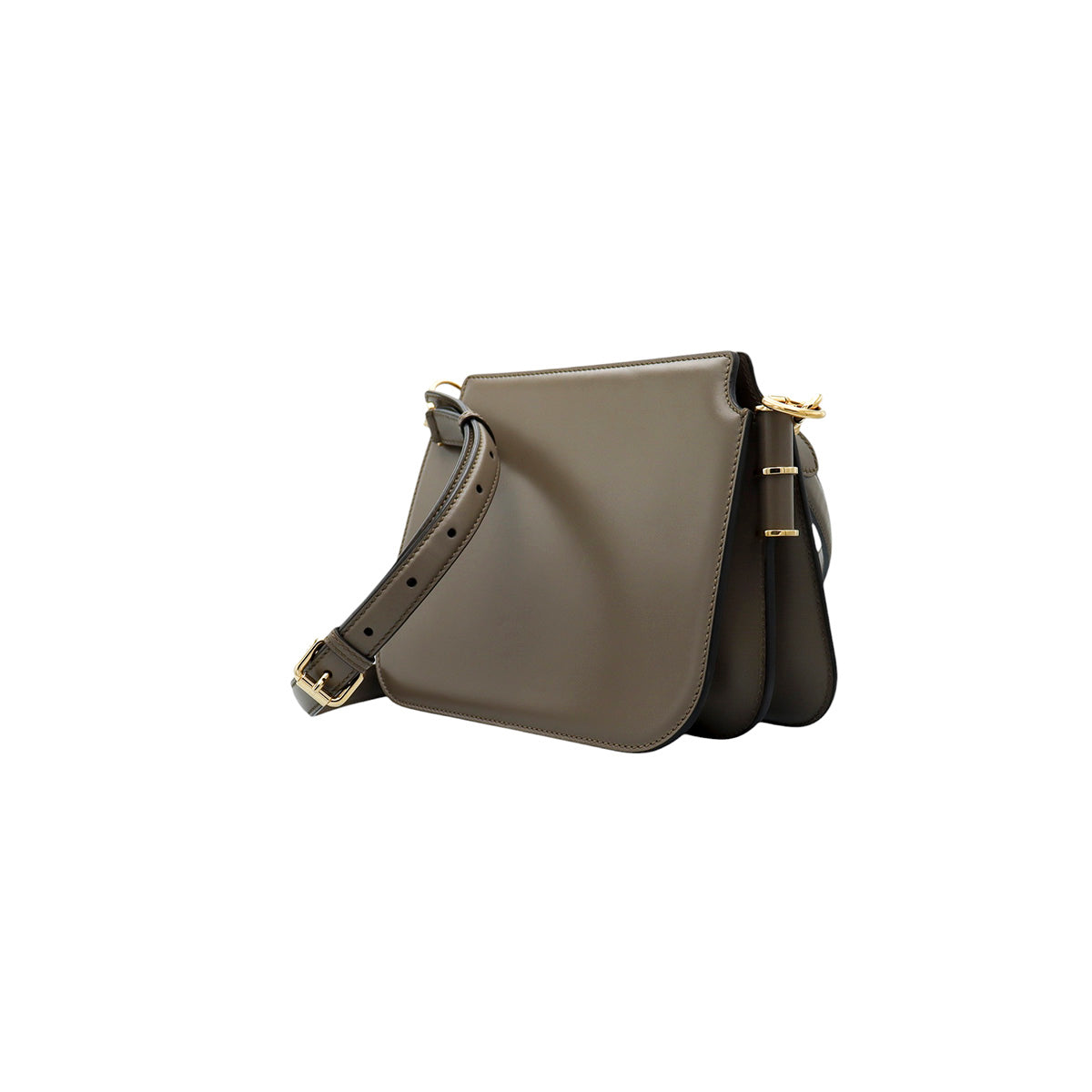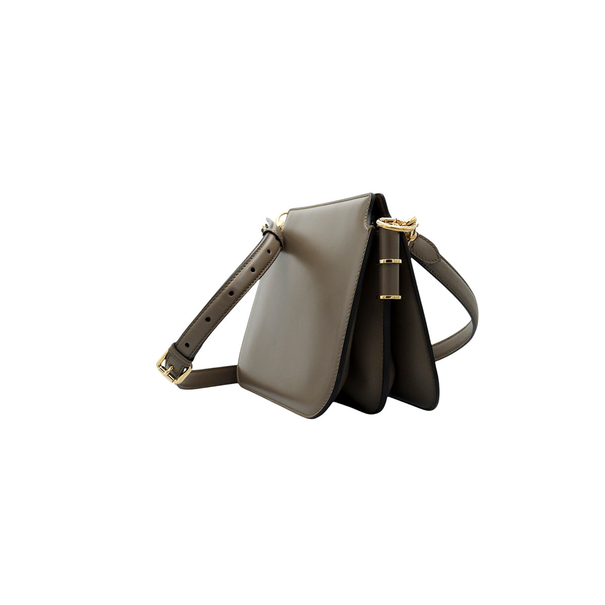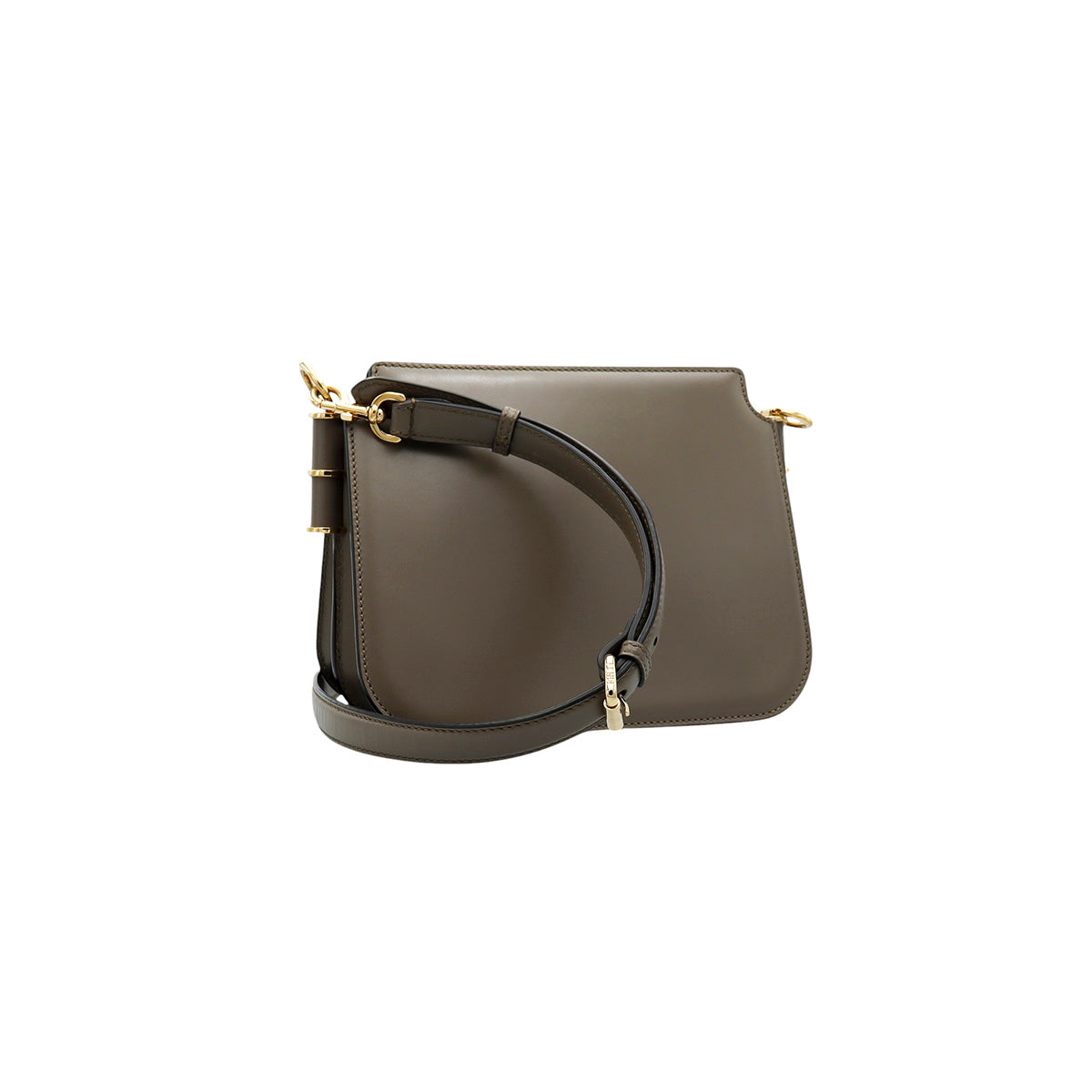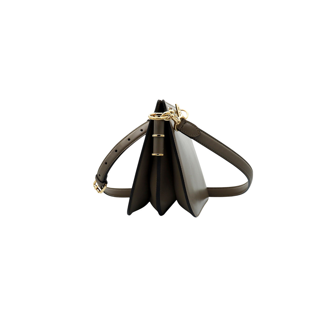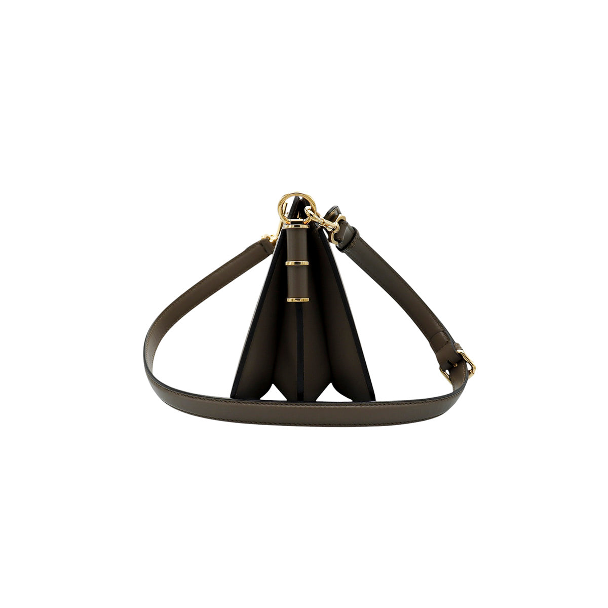 Bolso Fendi de la línea Touch, confeccionado en piel color arena con bandolera extraíble, superficie con detalles de uso, interior en cuero crudo y herrajes en color dorado.
