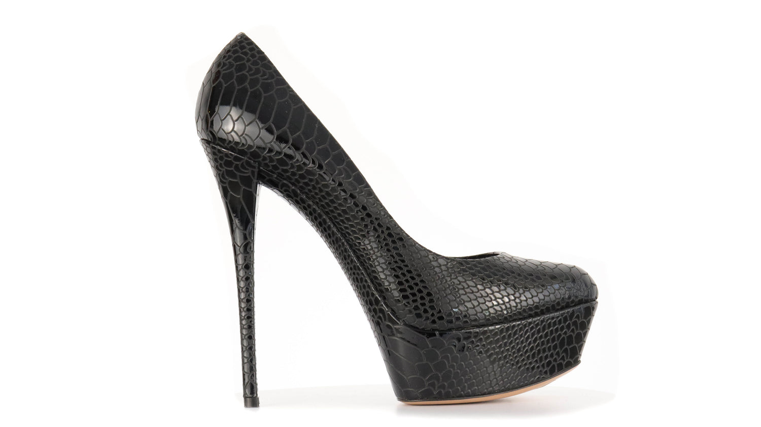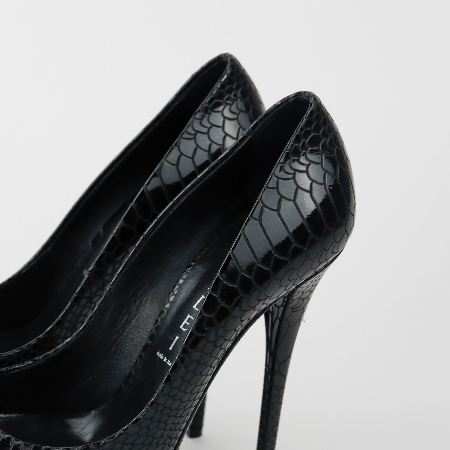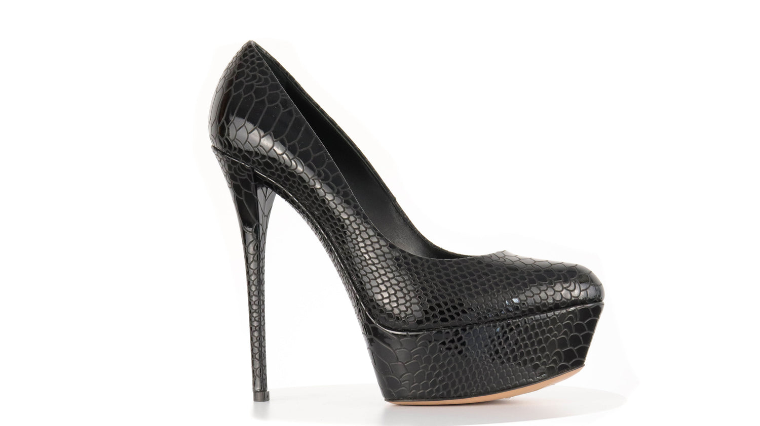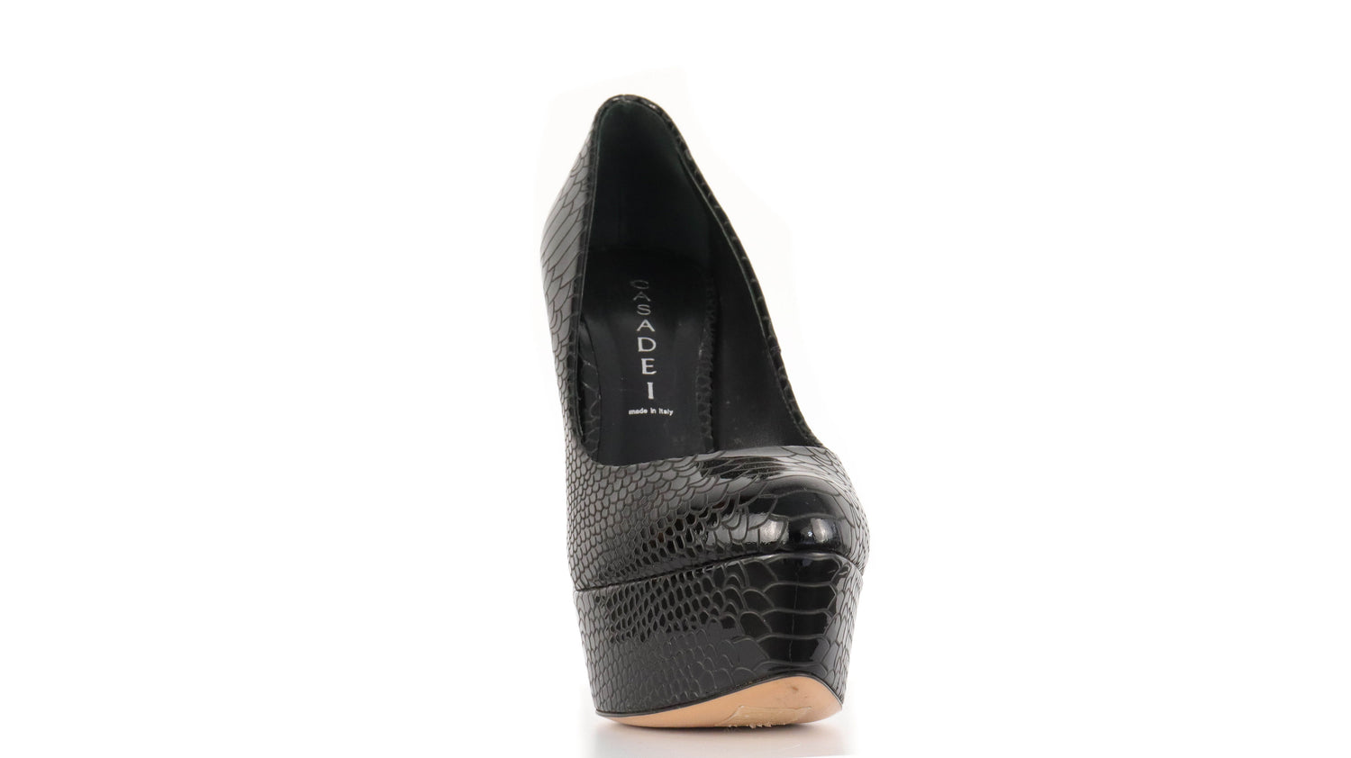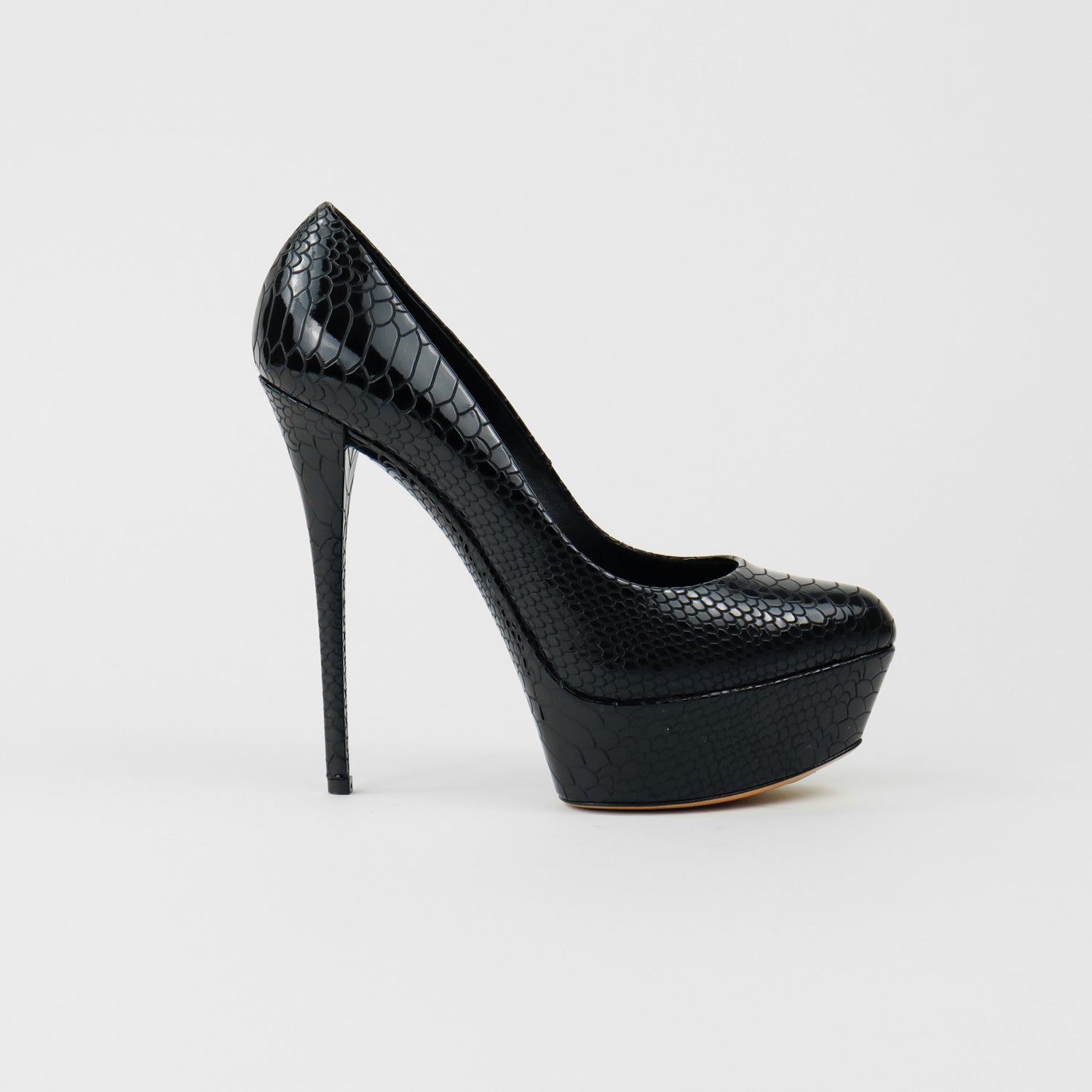 Tacones Casadei, confeccionados en piel color negro, puntera redonda cerrada, con detalles de uso.