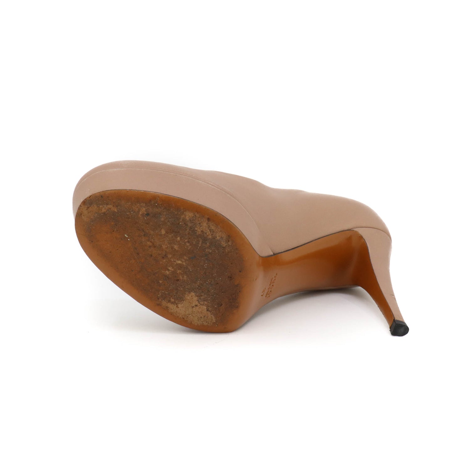 Zapatos de salón Gucci, confeccionados en piel color nude, puntera redonda cerrada, estilo clásico con un tacón tipo stiletto y plataforma.