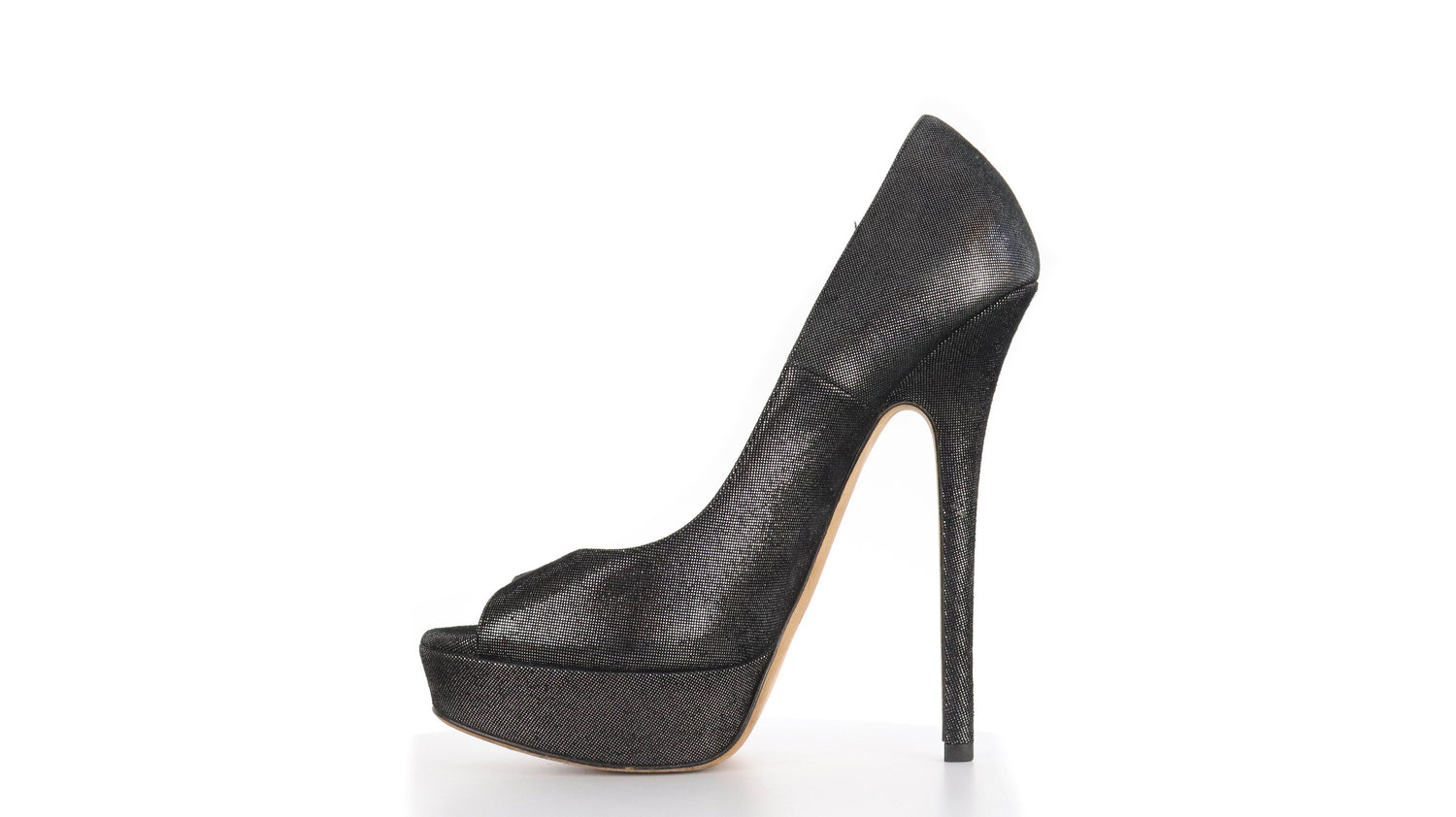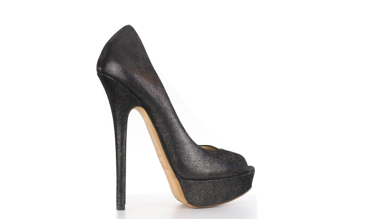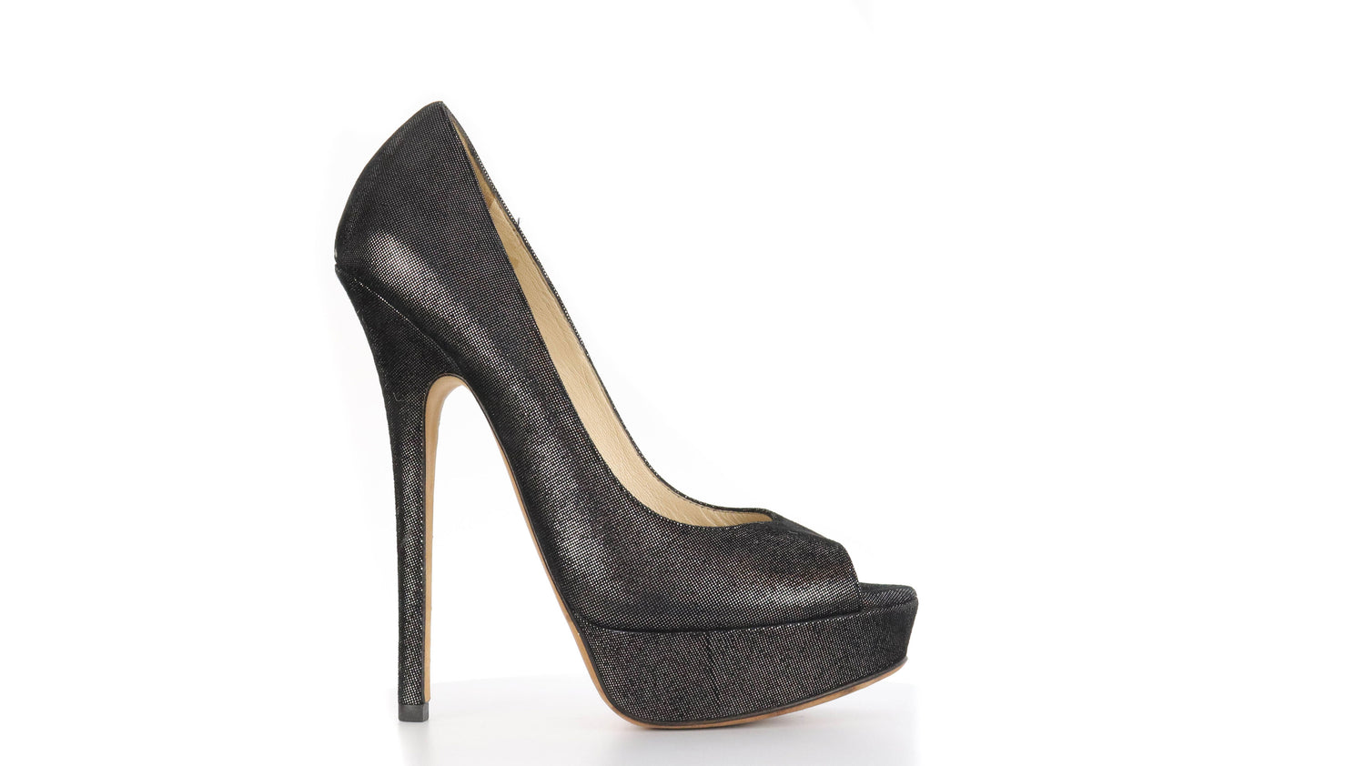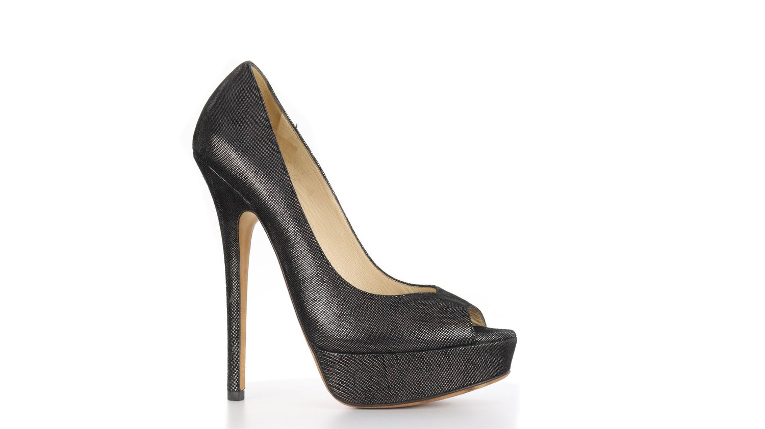 Tacones Jimmy Choo, elaborados en tela color negro y efecto metálico.