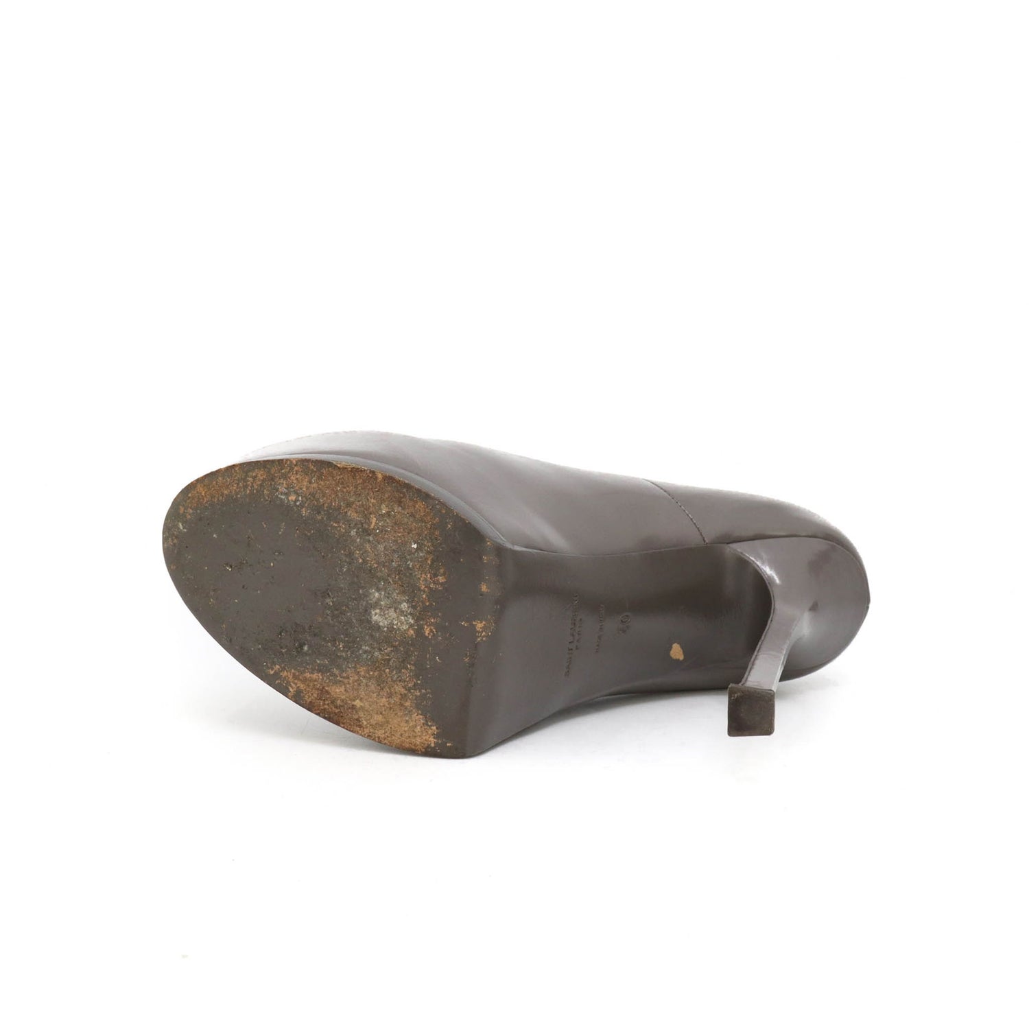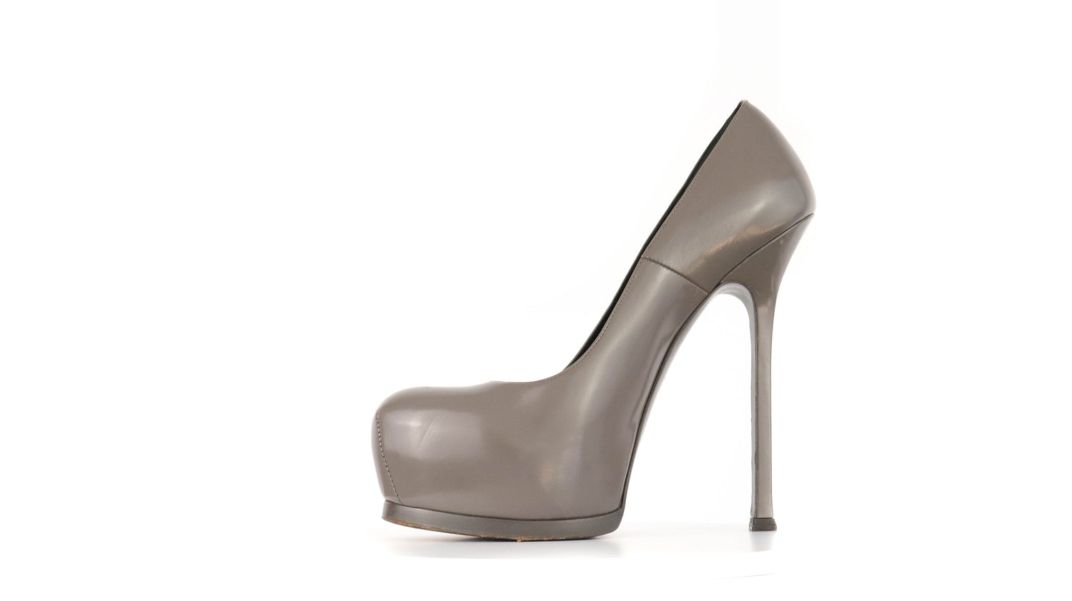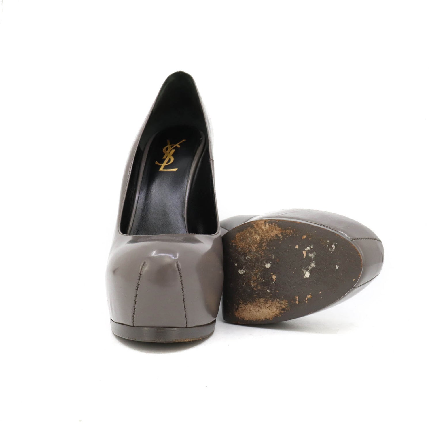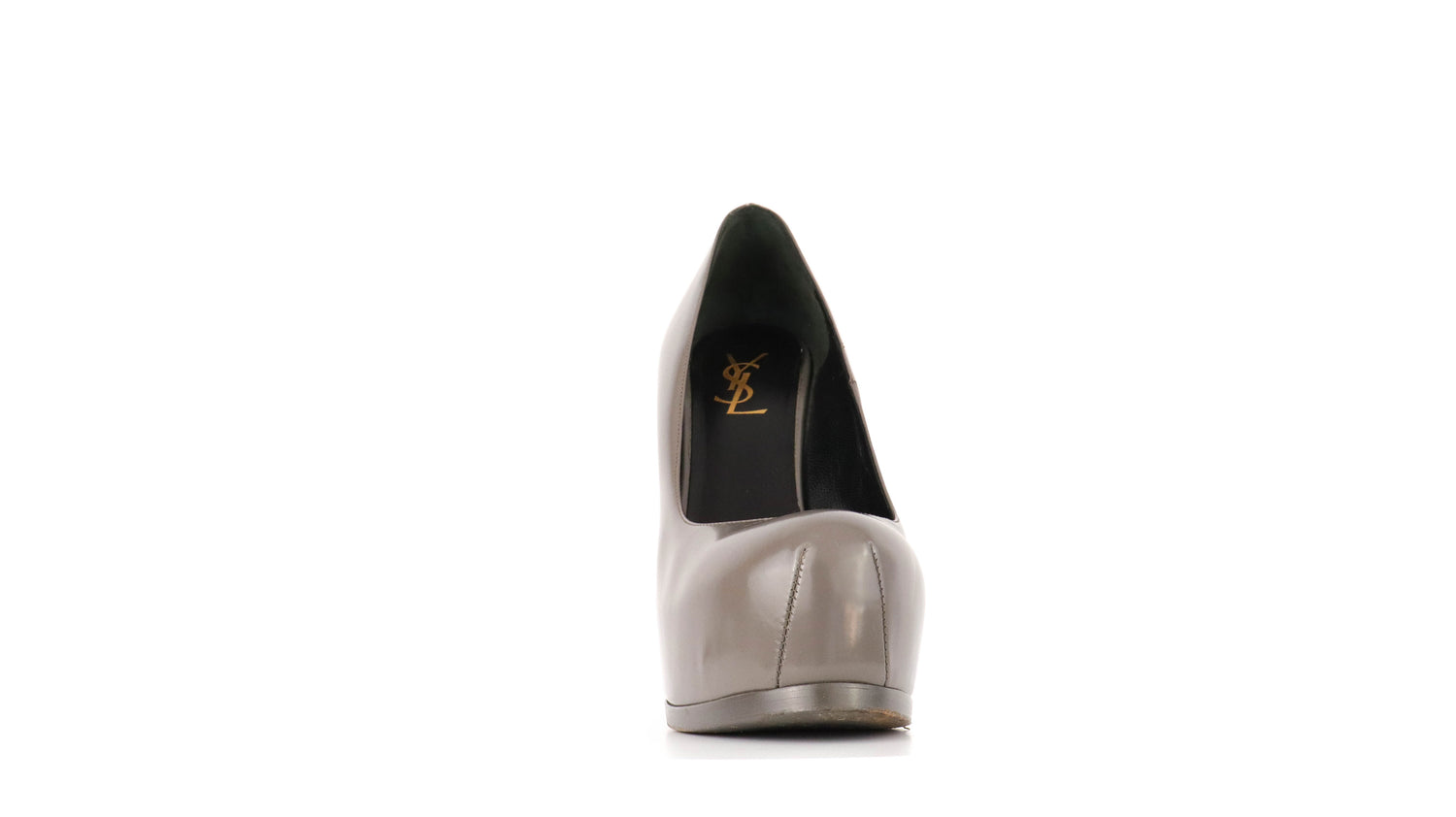 Tacones Yves Saint Laurent Tribute, elaborados en cuero color gris mate, con estilo slip-on, cuenta con tacón alto.
