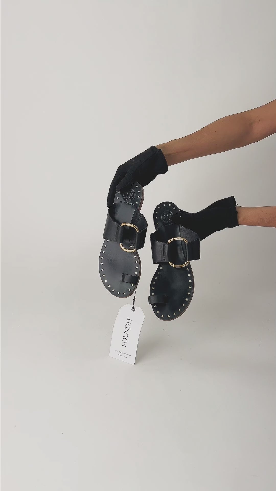 Sandalias Tory Burch Ravello Studded, con argolla dorada y estoperoles decorativos. Un diseño moderno y elegante con estilo distintivo.