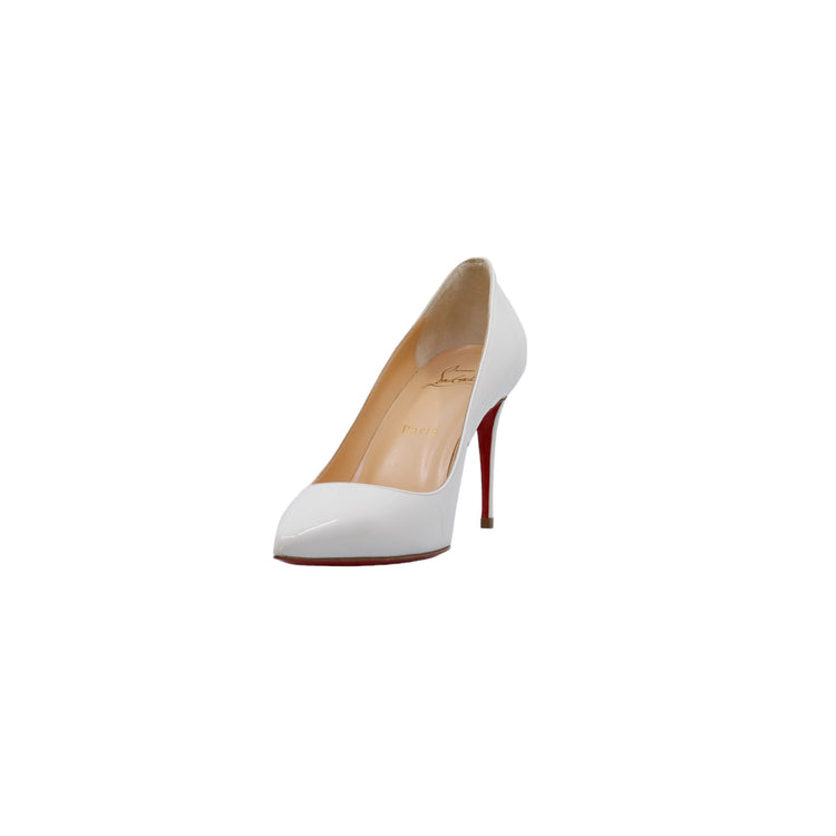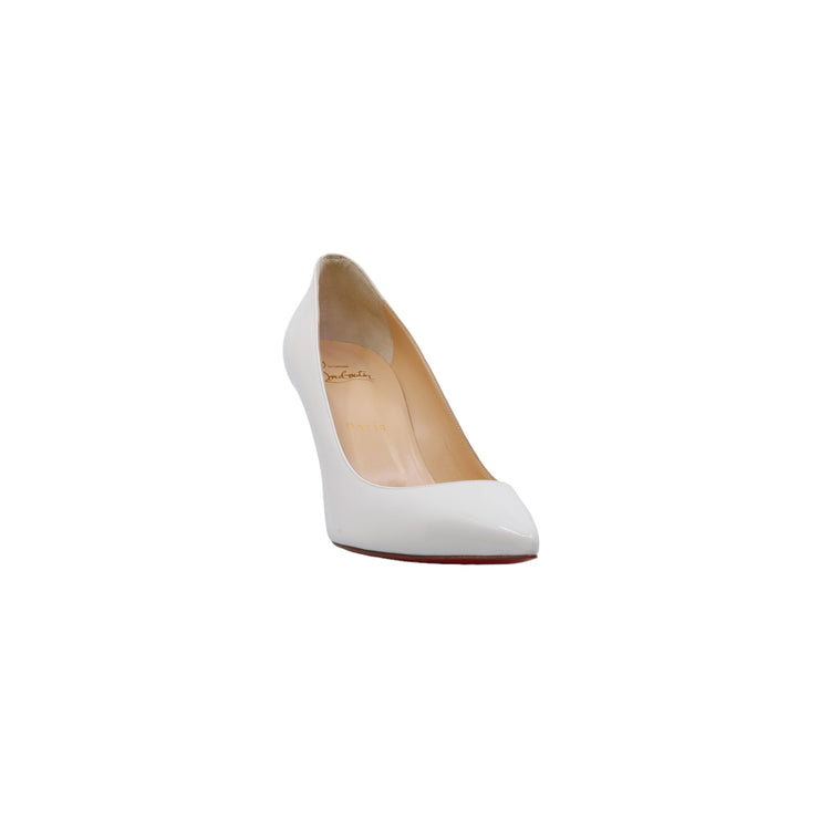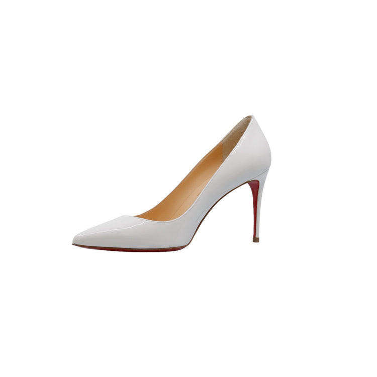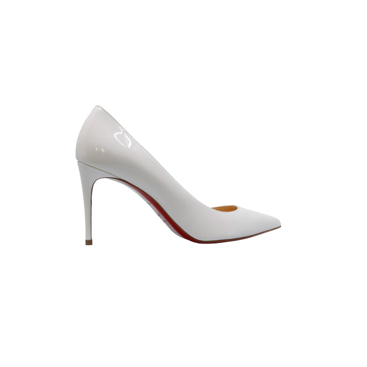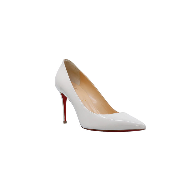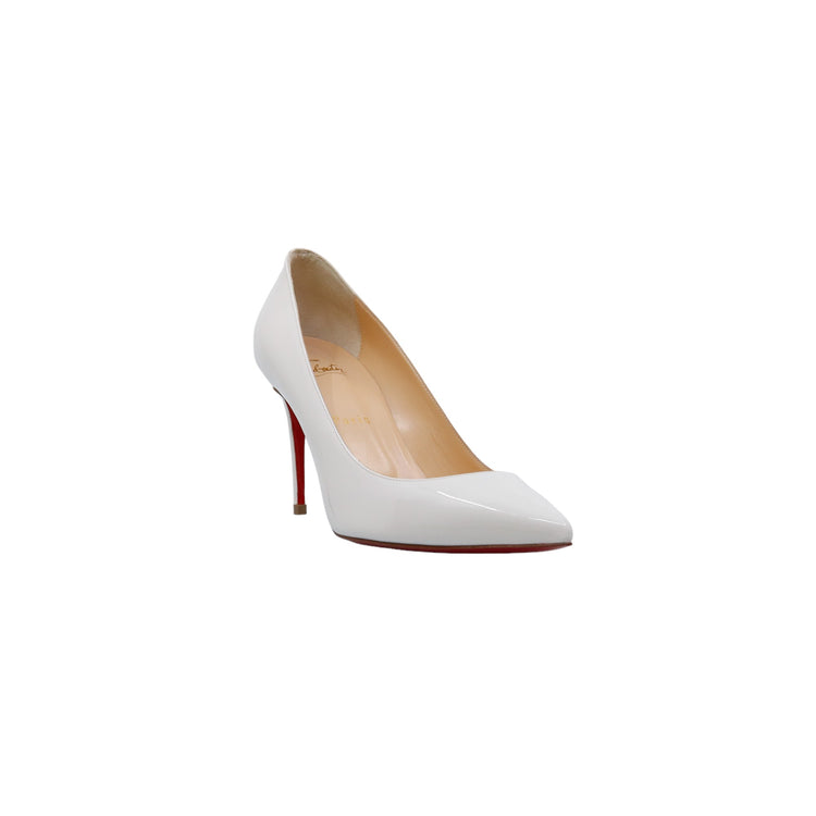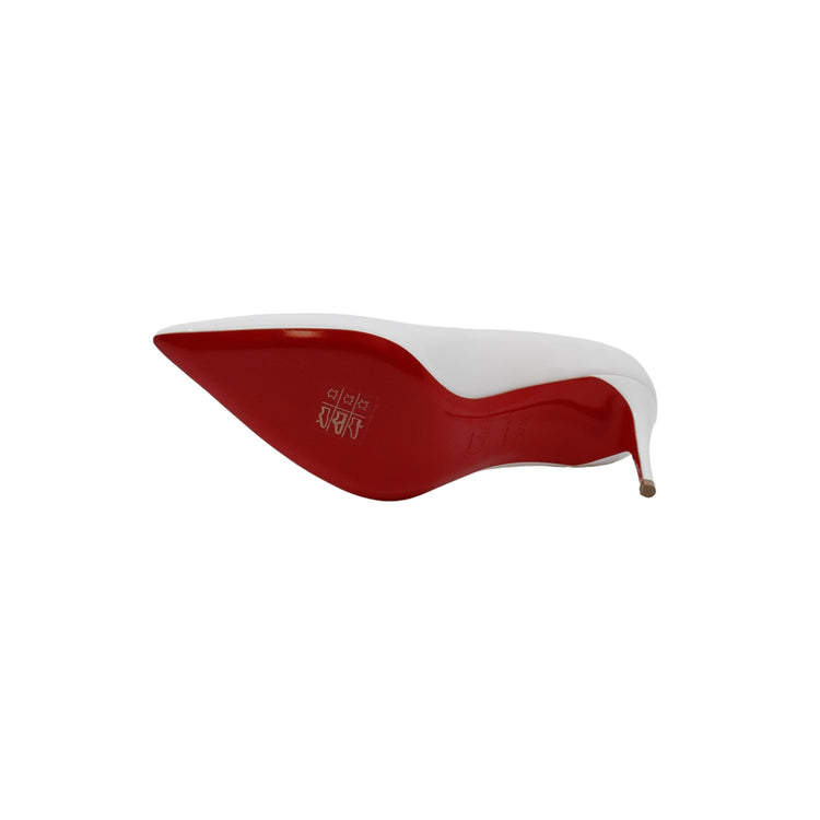 Zapatos de tacón marca Christian Louboutin Kate, confeccionados en piel color blanco y puntas en V.