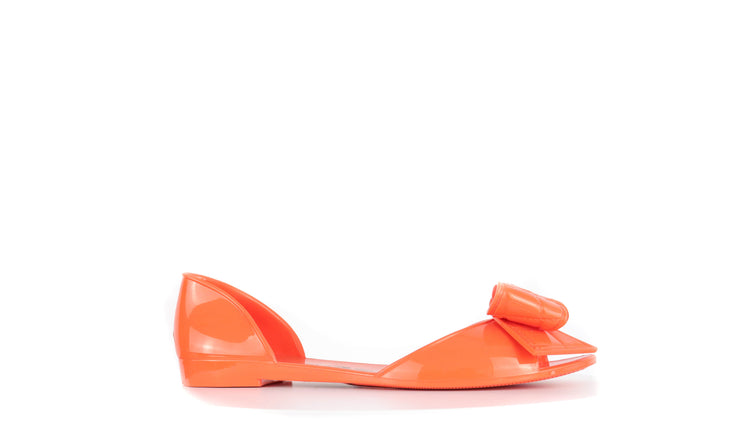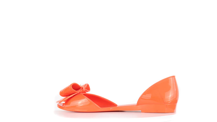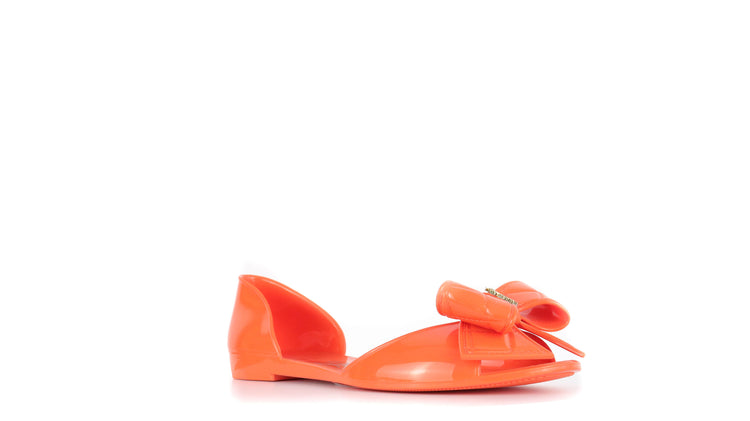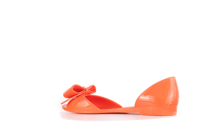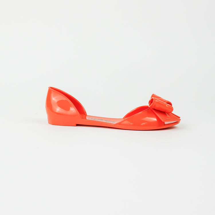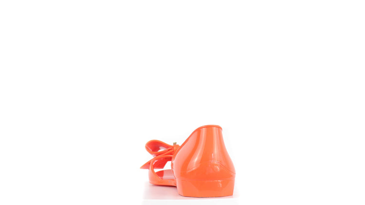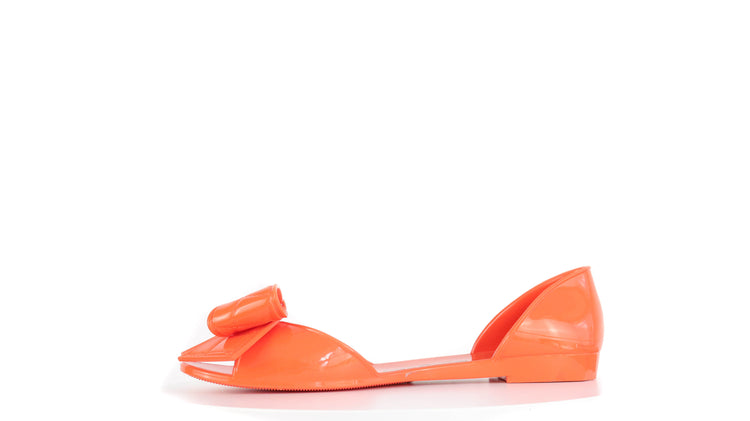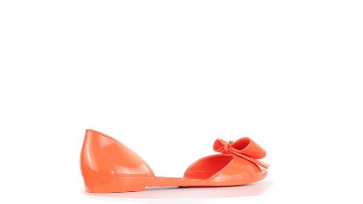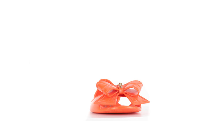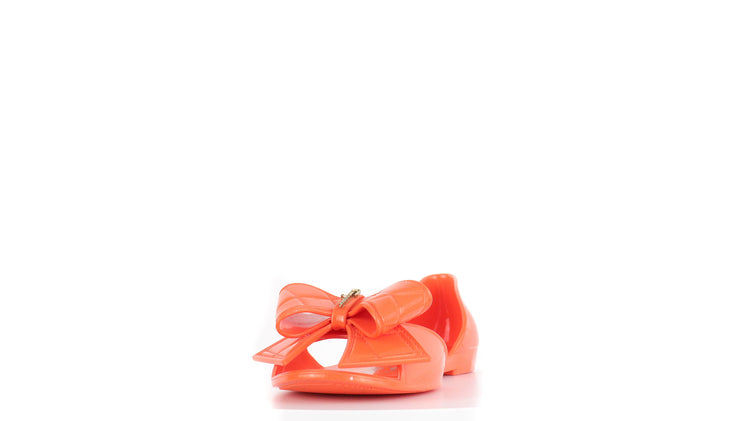 Sandalias Salvatore Ferragamo, elaboradas en material pvc color naranja, style slip on, con puntera abierta finamente decorada con un moño rematado con la marca en pieza metálica.