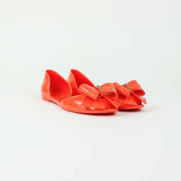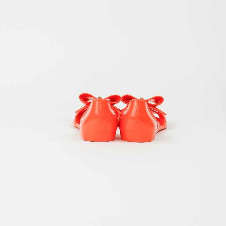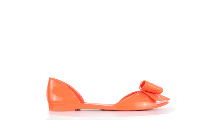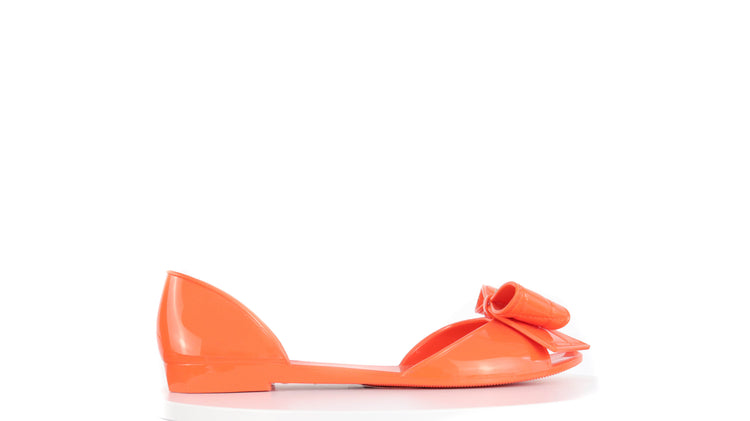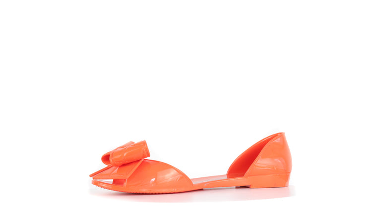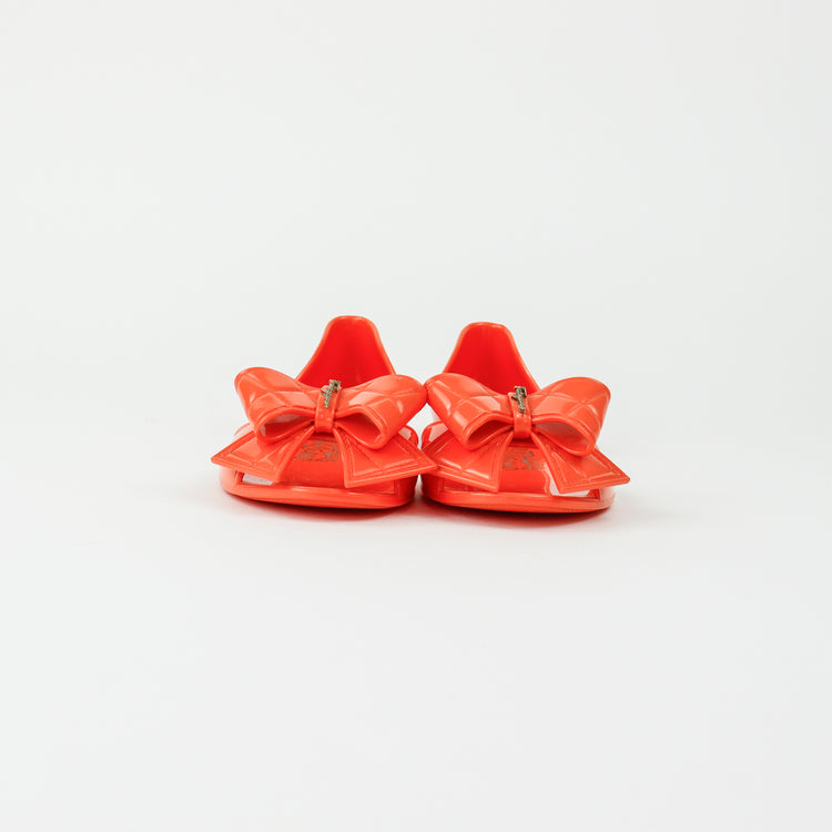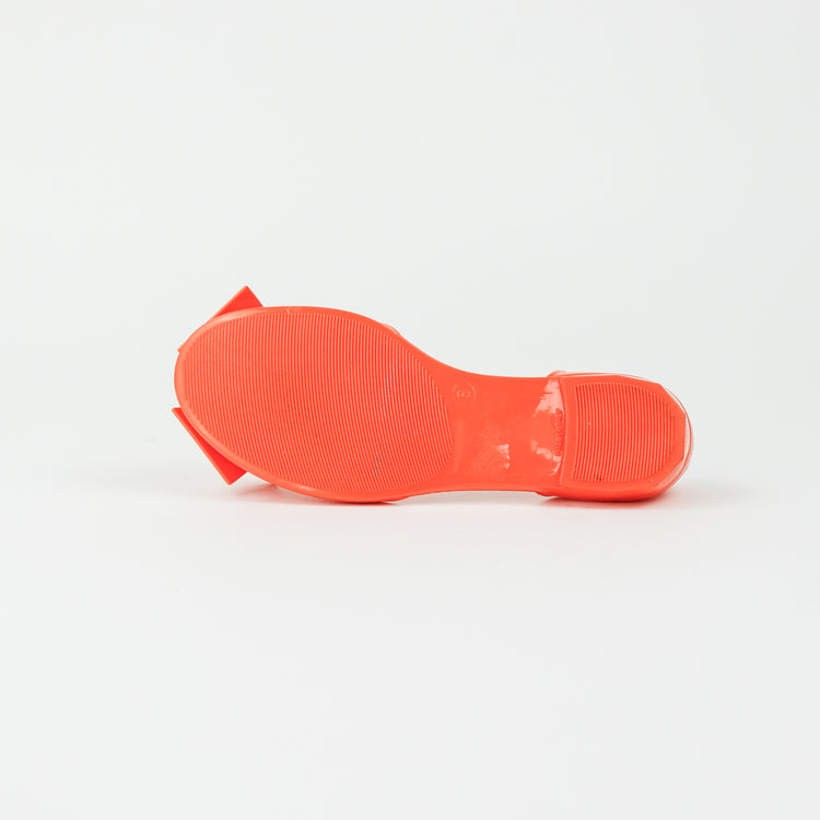 Sandalias Salvatore Ferragamo, elaboradas en material pvc color naranja, style slip on, con puntera abierta finamente decorada con un moño rematado con la marca en pieza metálica.
