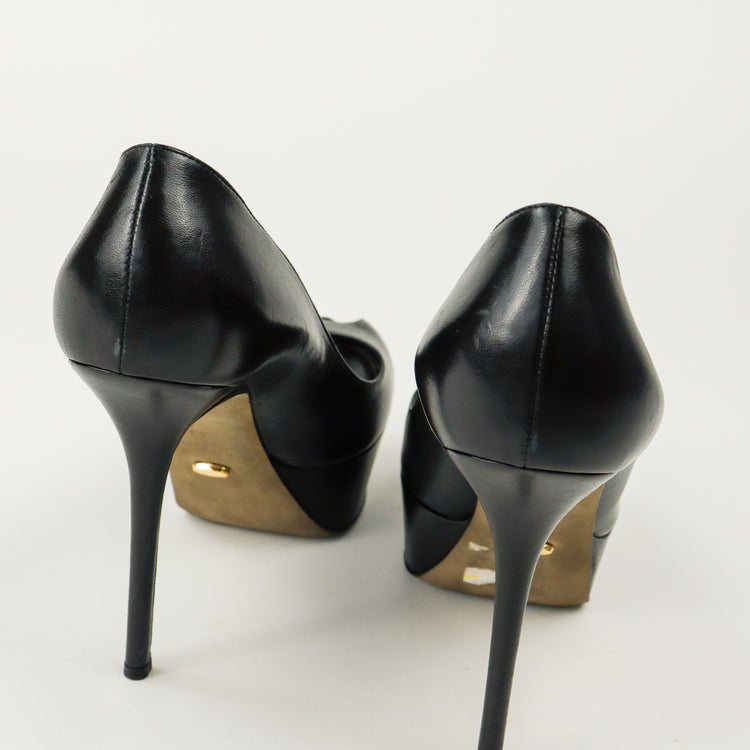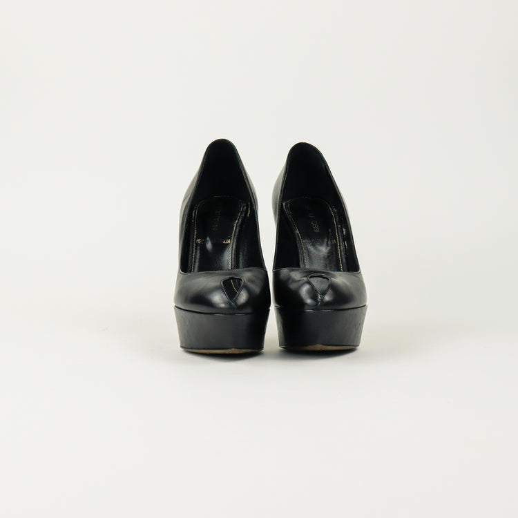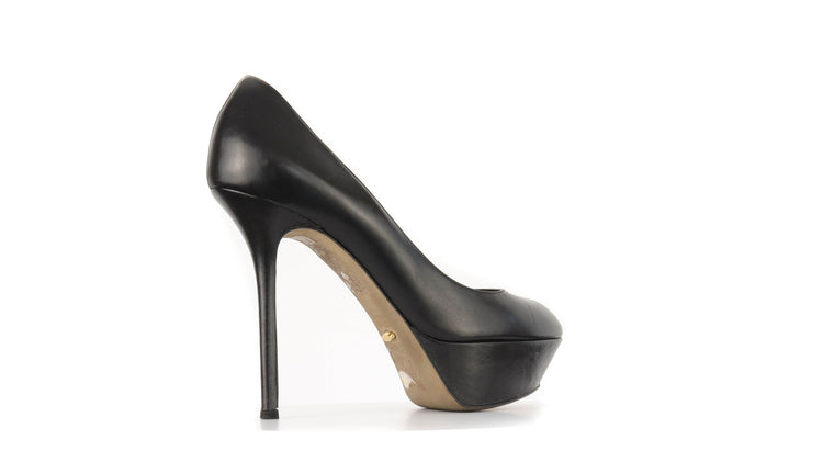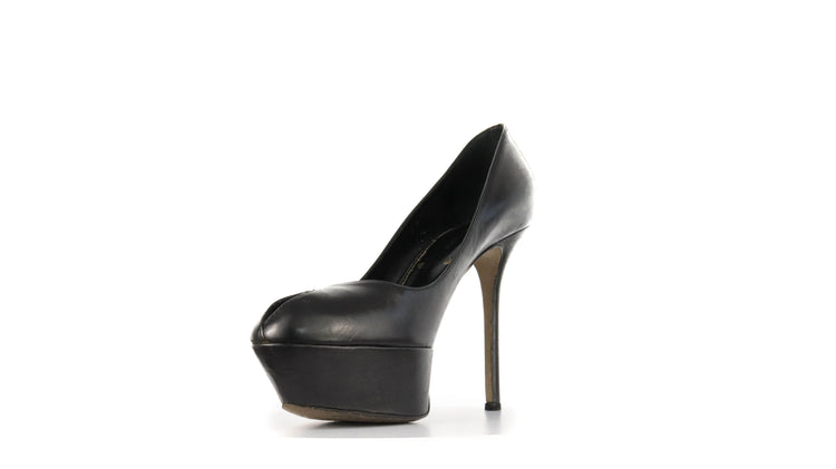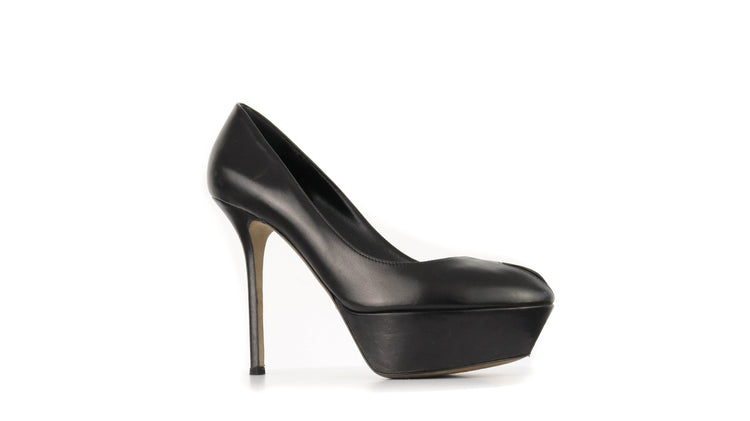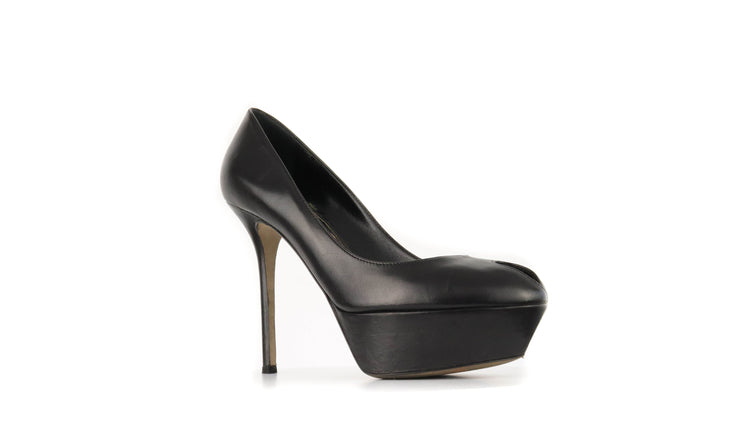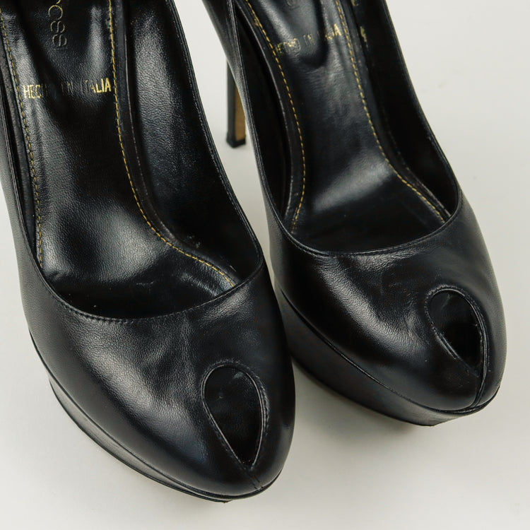Tacones Sergio Rossi, elaborados en cuero color negro, con puntera abierta redonda.