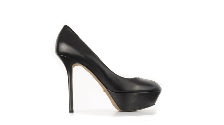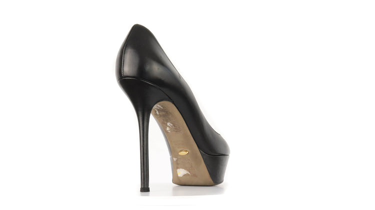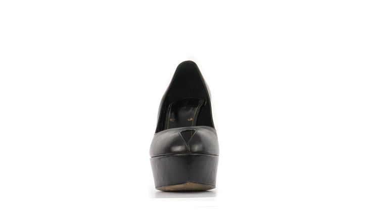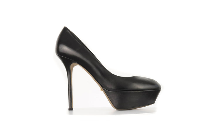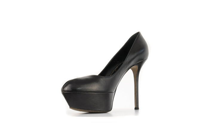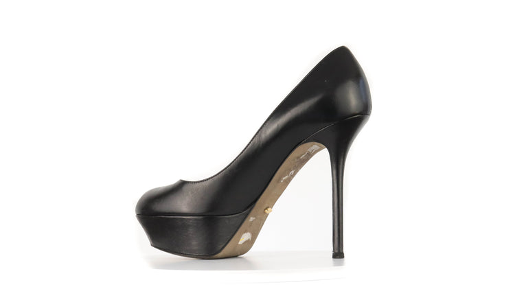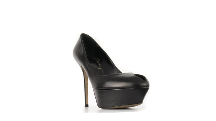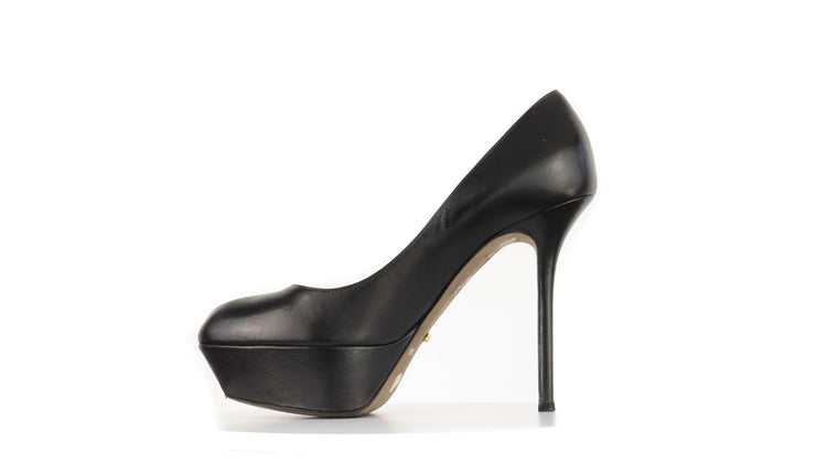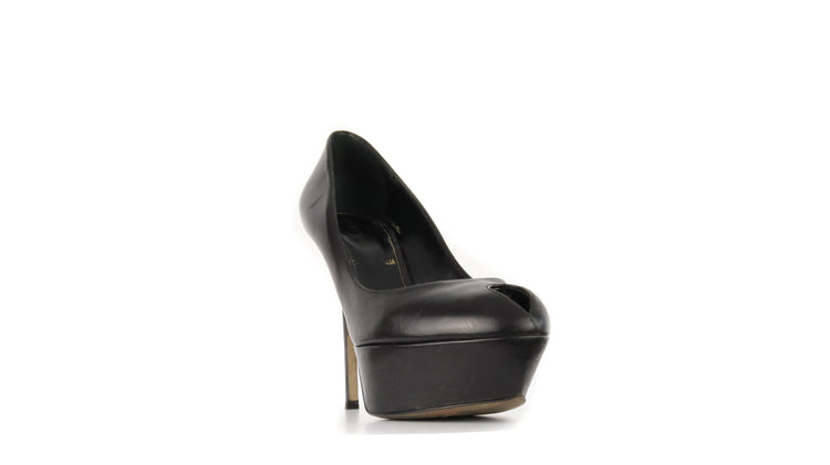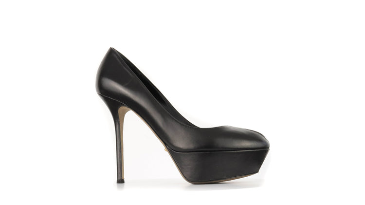 Tacones Sergio Rossi, elaborados en cuero color negro, con puntera abierta redonda.