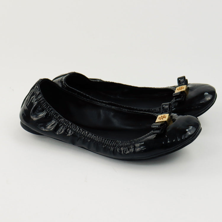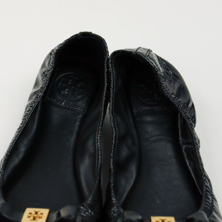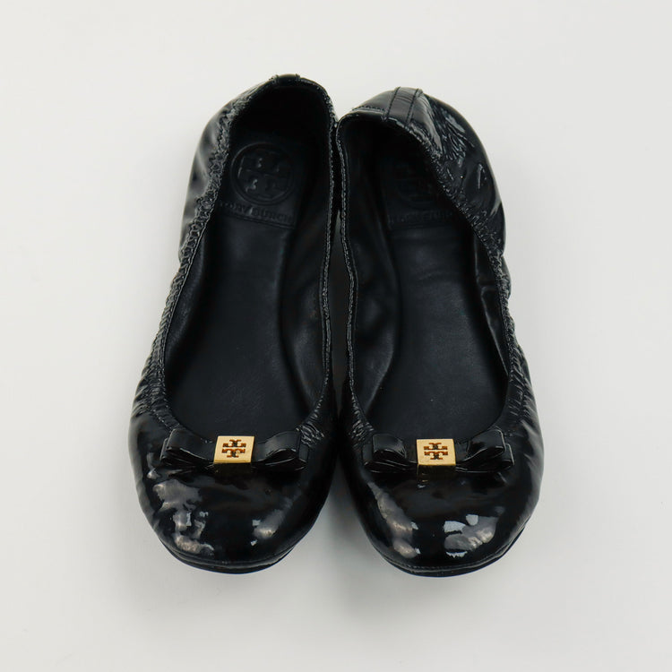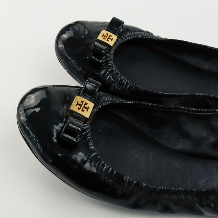 Charol Ballet Tory Burch Flats, adorno en punta con herraje dorado, ligeros raspones en el charol de las puntas. ARTÍCULO DE SEGUNDA MANO EN BUEN ESTADO. No cuentan con cubre polvo.