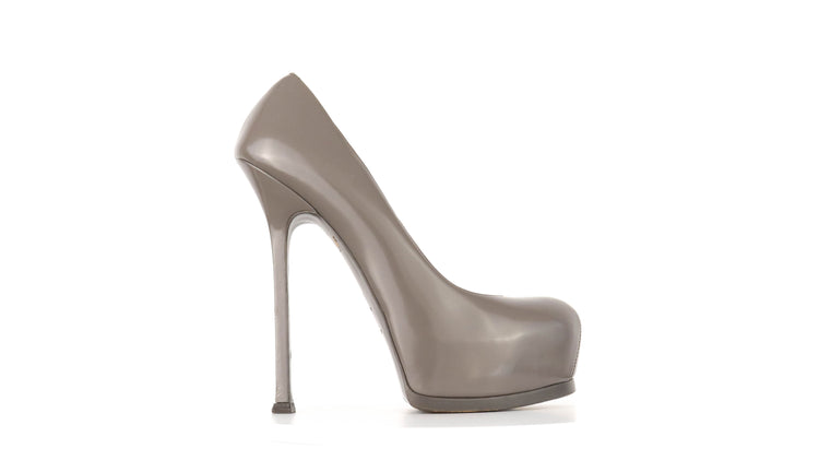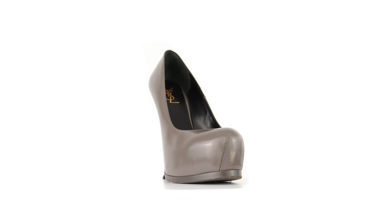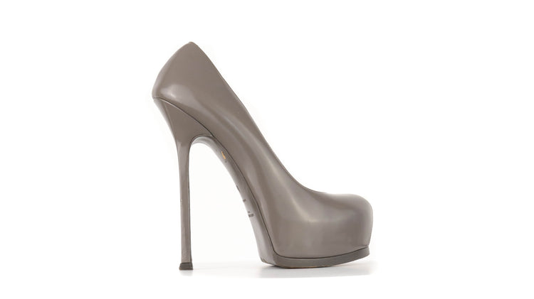 Tacones Yves Saint Laurent Tribute, elaborados en cuero color gris mate, con estilo slip-on, cuenta con tacón alto.