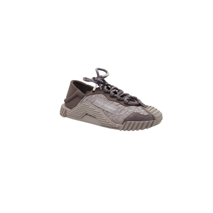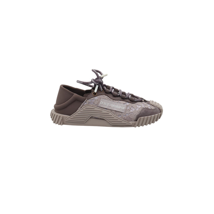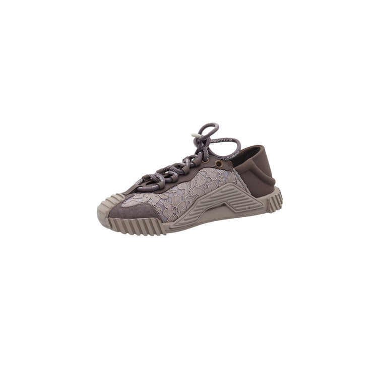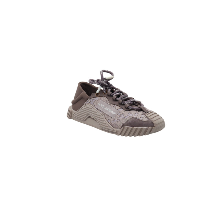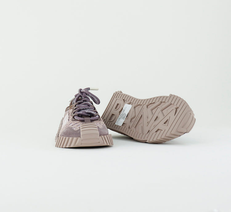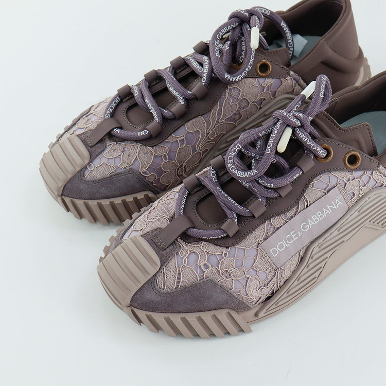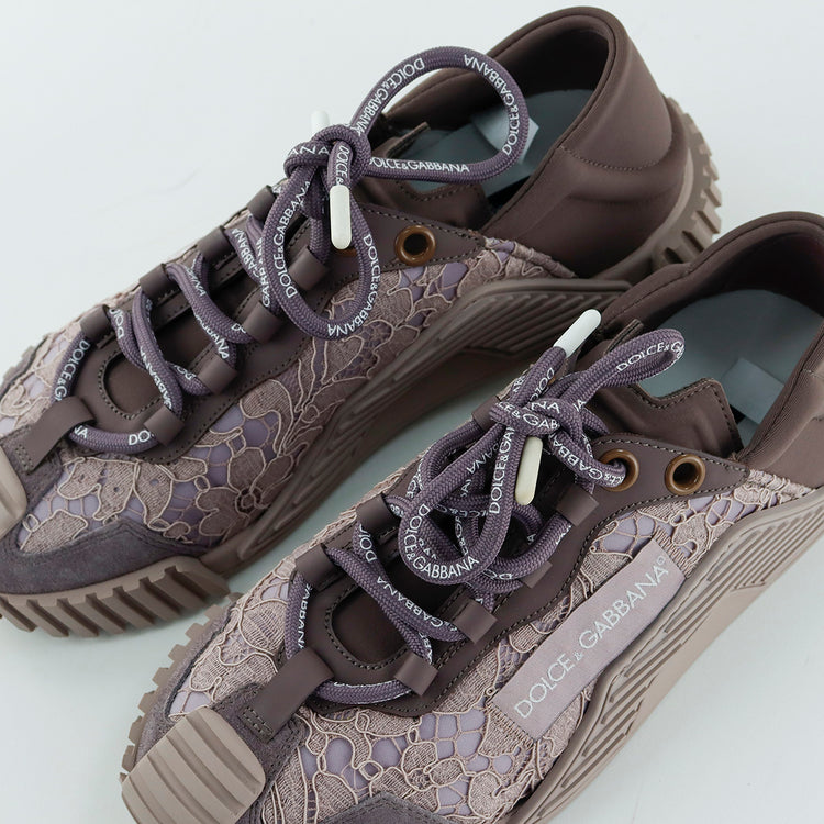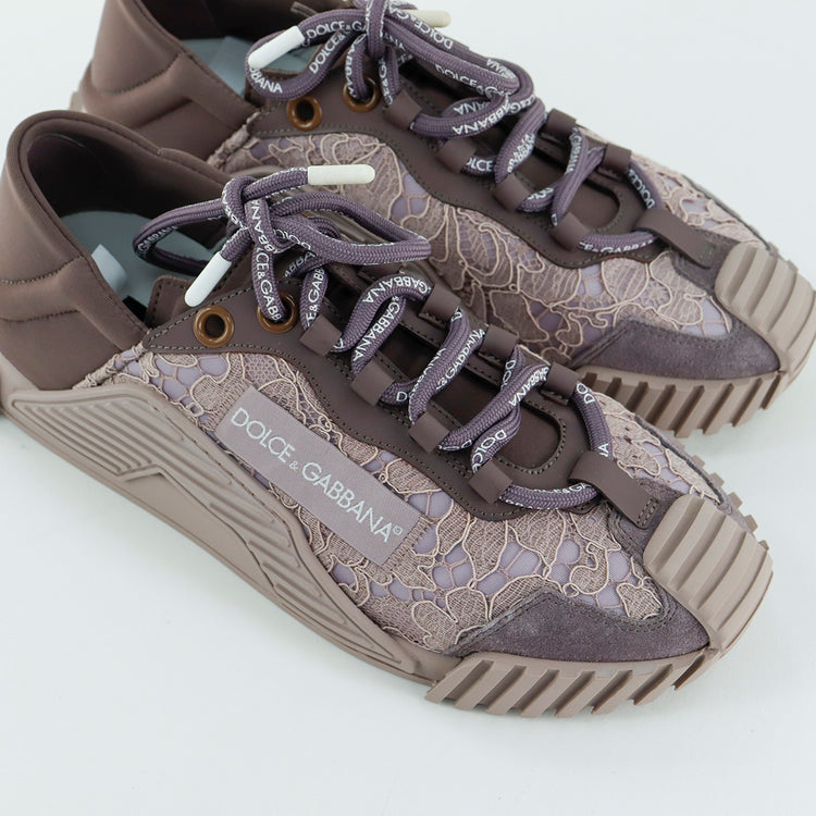 Sneakers Dolce & Gabbana Bassa NS1, confeccionados en textil elástico con encaje color morado y detalles en gamuza, suela de goma antiderrapante.