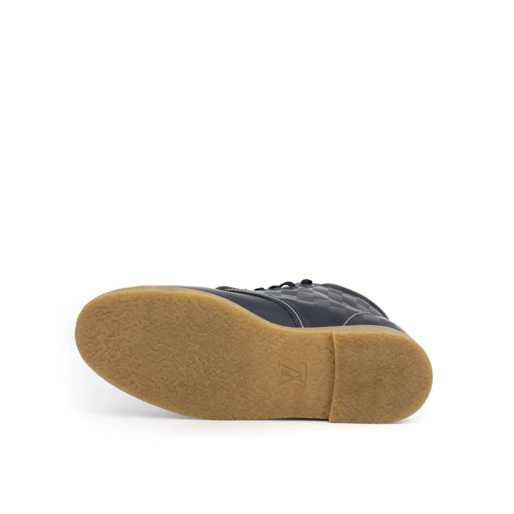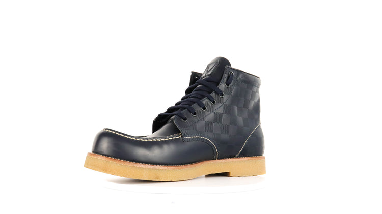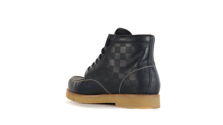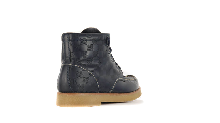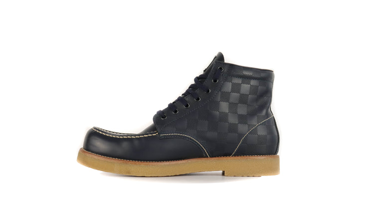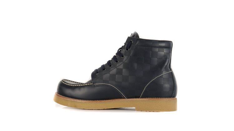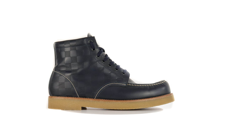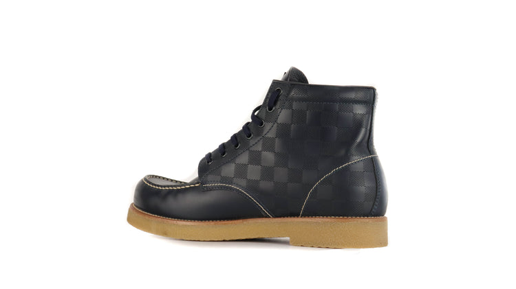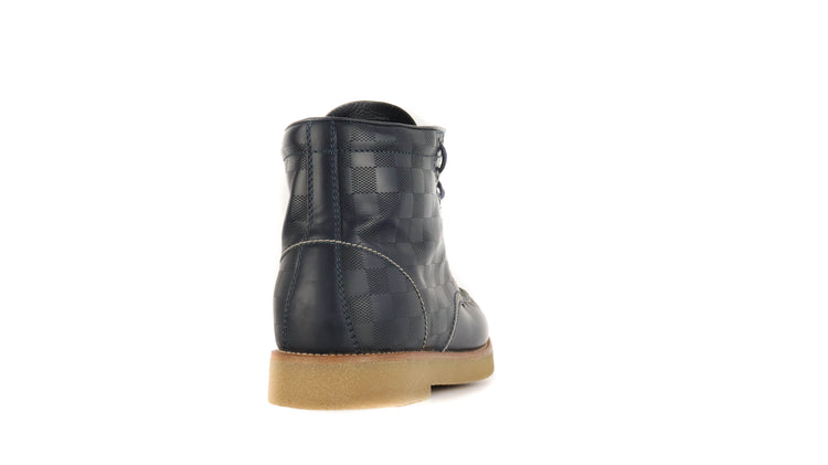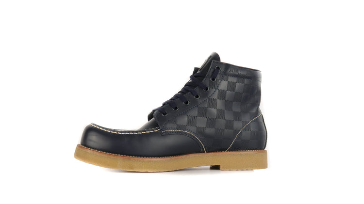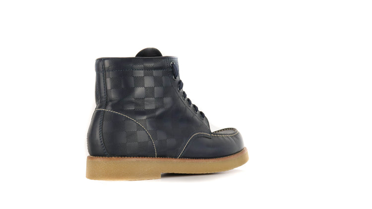 Botas para caballero de la marca Louis Vuitton Modelo Sailor, elaboradas en cuero vacuno Damier color azul marino con cordones y suela con poco uso.