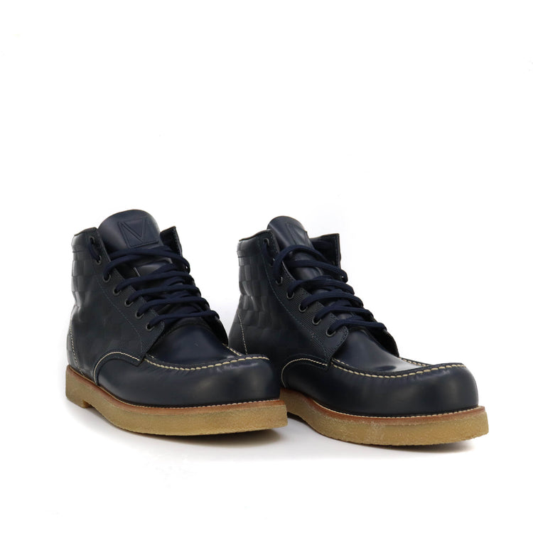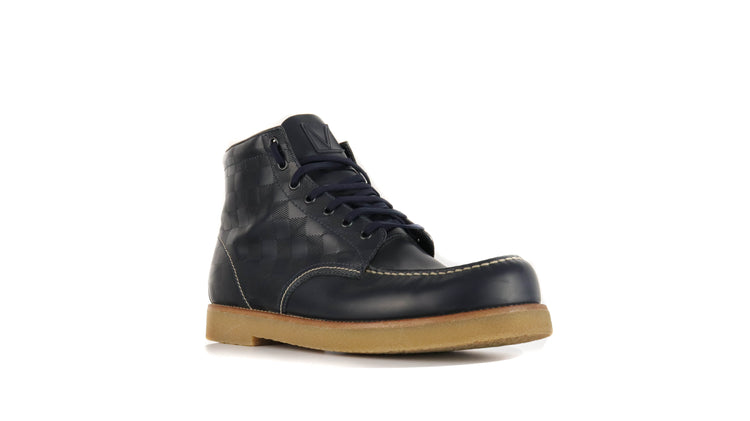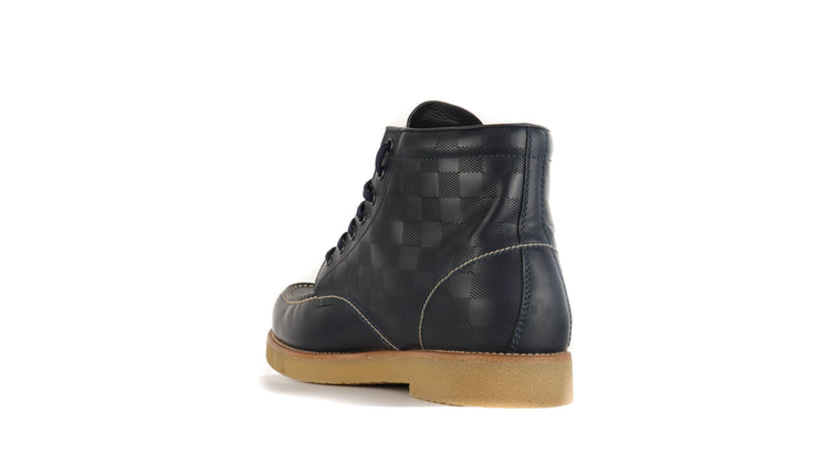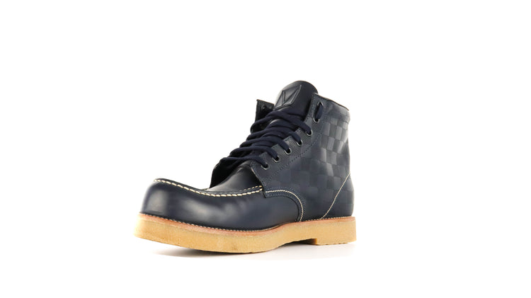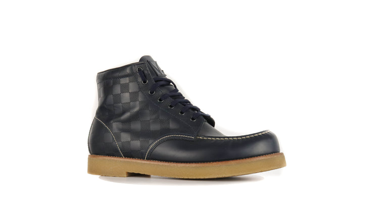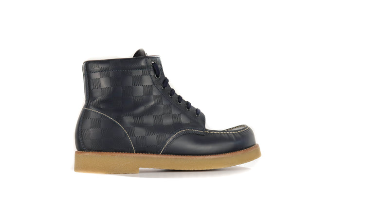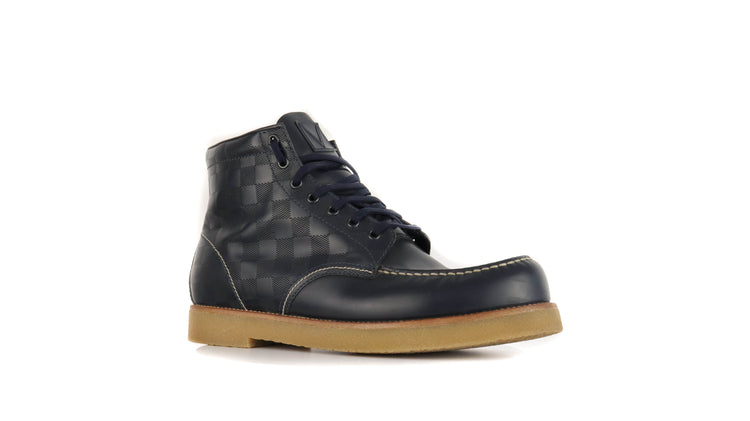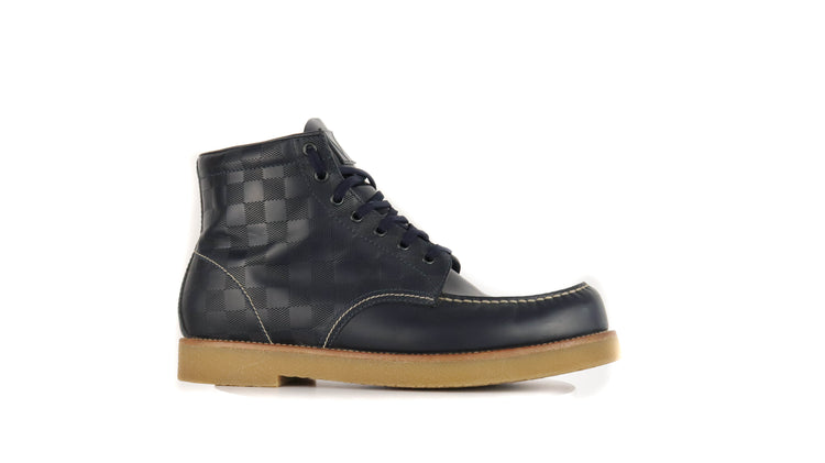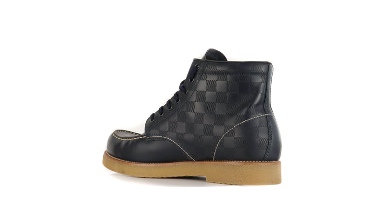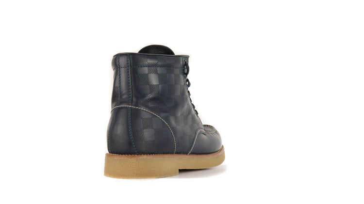 Botas para caballero de la marca Louis Vuitton Modelo Sailor, elaboradas en cuero vacuno Damier color azul marino con cordones y suela con poco uso.