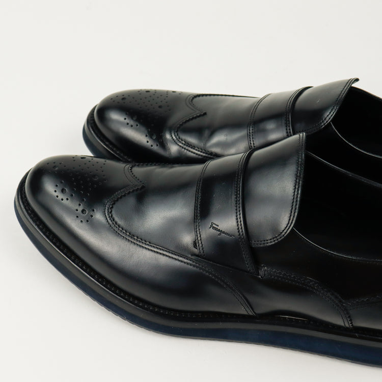 Elegantes mocasines Salvatore Ferragamo elaborados en piel de becerro, suela sintética, un solo uso.