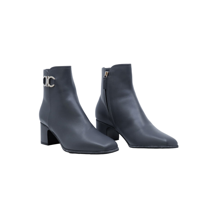Botines marca Salvatore Ferragamo, confeccionados en piel color gris,