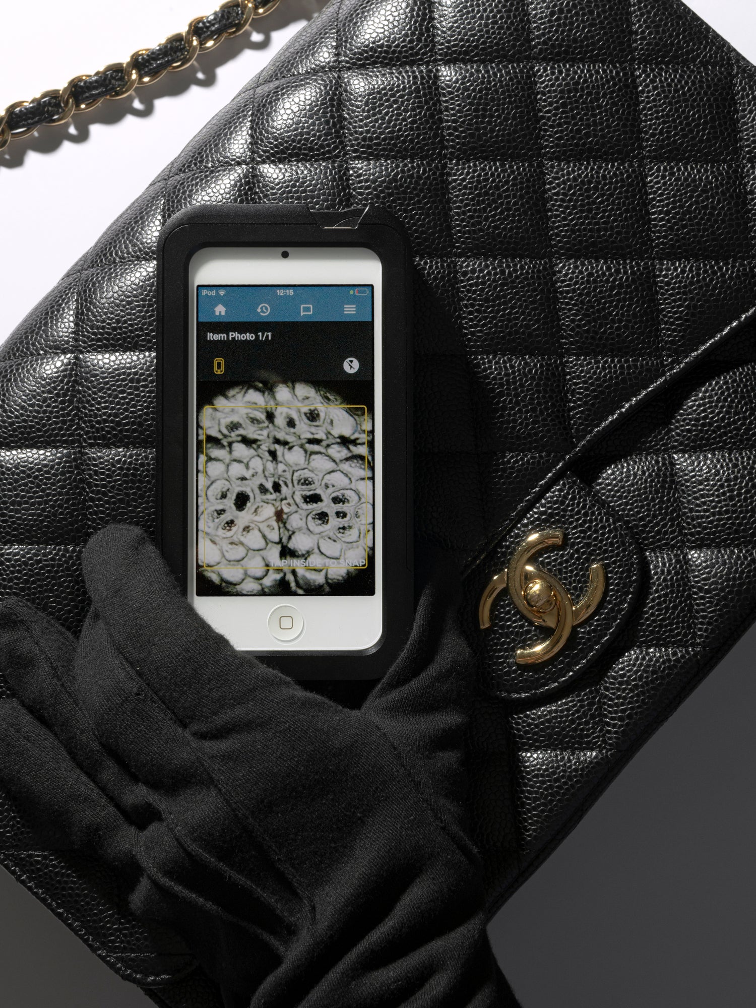 En nuestro Show Room verificamos los bolsos con Entrupy, con su lente microscópico y algoritmos