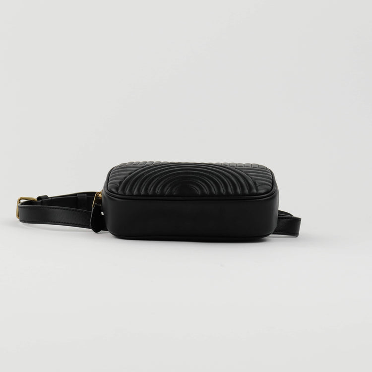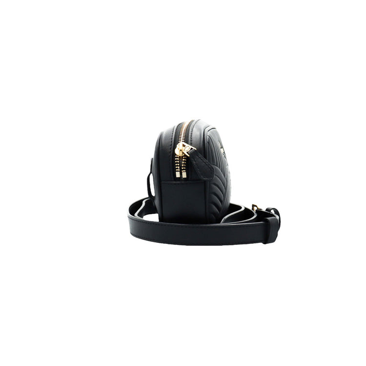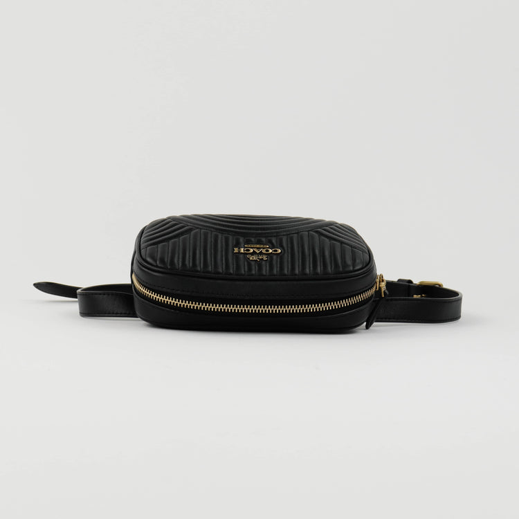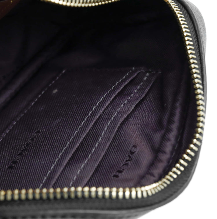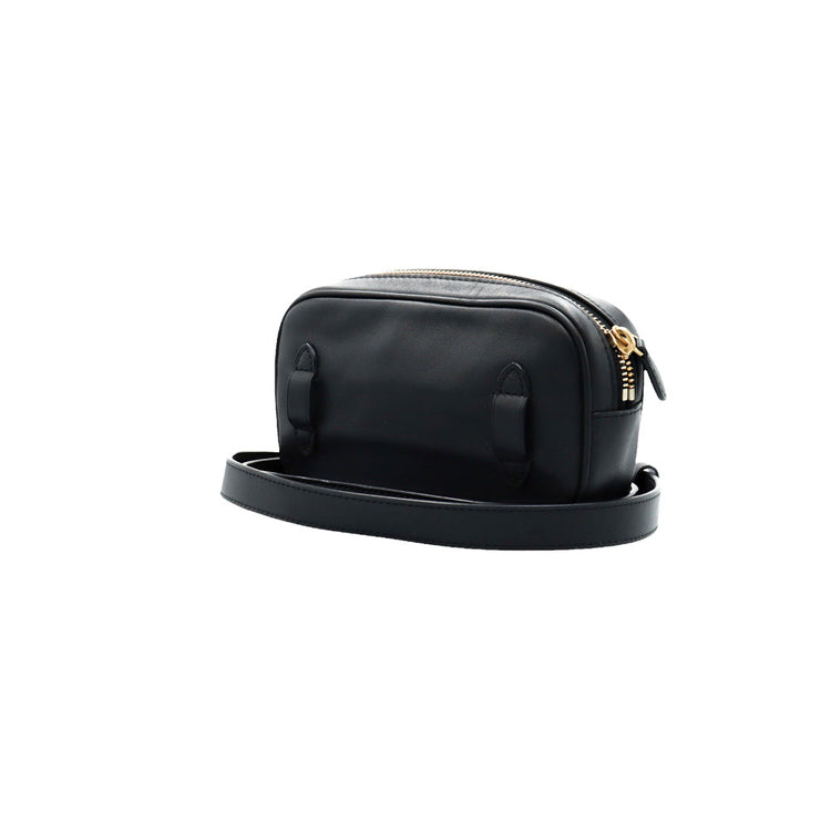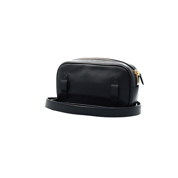 Belt Bag mini confeccionado en piel color negro, logo de la marca al frente y herrajes en color dorado. ARTÍCULO DE SEGUDA MANO EN EXCELENTE ESTADO. No cuenta con cubre polvo.