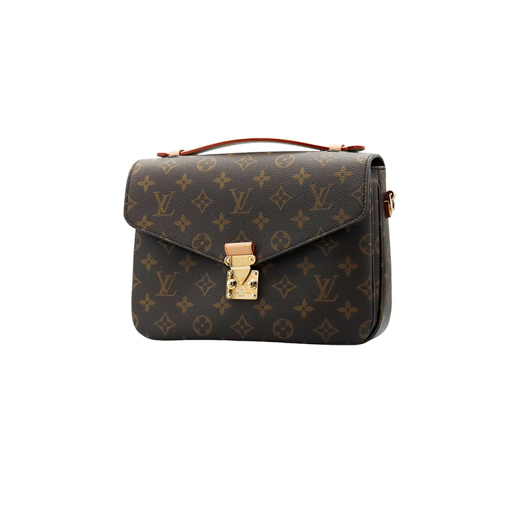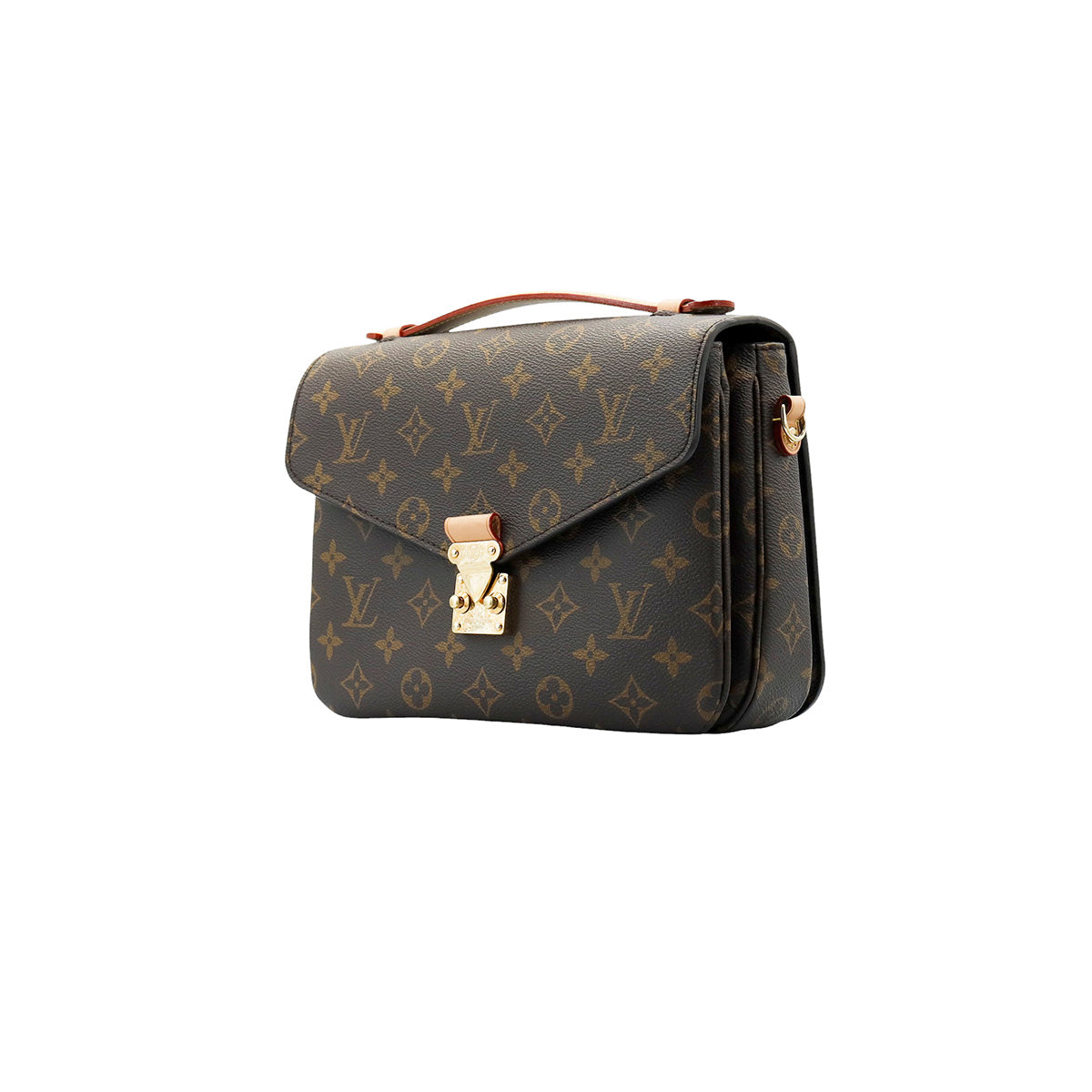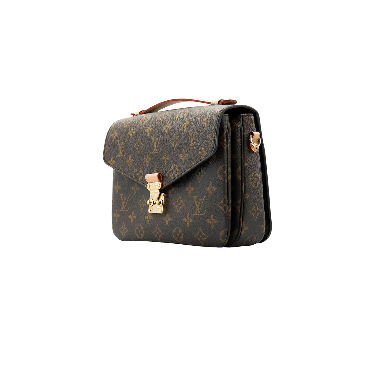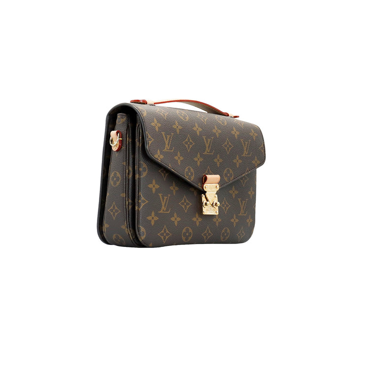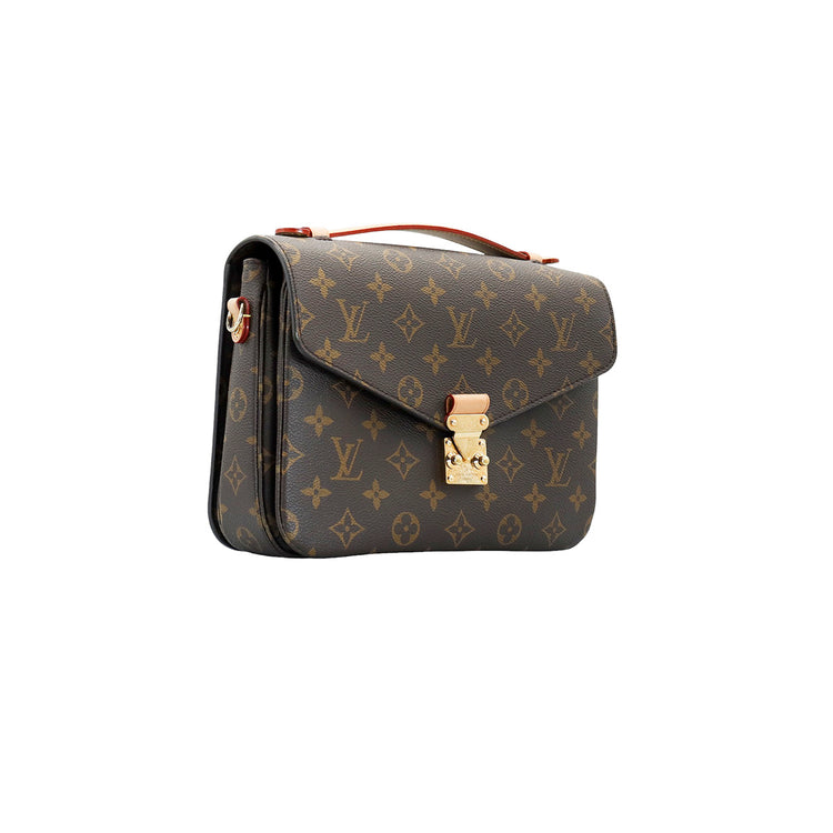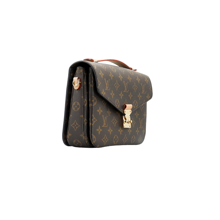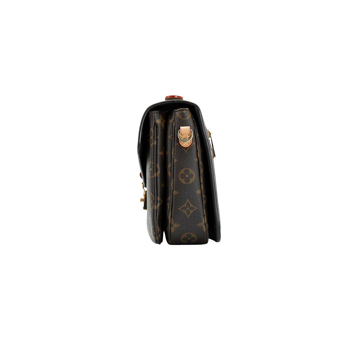 Bolso Louis Vuitton Pochette Metis, confeccionado en lona monogram, con strap desmontable, forro interno en alcántara color café, herrajes en color dorado. Poco sucia por dentro, herrajes con leves rayones poco visibles.
