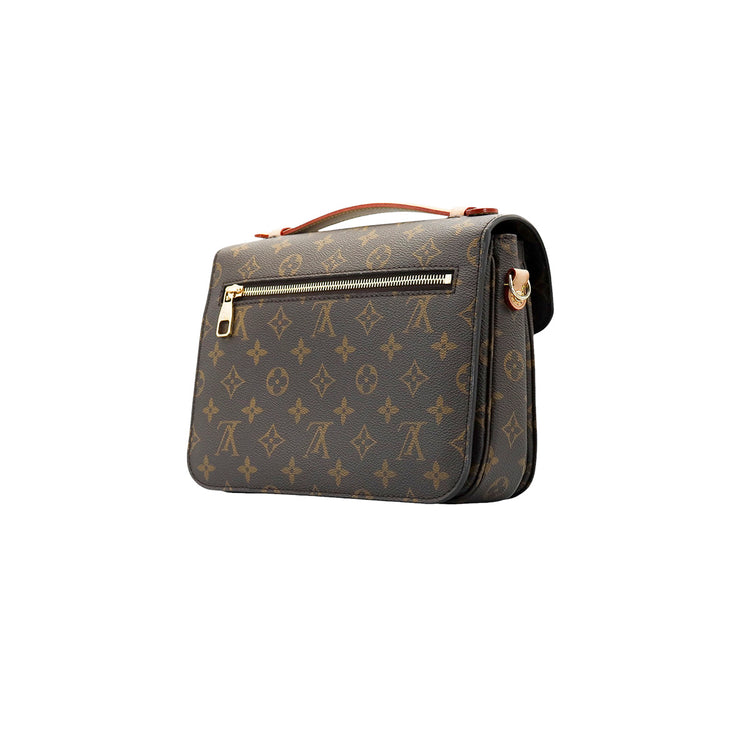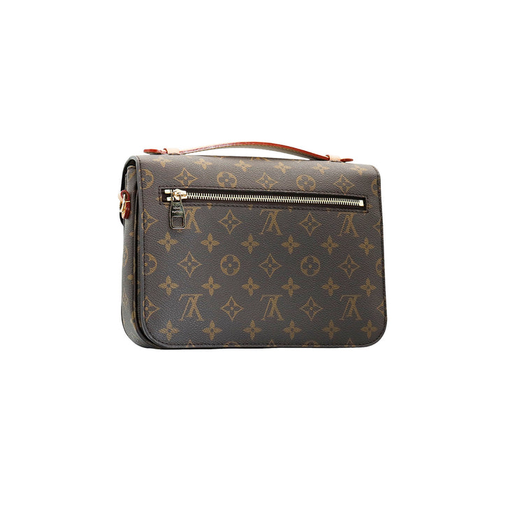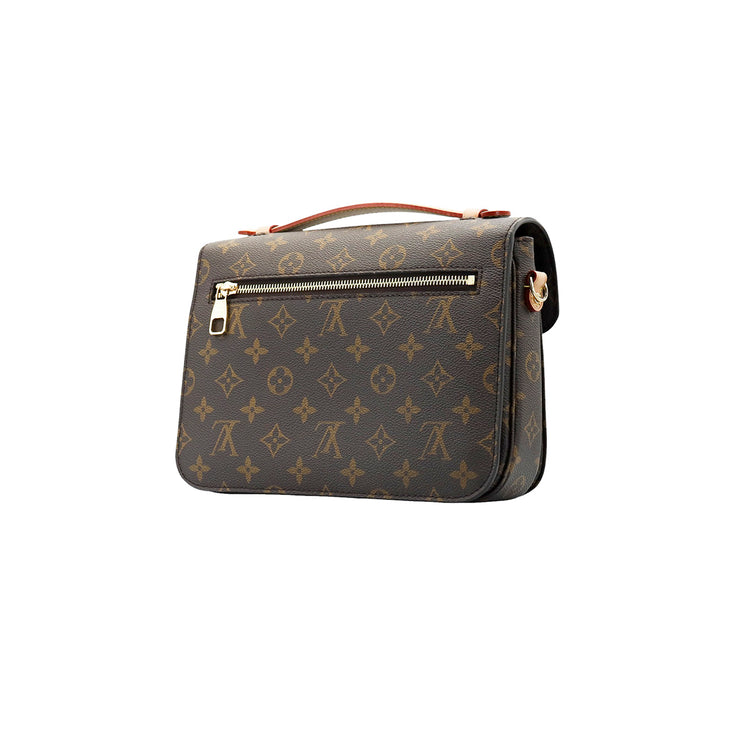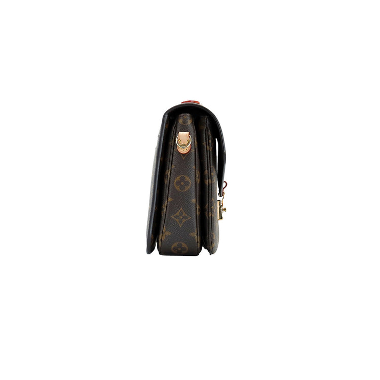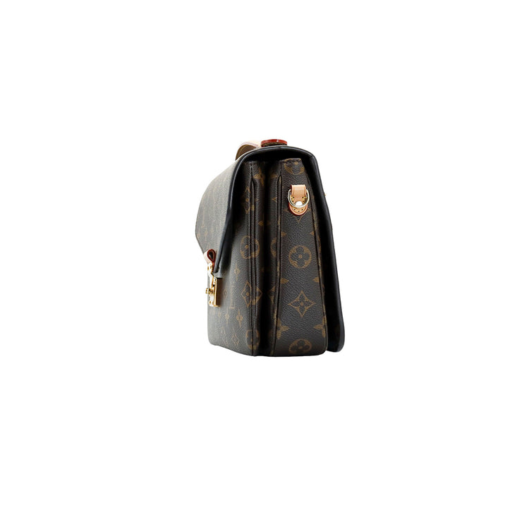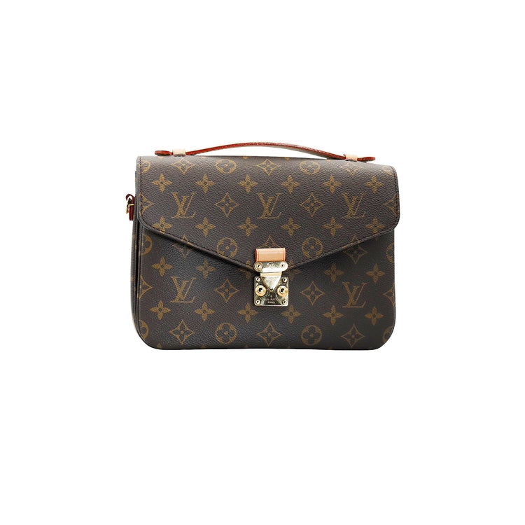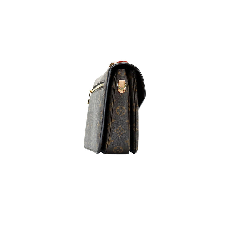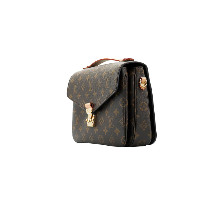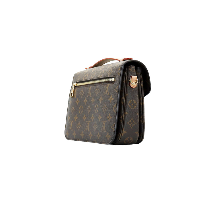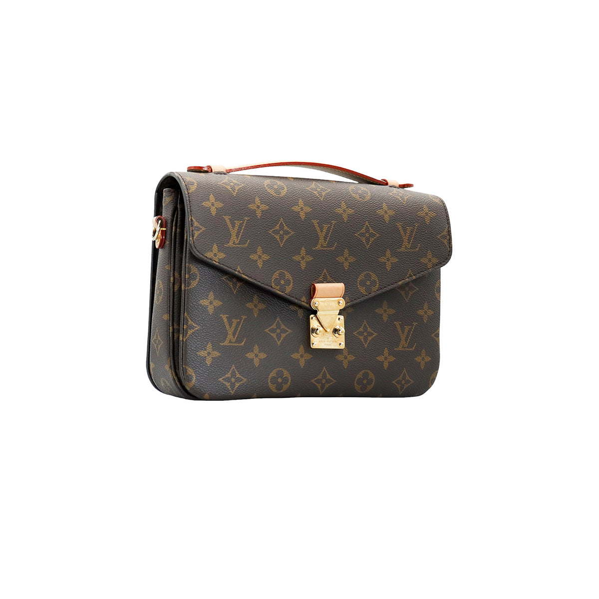 Bolso Louis Vuitton Pochette Metis, confeccionado en lona monogram, con strap desmontable, forro interno en alcántara color café, herrajes en color dorado. Poco sucia por dentro, herrajes con leves rayones poco visibles.