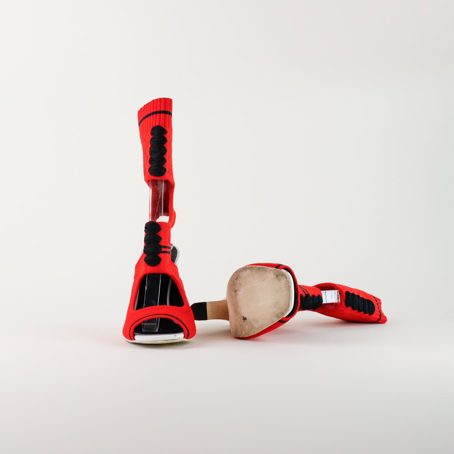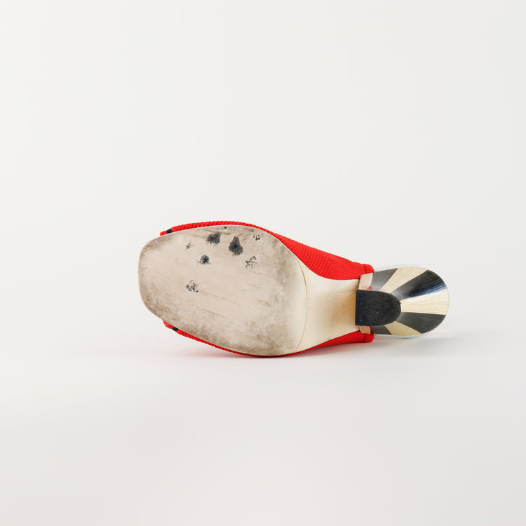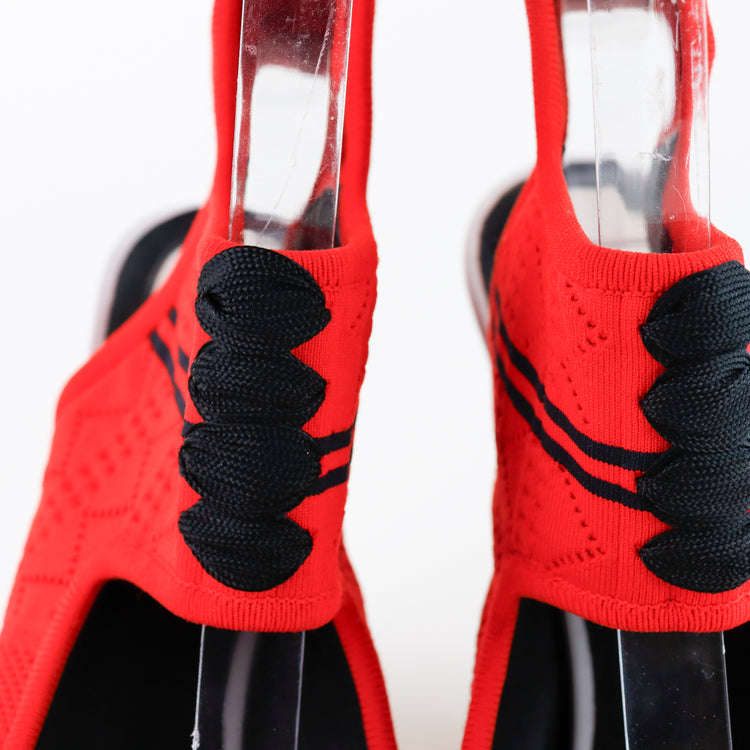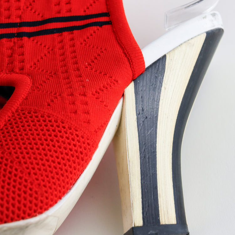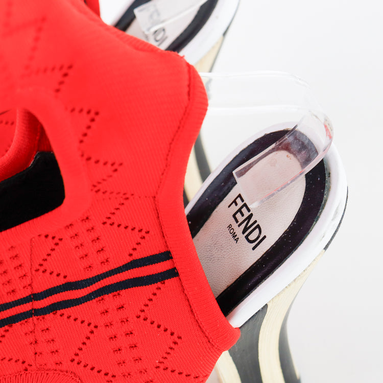 Sandalias tipo botín Fendi en textil elástico color rojo con detalles en negro, diseño de tacón.