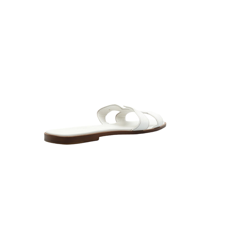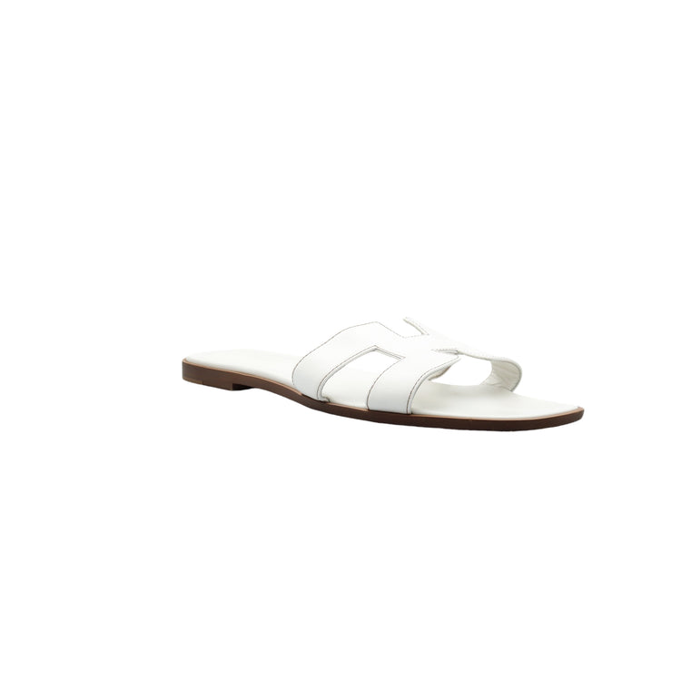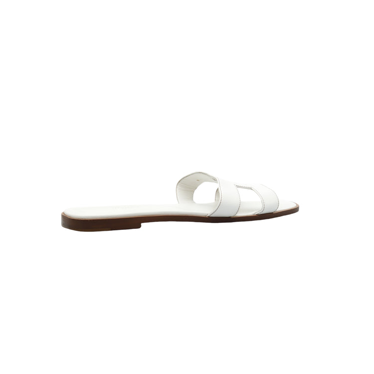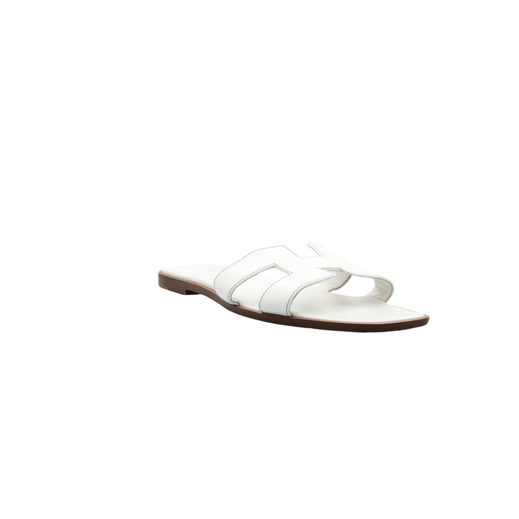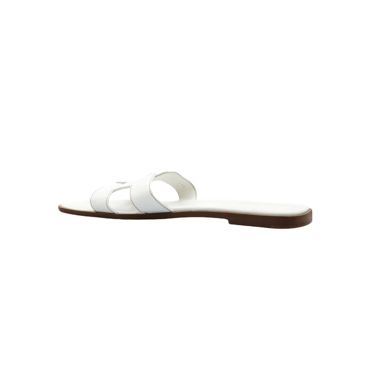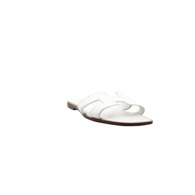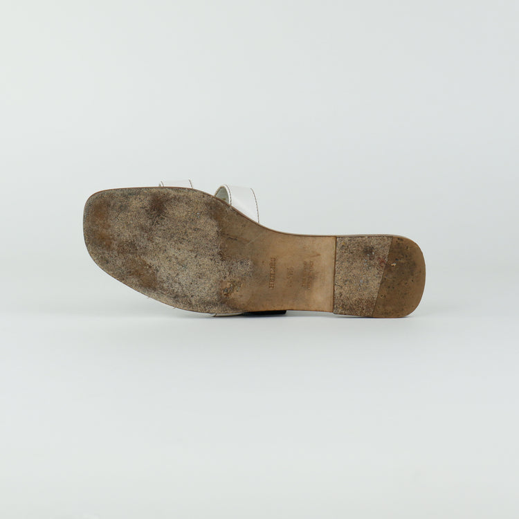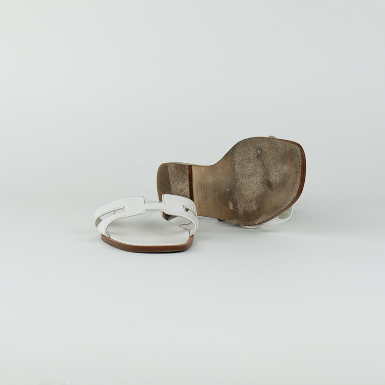 Sandalias marca Hermès, confeccionadas en piel color blanco, con la distintiva "H" de la marca sobre el empeine, con señales de poco uso en empeine y suela.