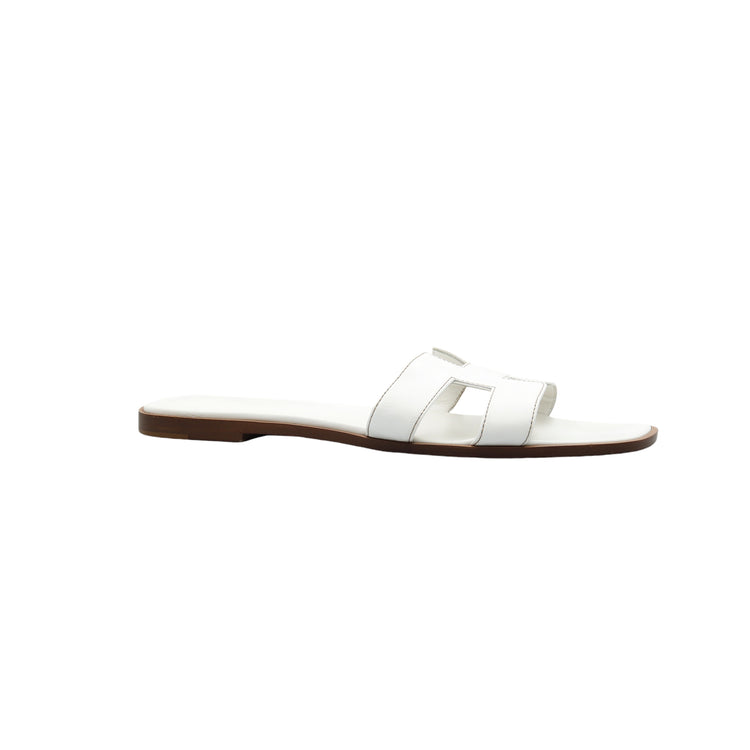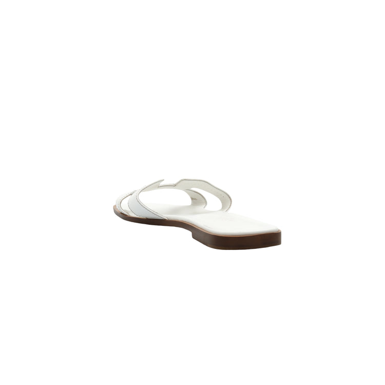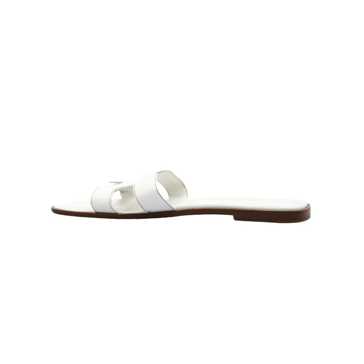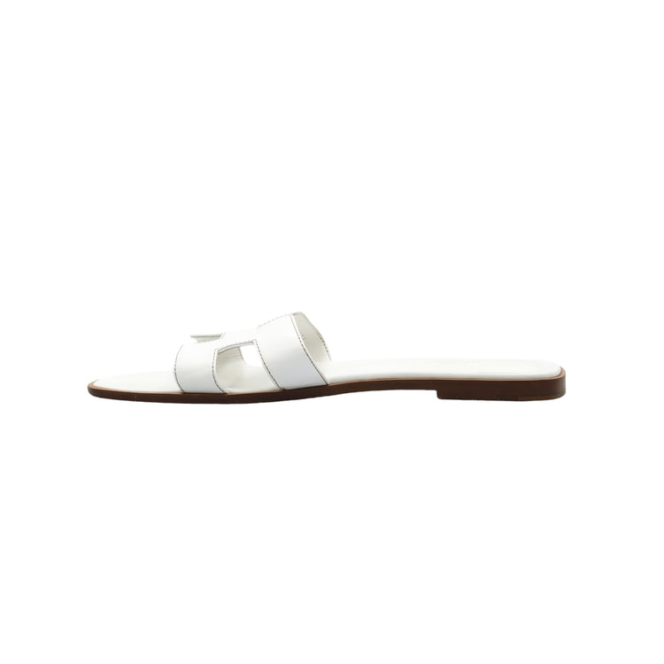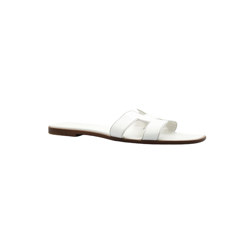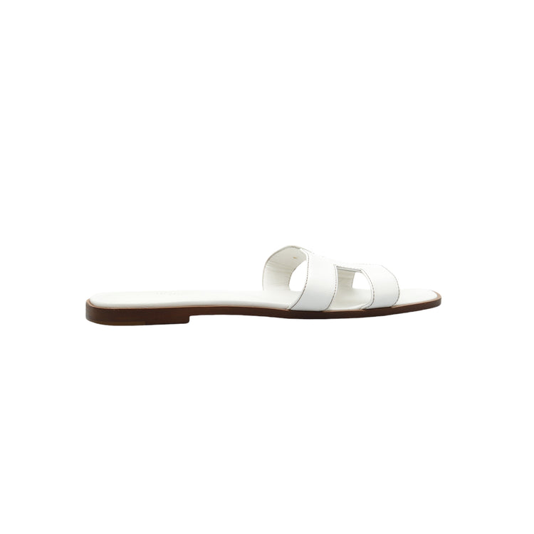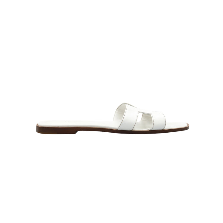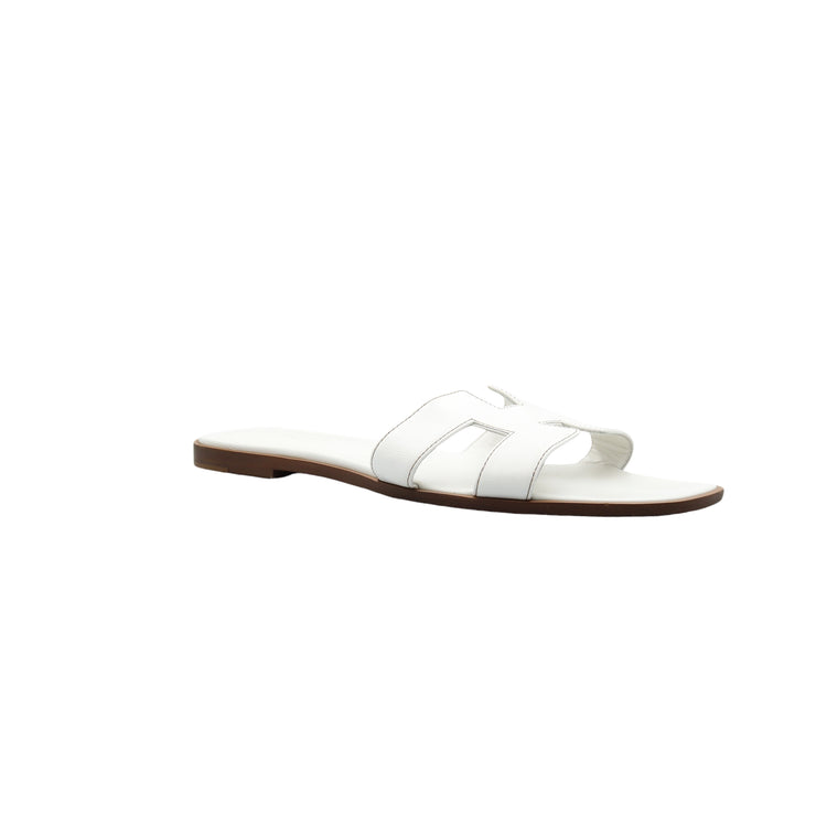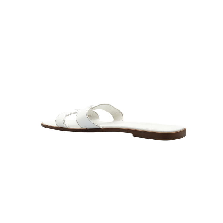 Sandalias marca Hermès, confeccionadas en piel color blanco, con la distintiva "H" de la marca sobre el empeine, con señales de poco uso en empeine y suela.