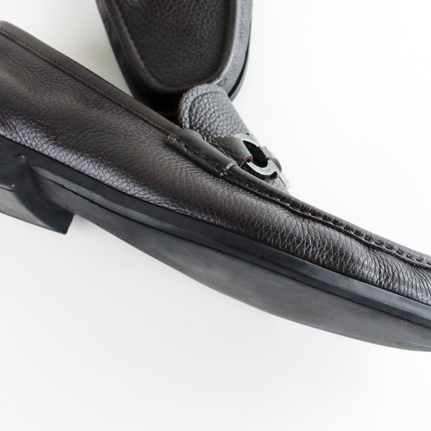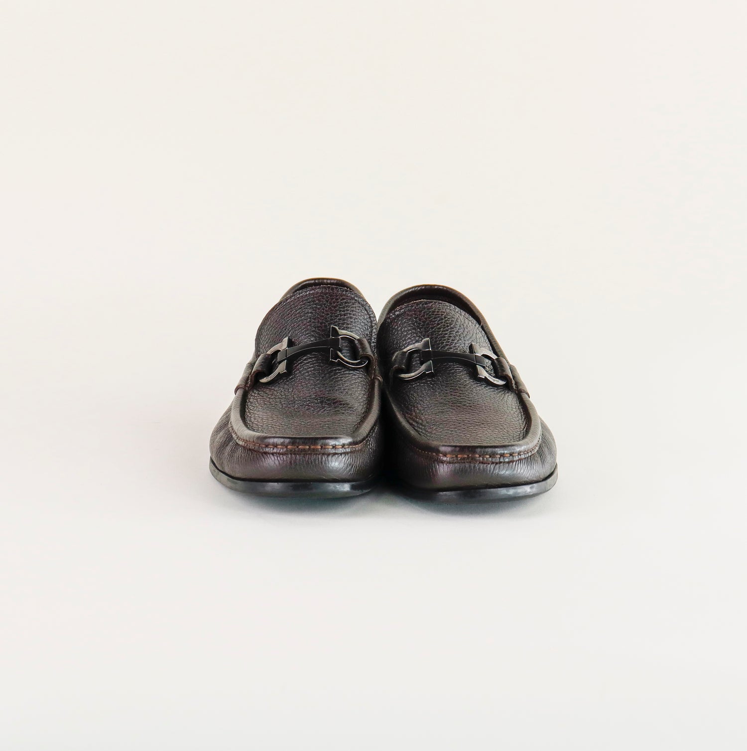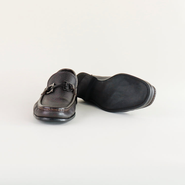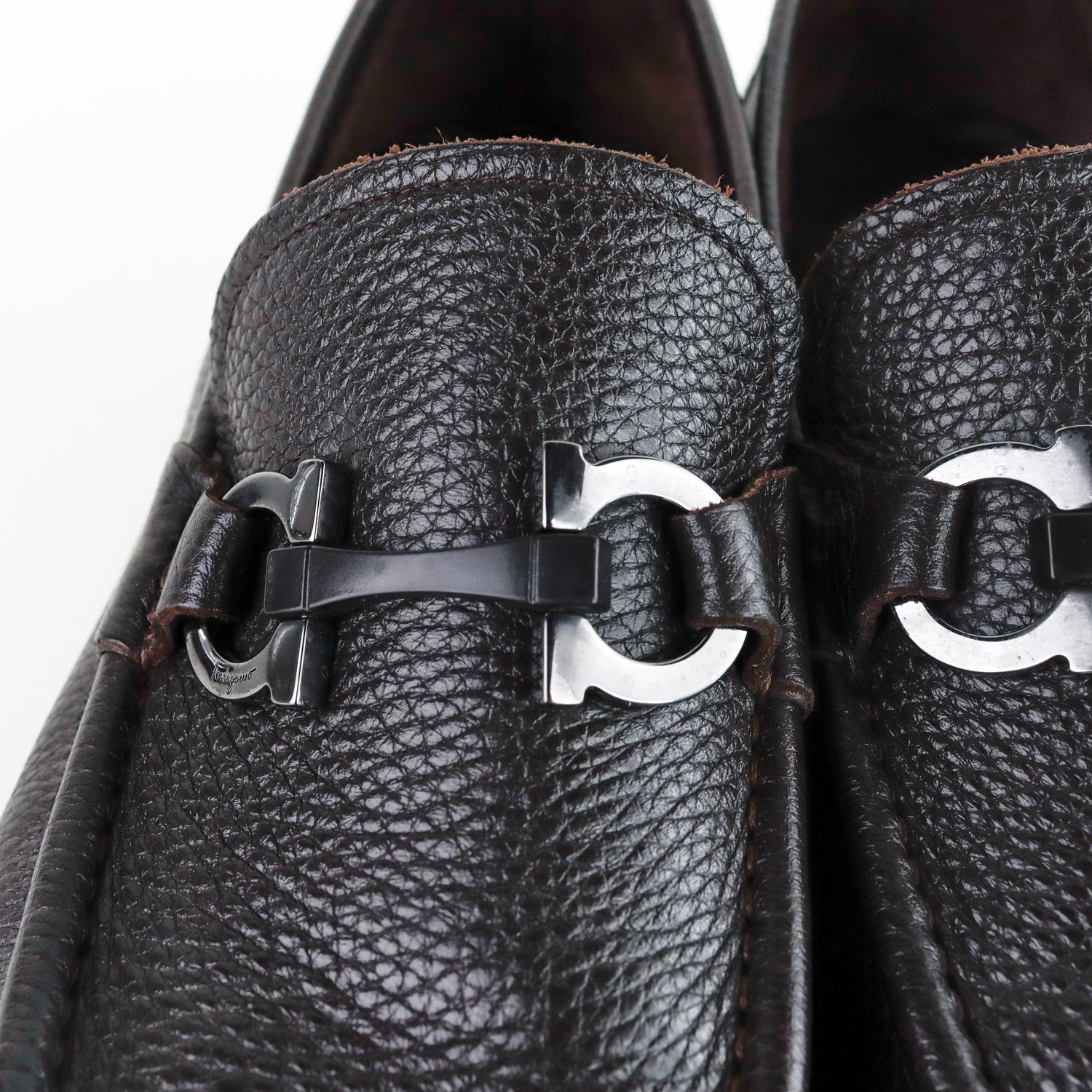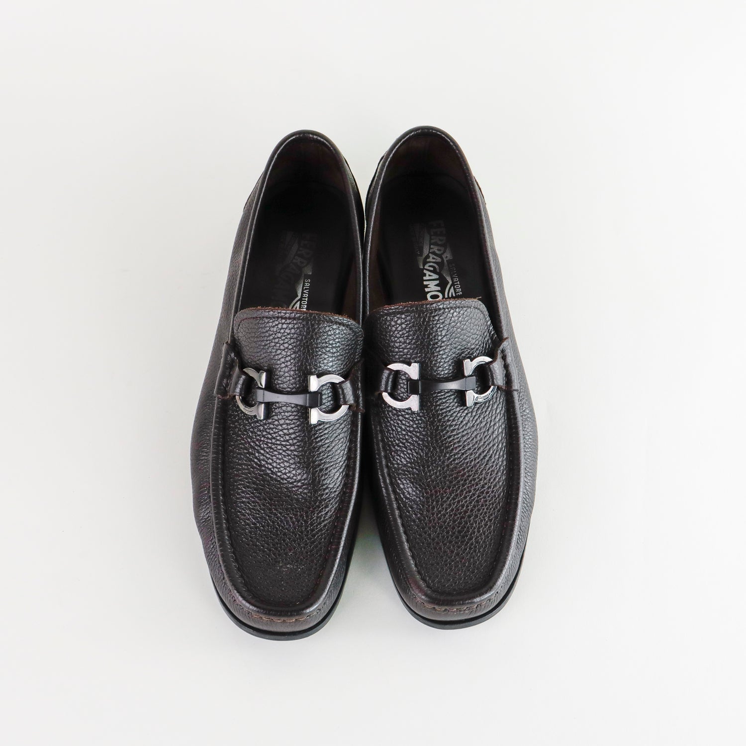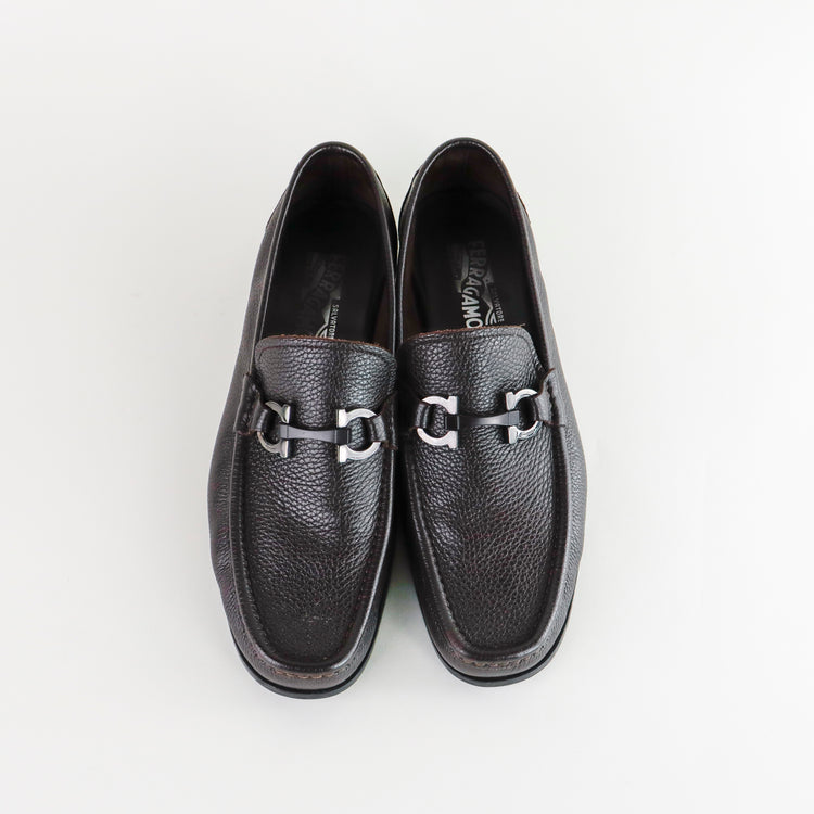 Mocasines Salvatore Ferragamo en piel granulada color café, con distintivo Gancini sobre el empeine, poco uso, cuentan con cubre polvo.