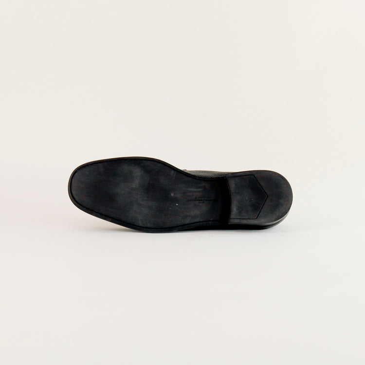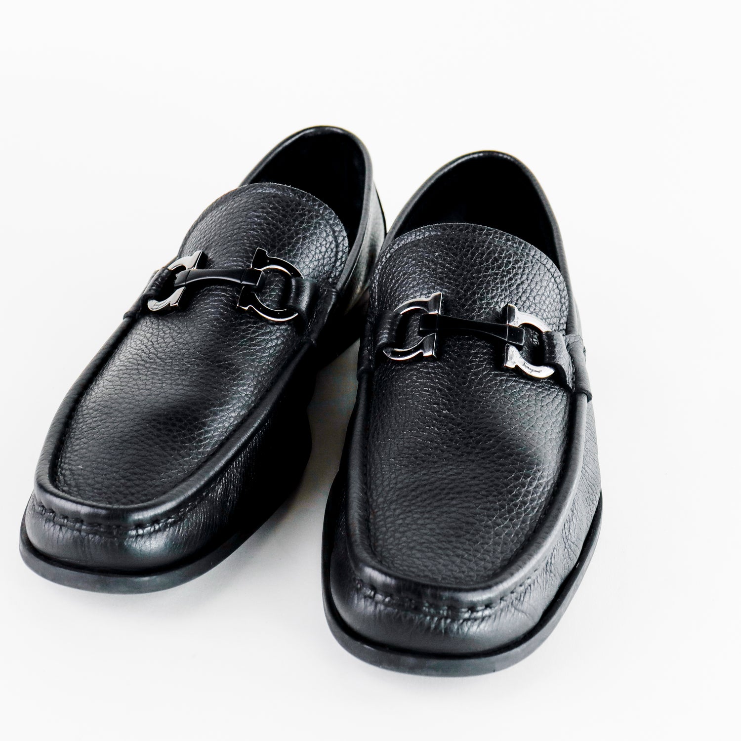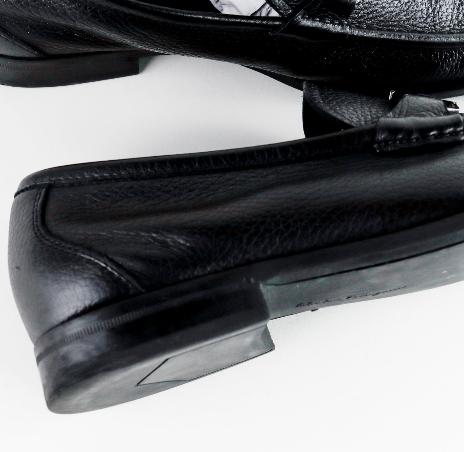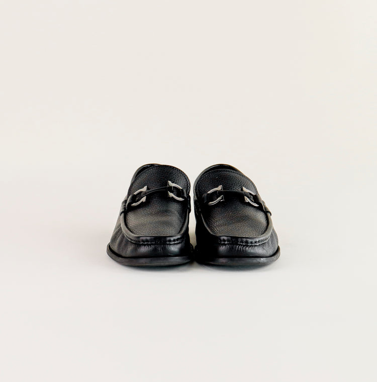 Mocasines Salvatore Ferragamo en piel granulada color negro, con distintivo Gancini sobre el empeine, poco uso, cuentan con cubre polvo.