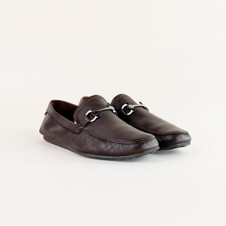Mocasines Salvatore Ferragamo en piel color café, con distintivo Gancini sobre el empeine, poco uso, cuentan con cubre polvo.